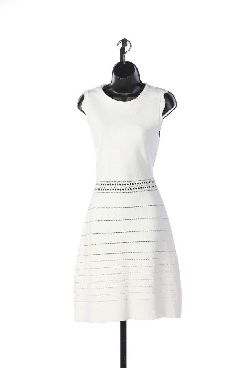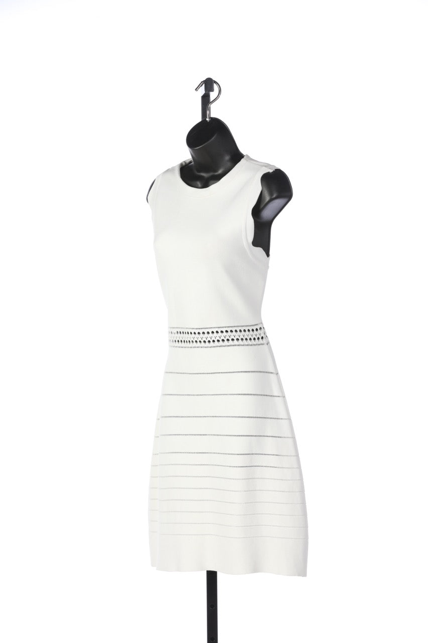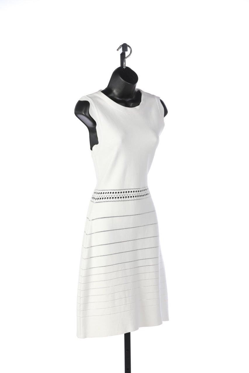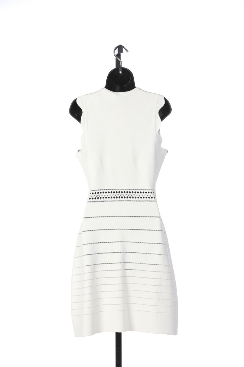 Chloé White Bodycon Dress with Scalloped Hem Sleeves, Mock Neck, and Cut Out Details