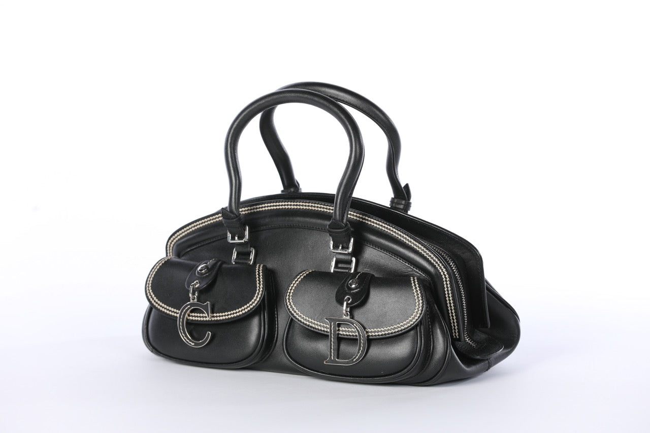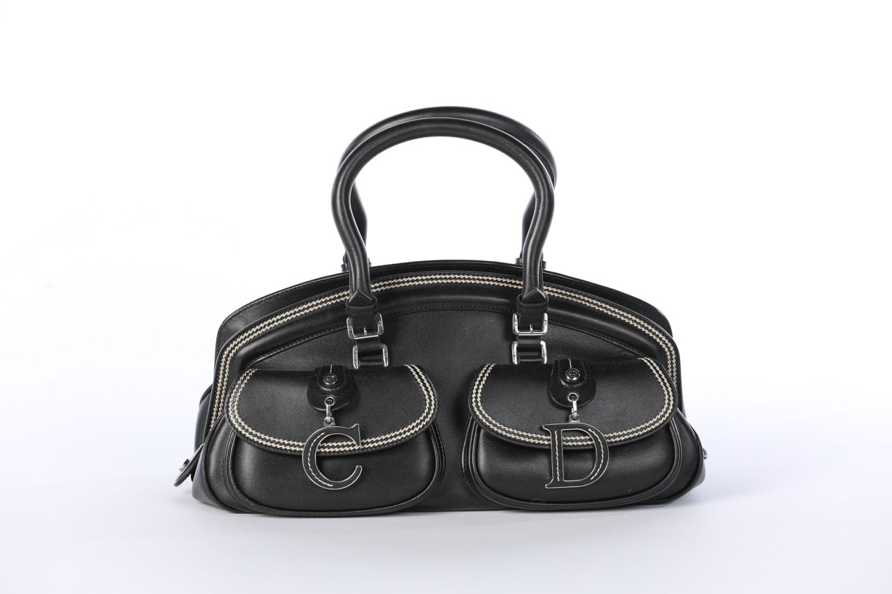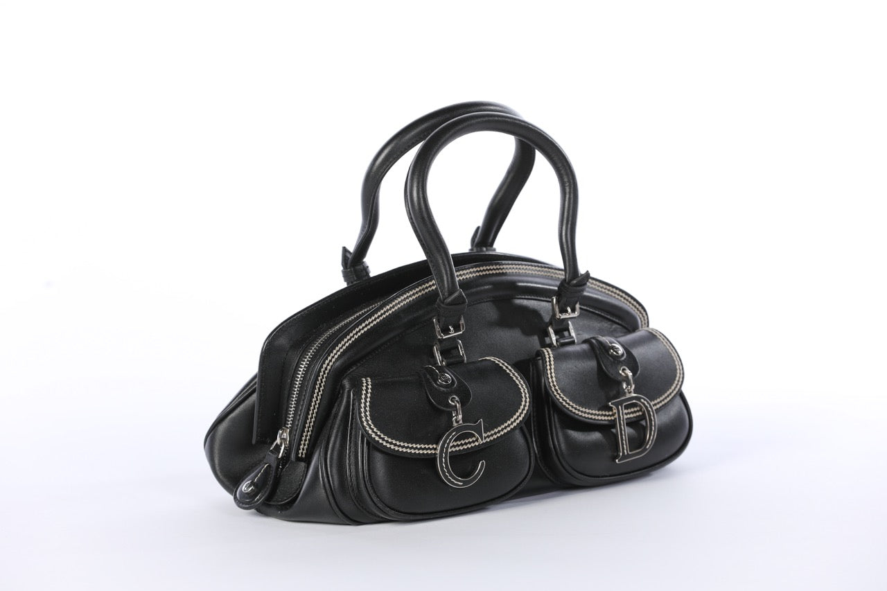 Christian Dior Black Detective Handbag w/ White Stitching