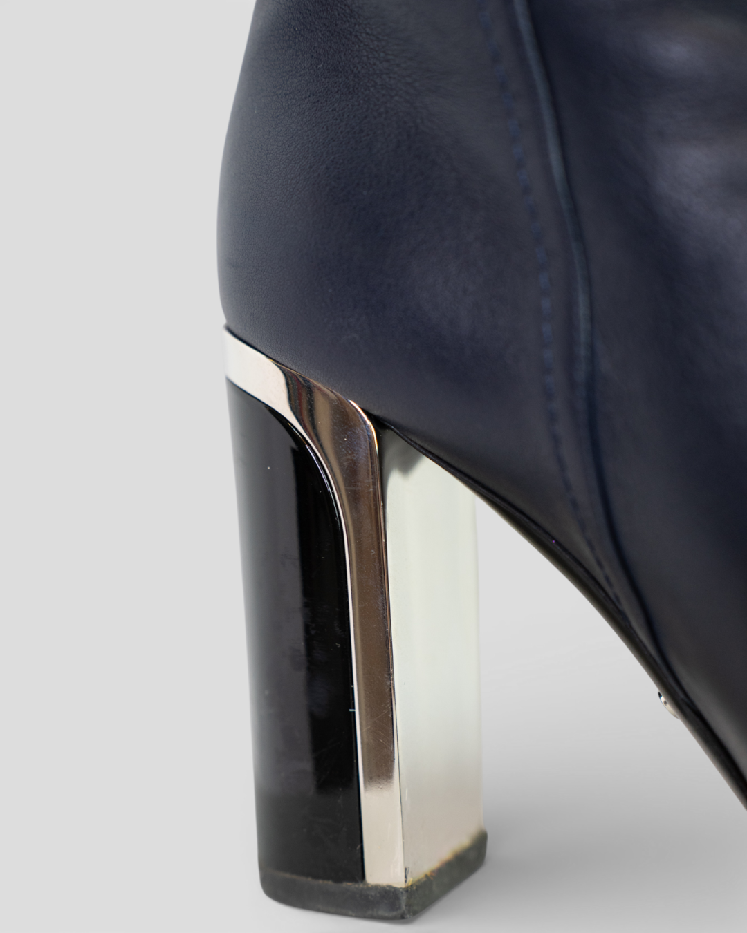 Christian Dior Navy Calfskin Almond Toe Silver Black Heel Booties