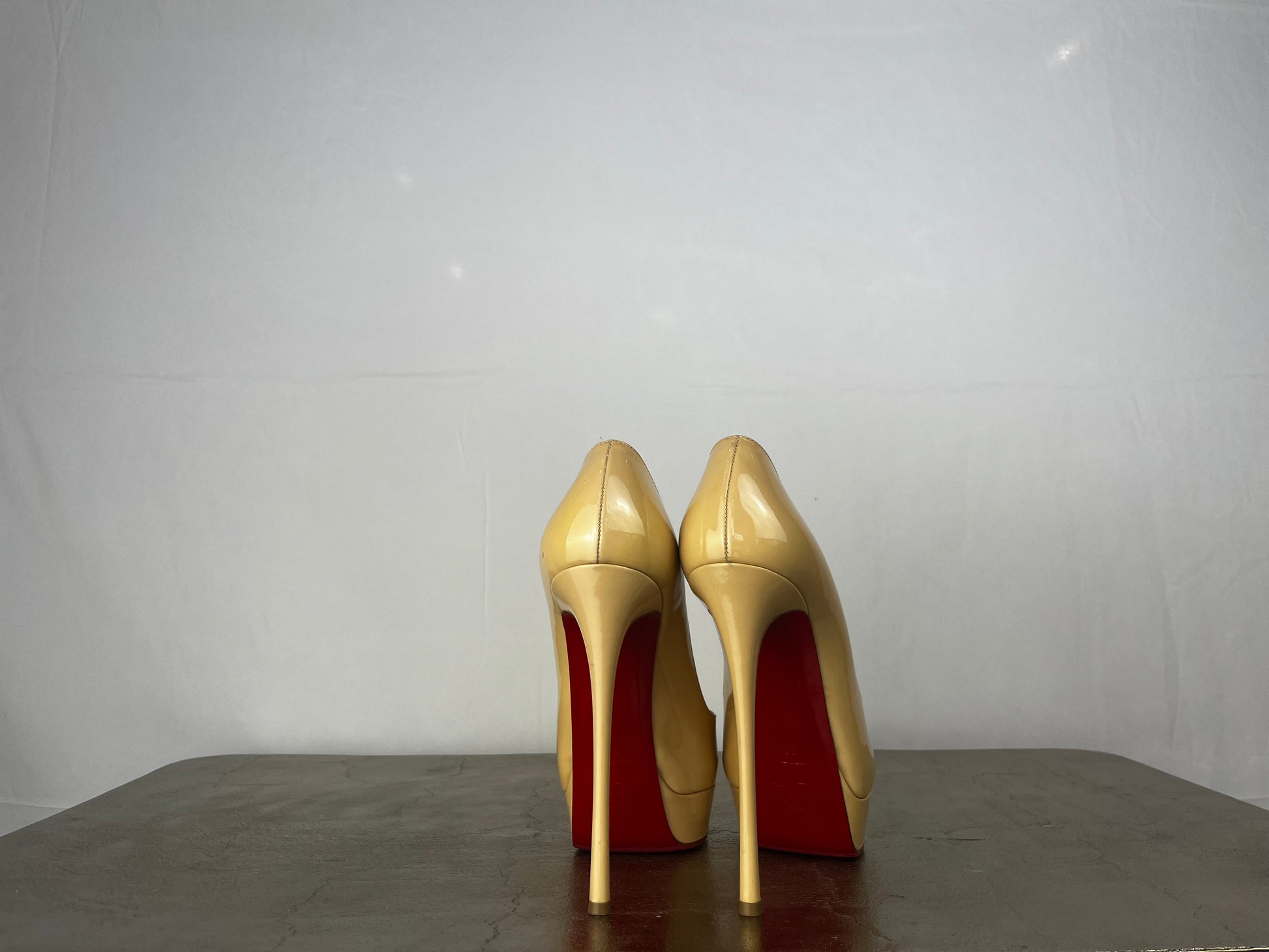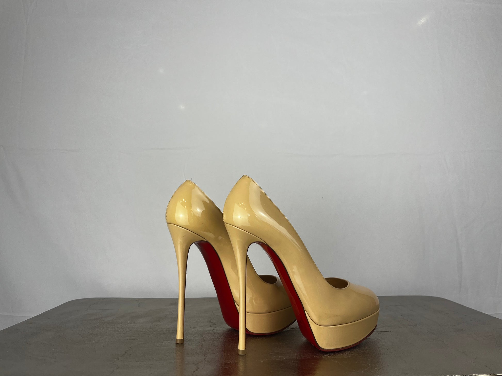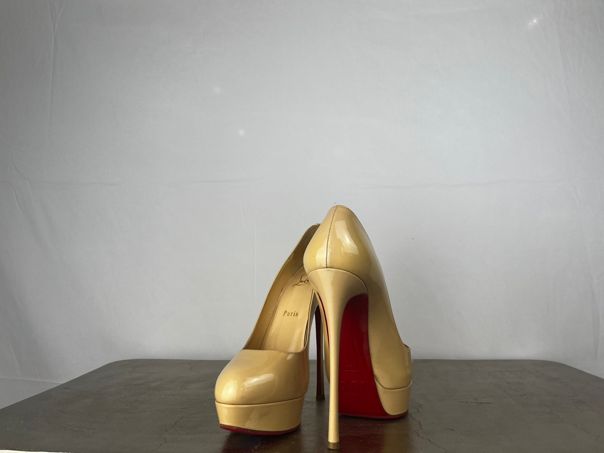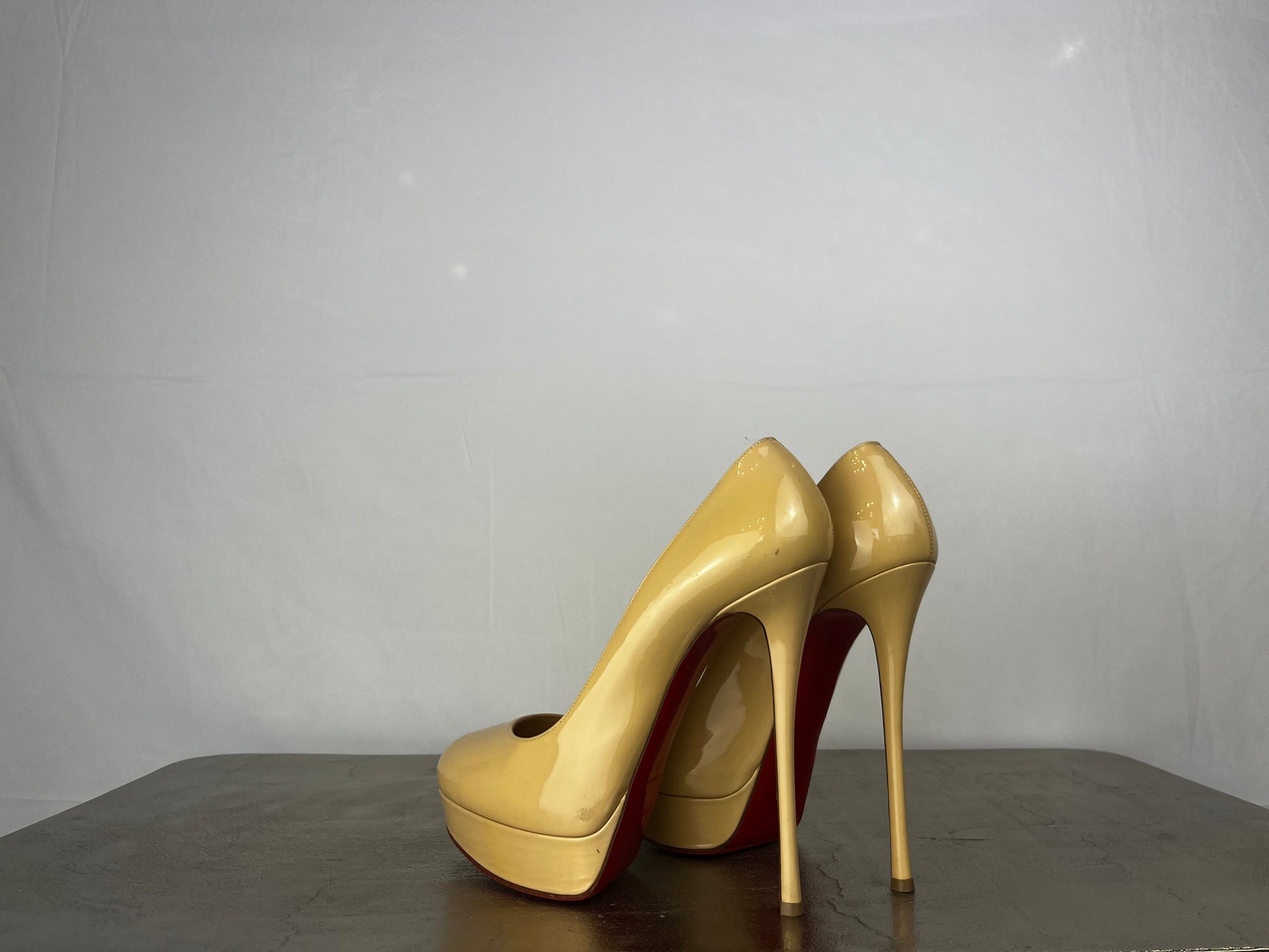 Christian LouBoutin Nude Patent Leather Almond Toe Platform Pumps