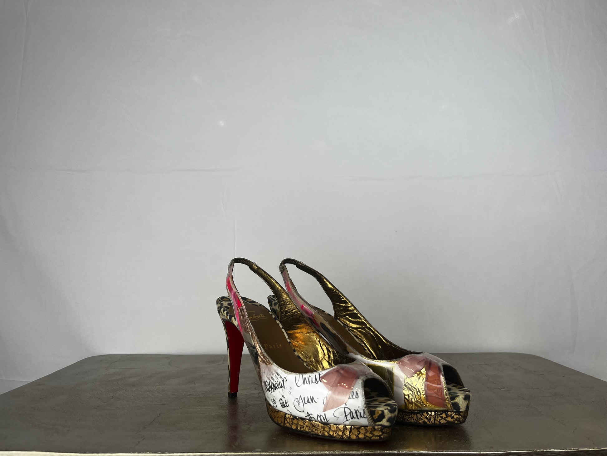 COMES WITH BOX - Christian Louboutin Winter Trash PVC Peep Toe Sling Back Pumps