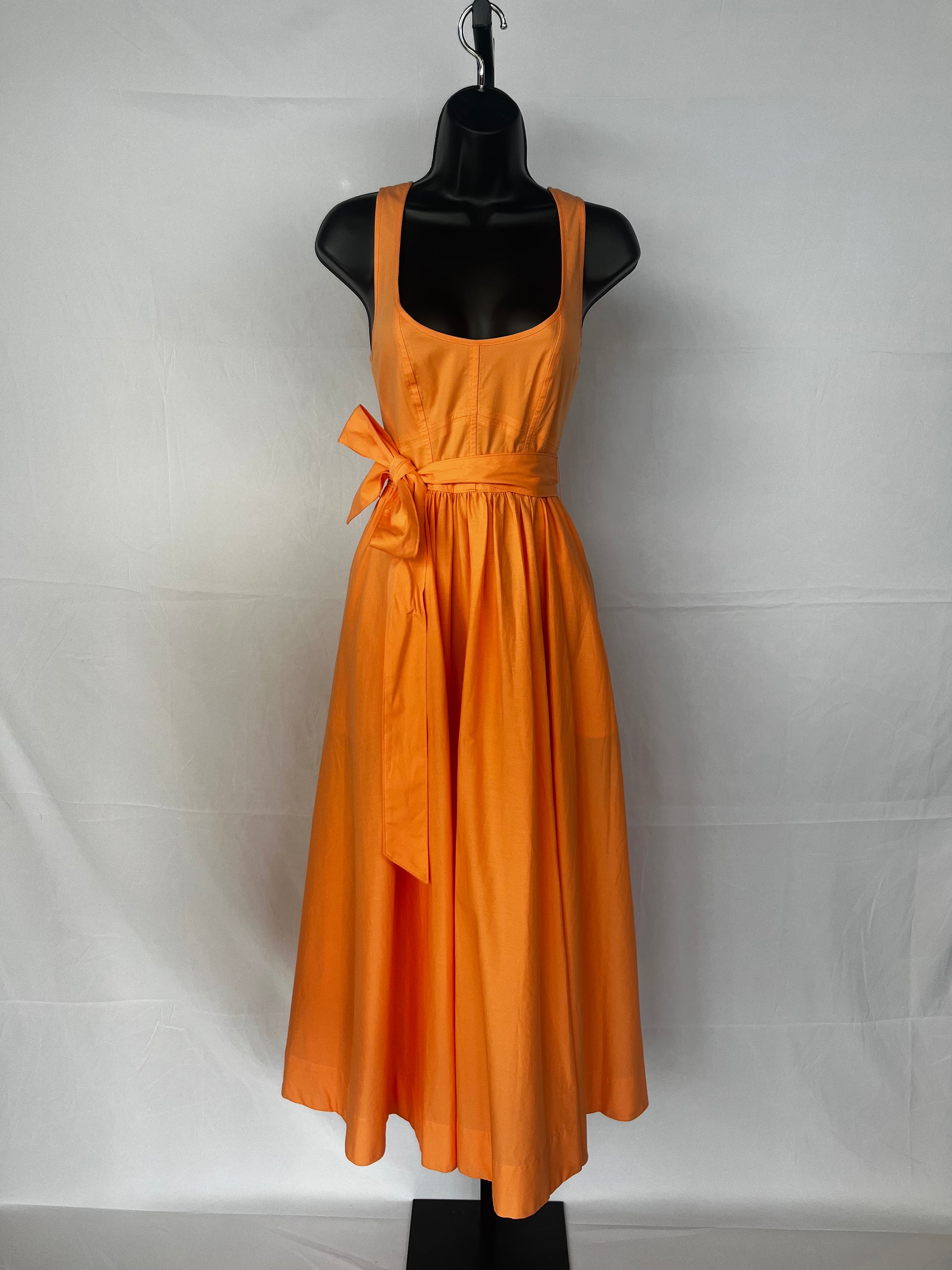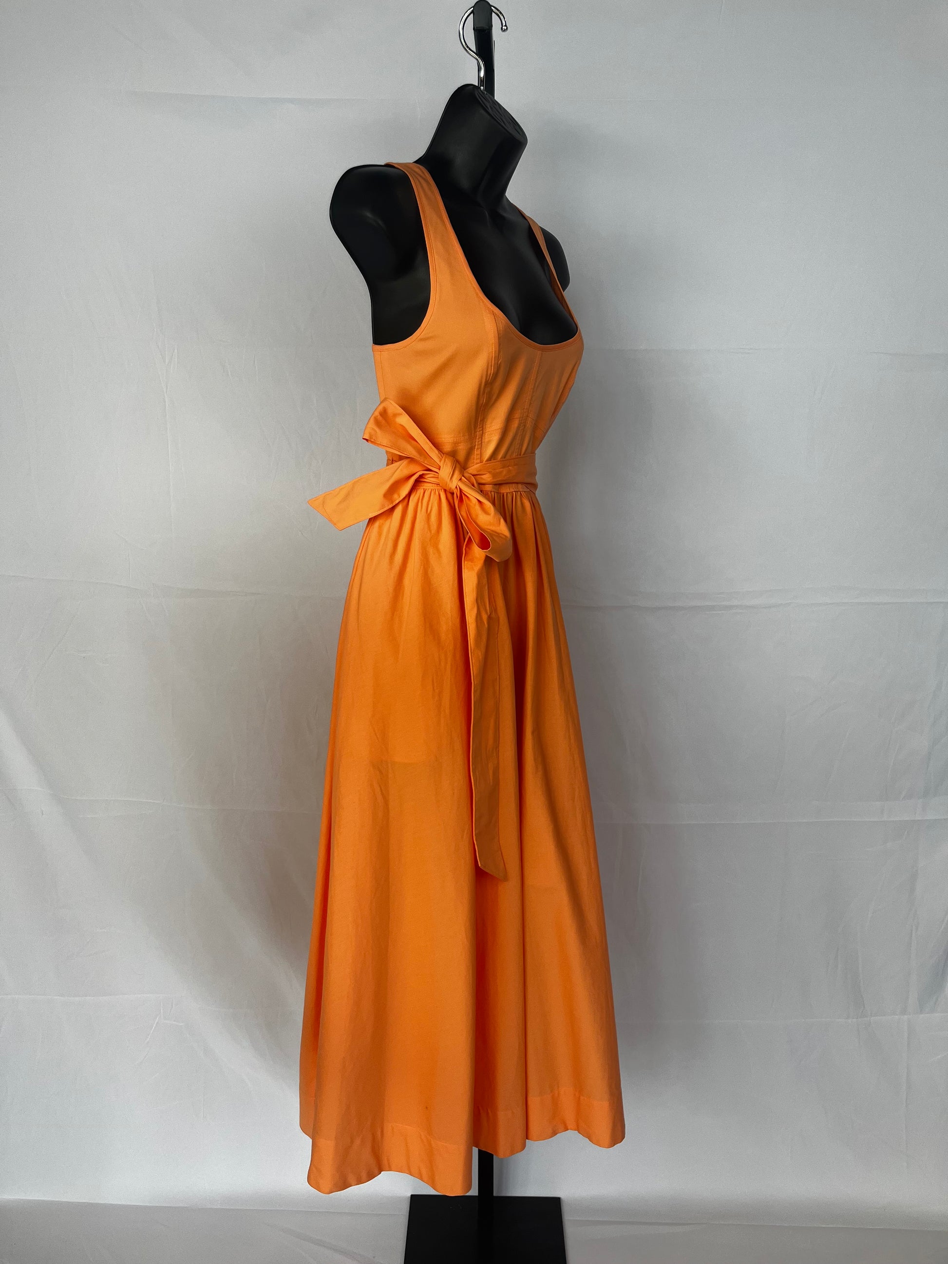 Cinq a Sept Pastel Orange Sleeveless Fit & Flare Maxi Dress w Waist Tie