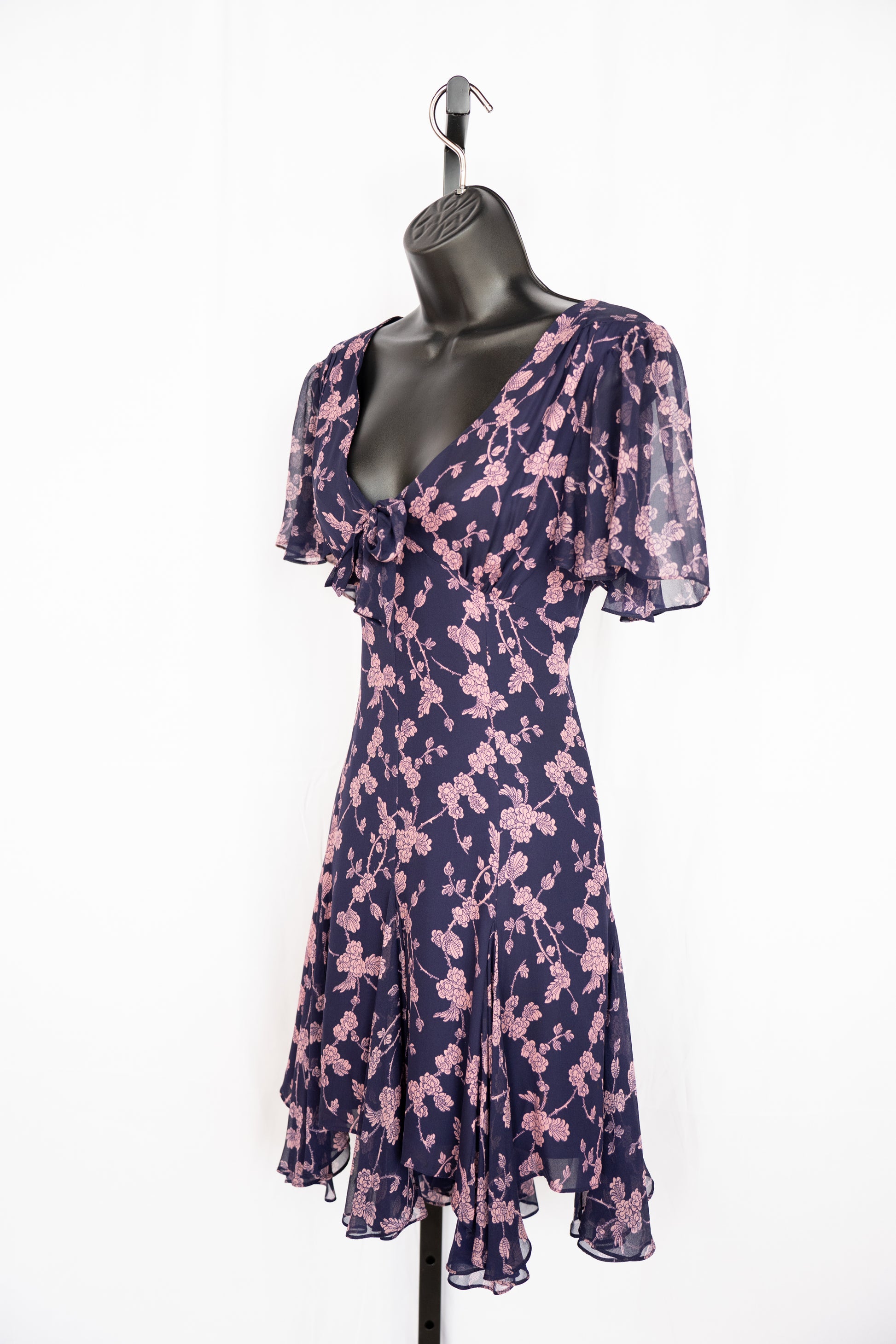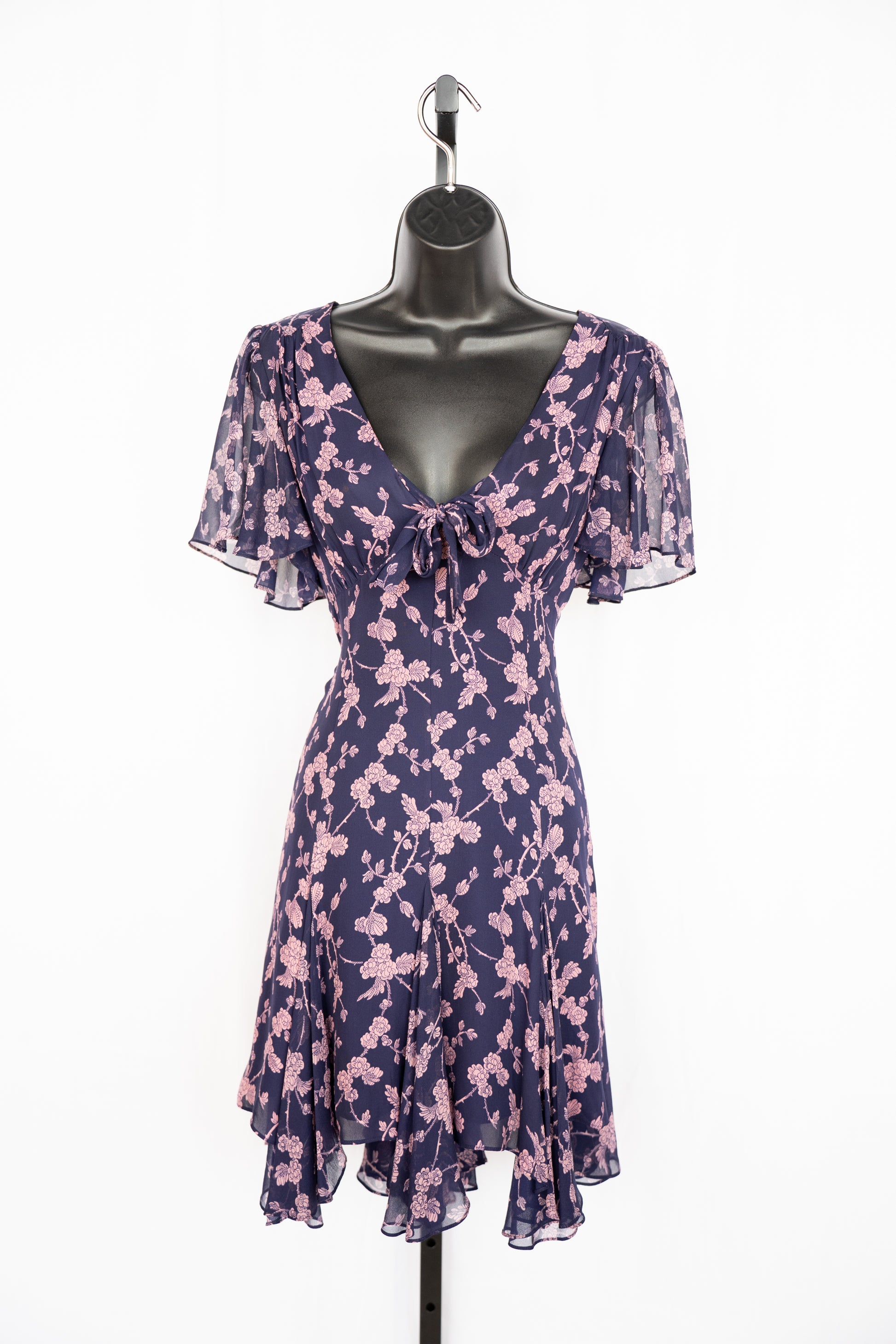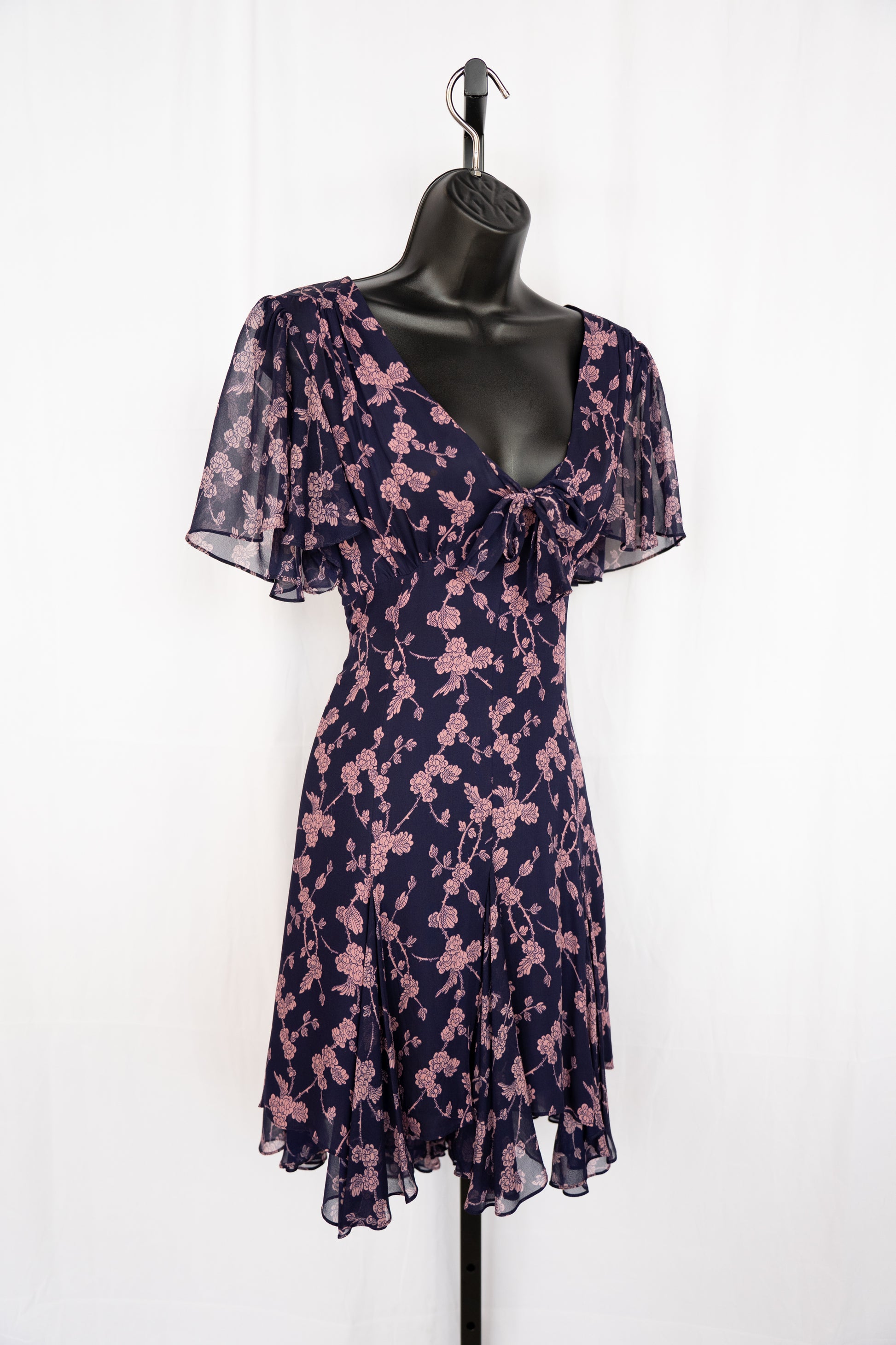 Cinq a Sept Silk Blue & Pink Floral Short Sleeve Chiffon Mini Dress