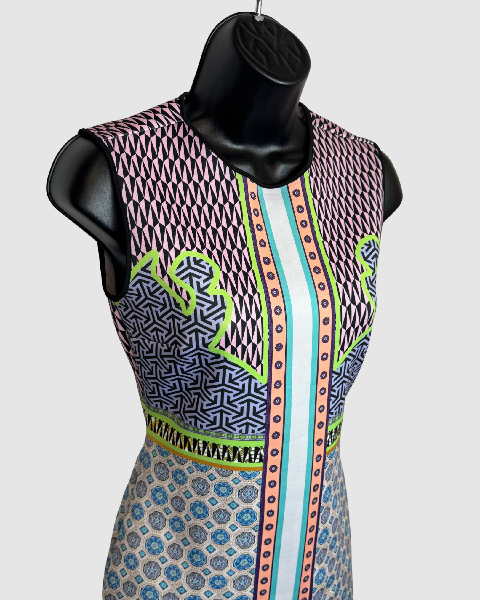 Clover Canyon Multi-Color Multi-Pattern High-Neck Sleeveless Mini Dress