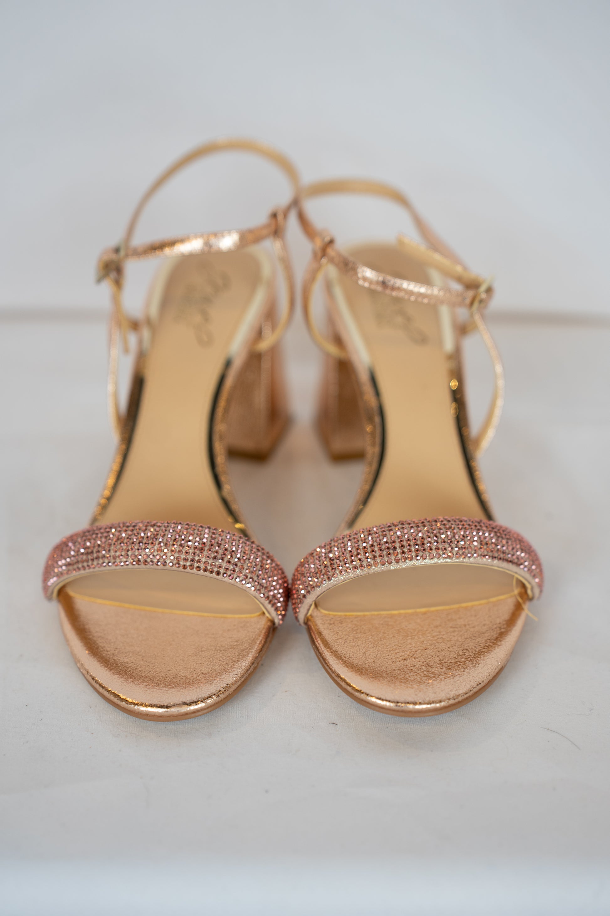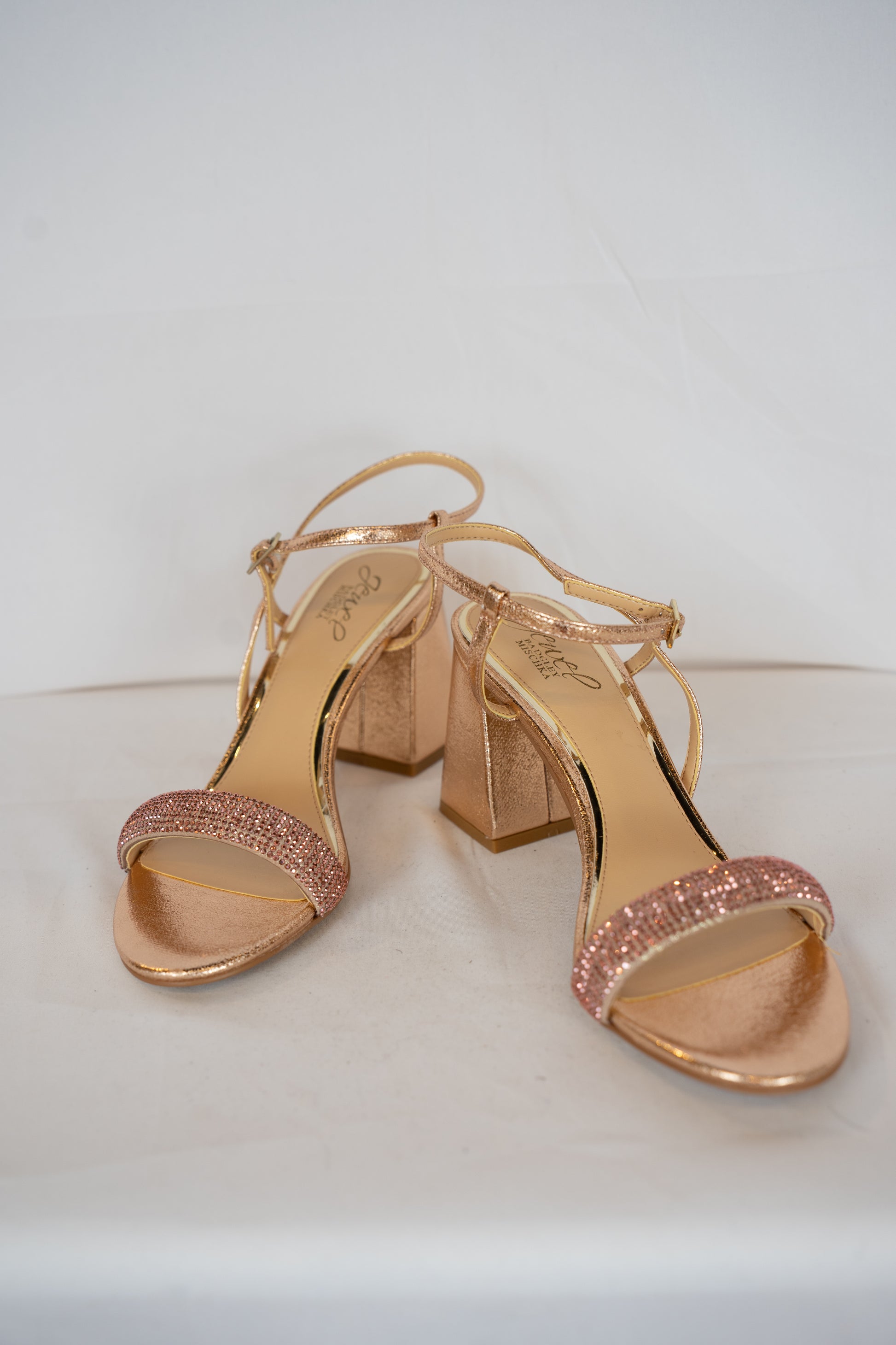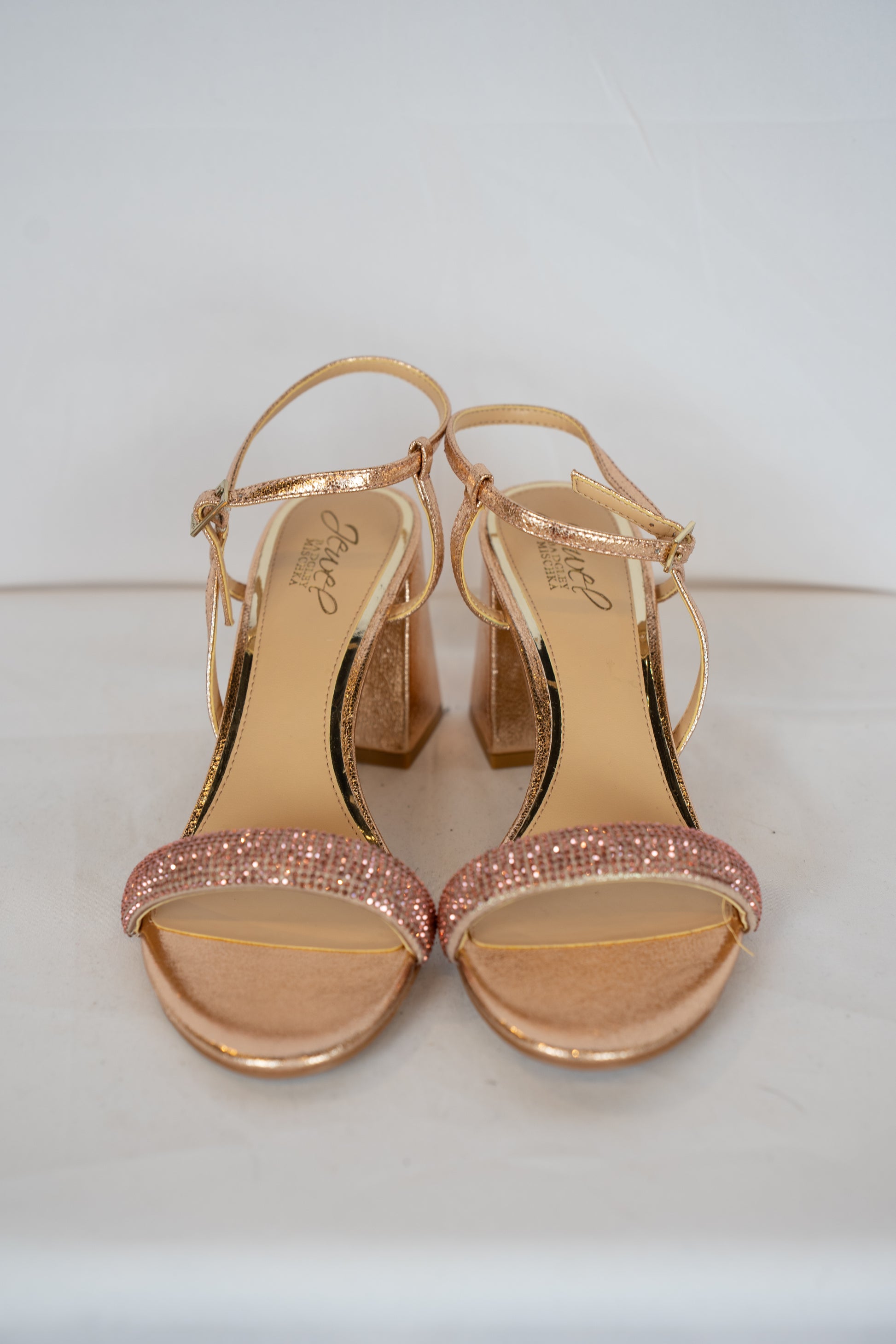 COMES WITH BOX - Jewel Badgley Mischa Rose Gold Rhinestone Block Heels