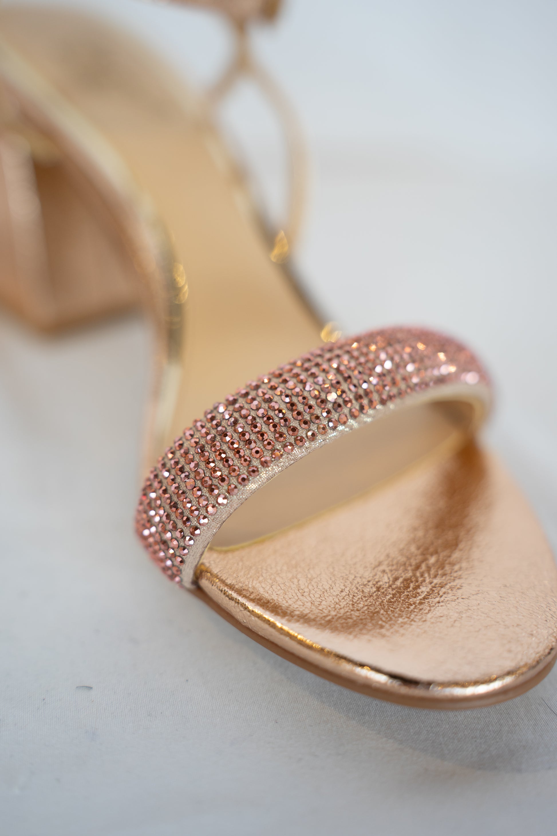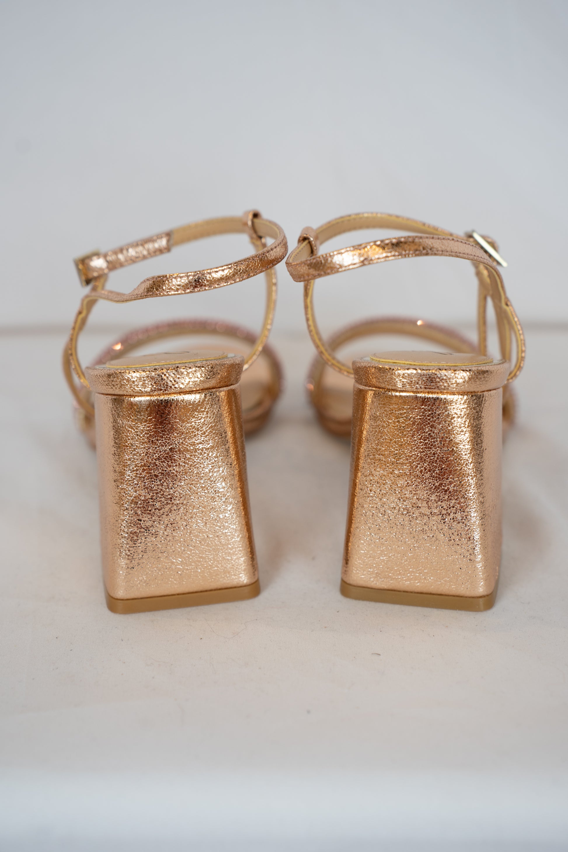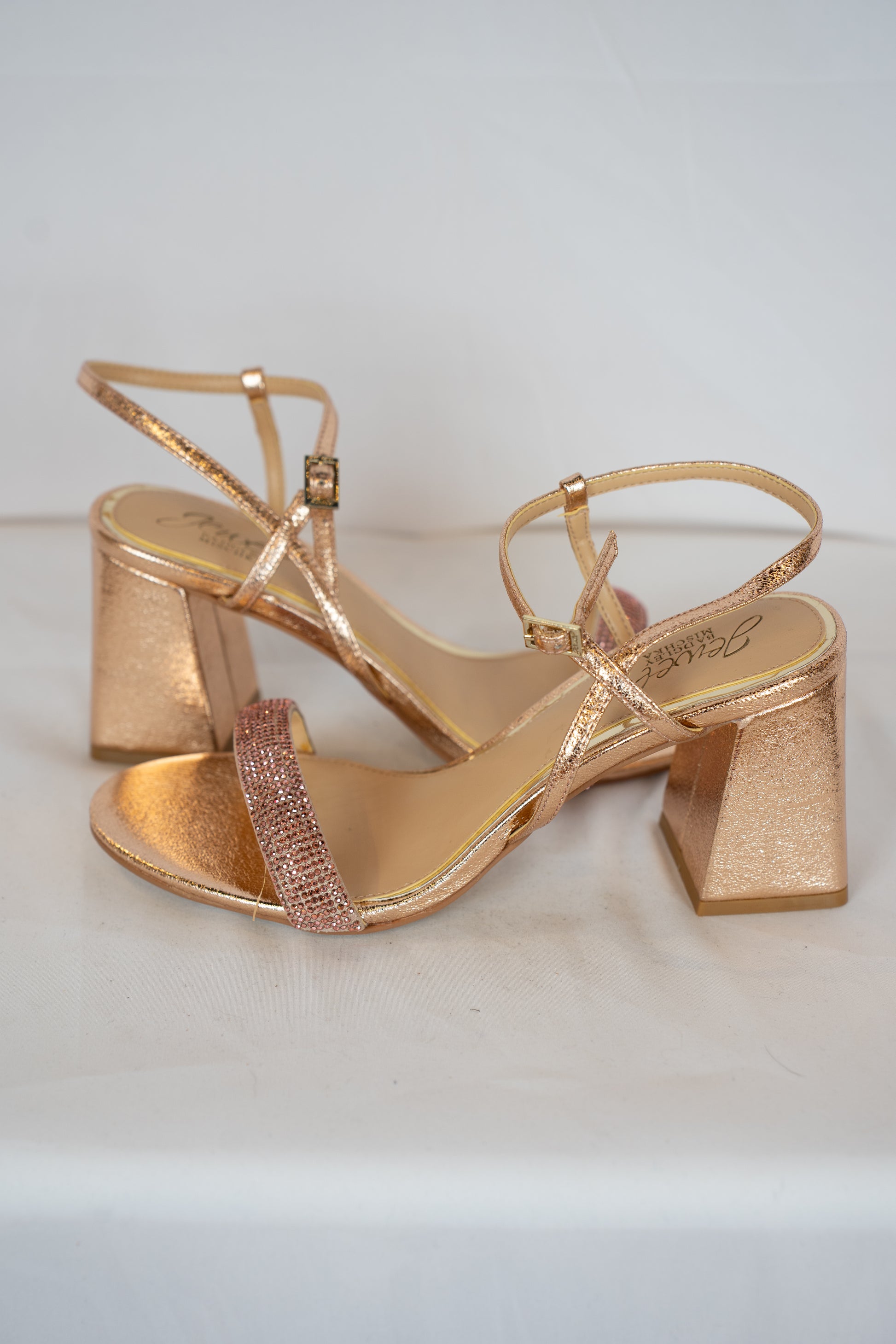 COMES WITH BOX - Jewel Badgley Mischa Rose Gold Rhinestone Block Heels