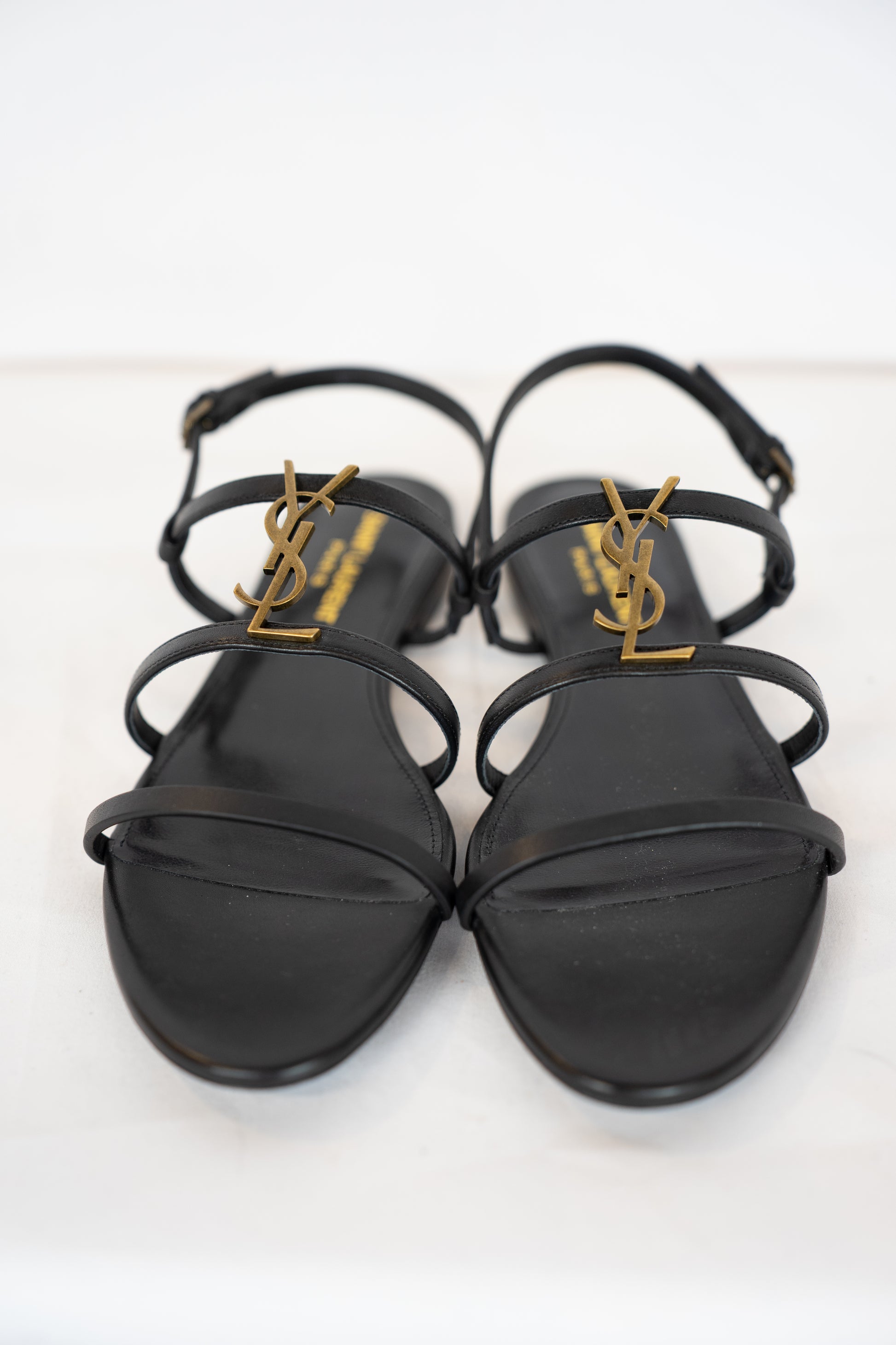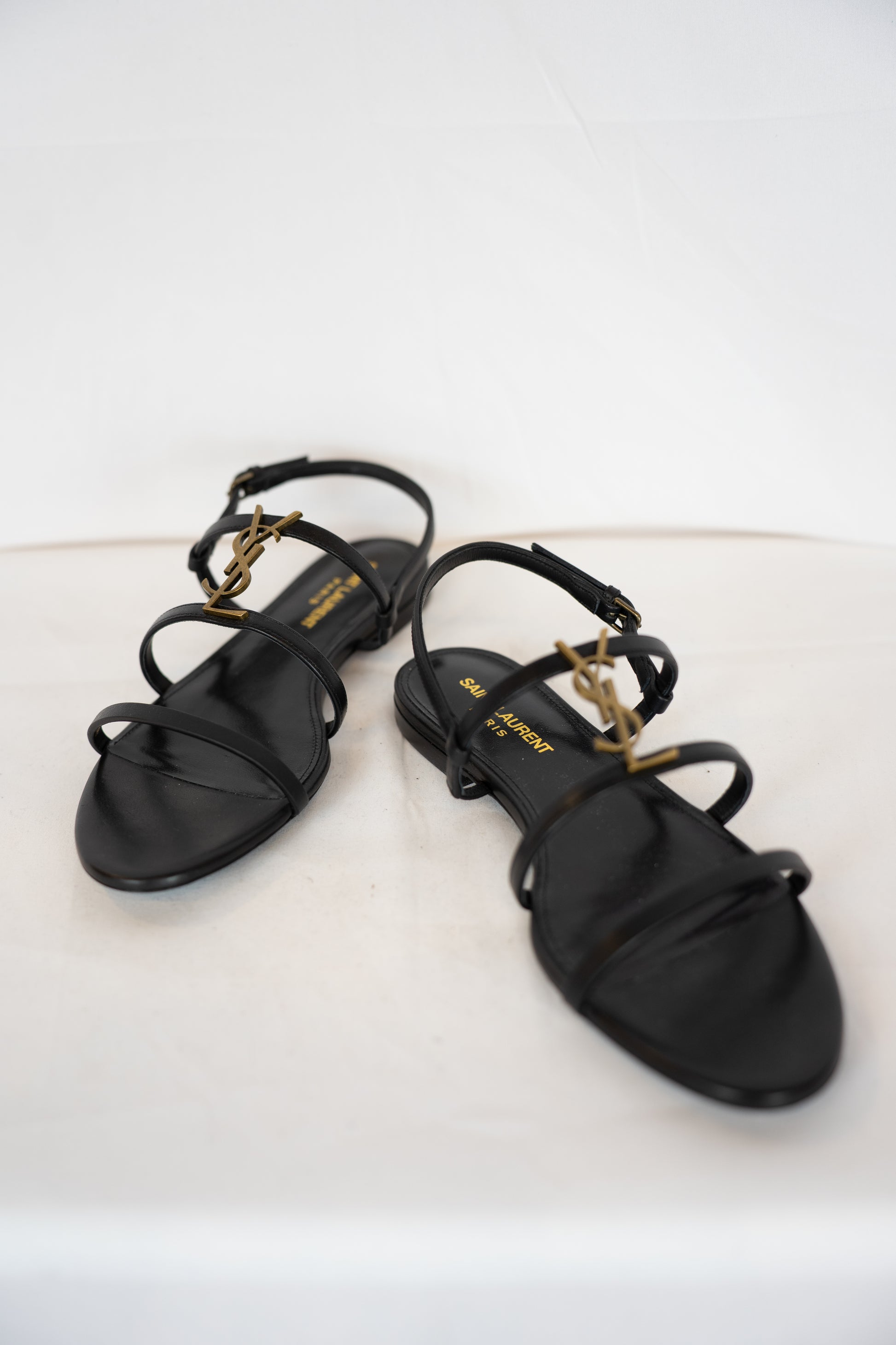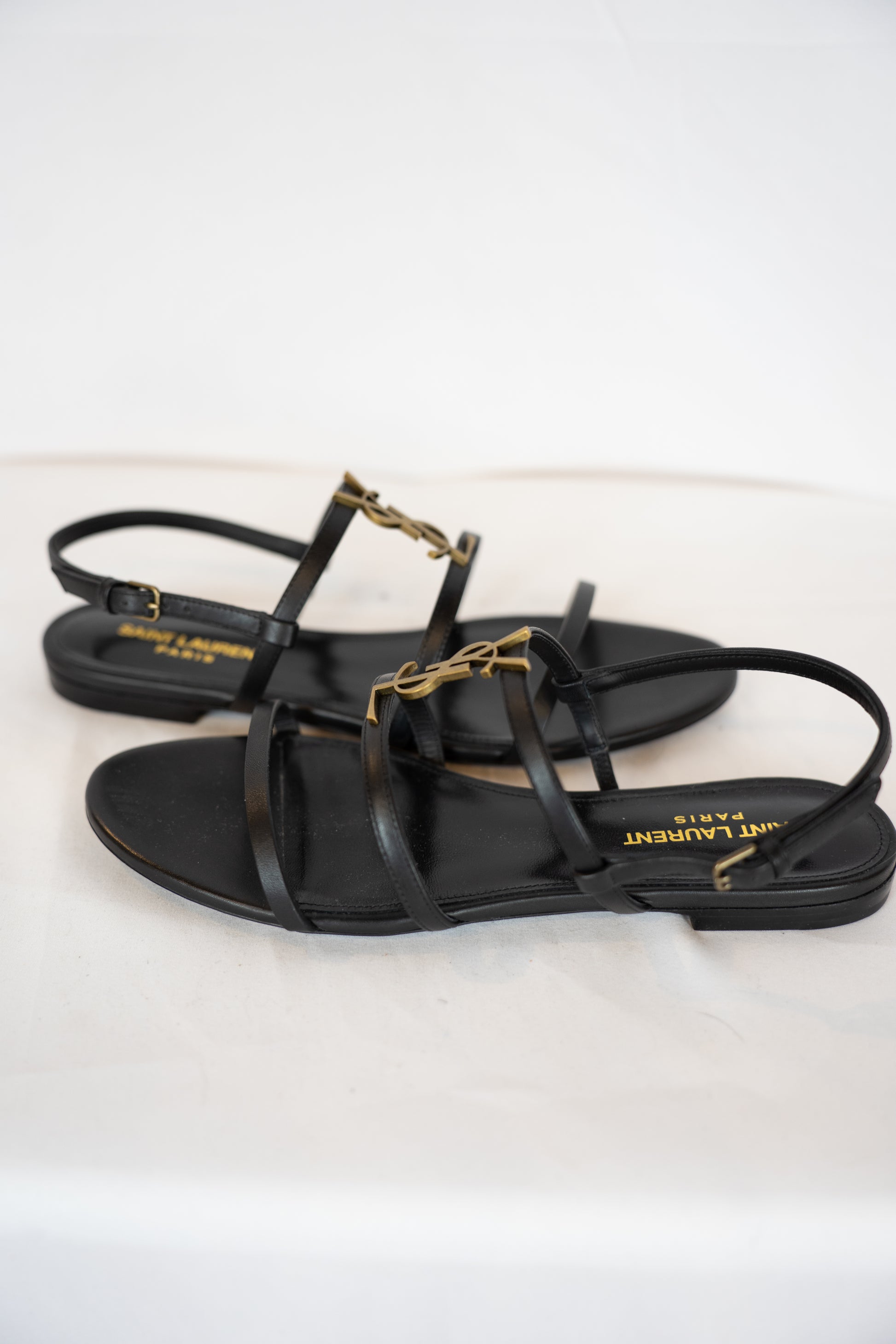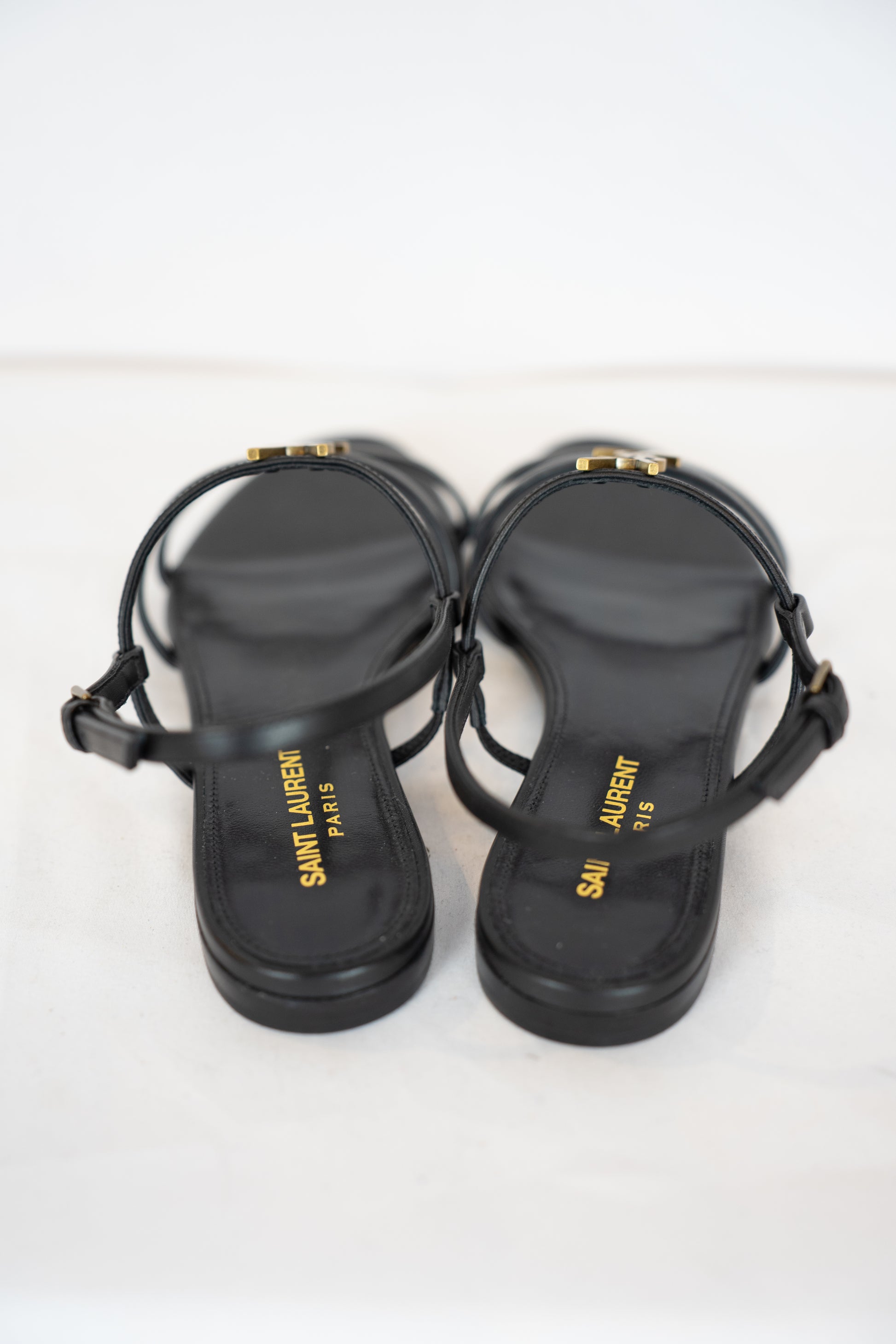 COMES WITH BOX - Saint Laurent Black Tri-Strap Sandal w/ Gold YSL Logo