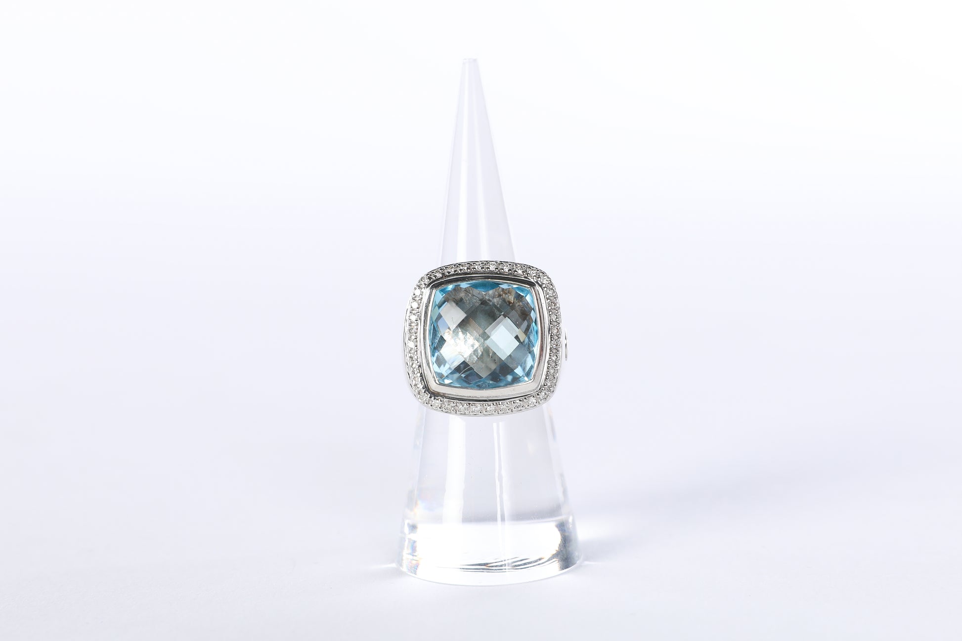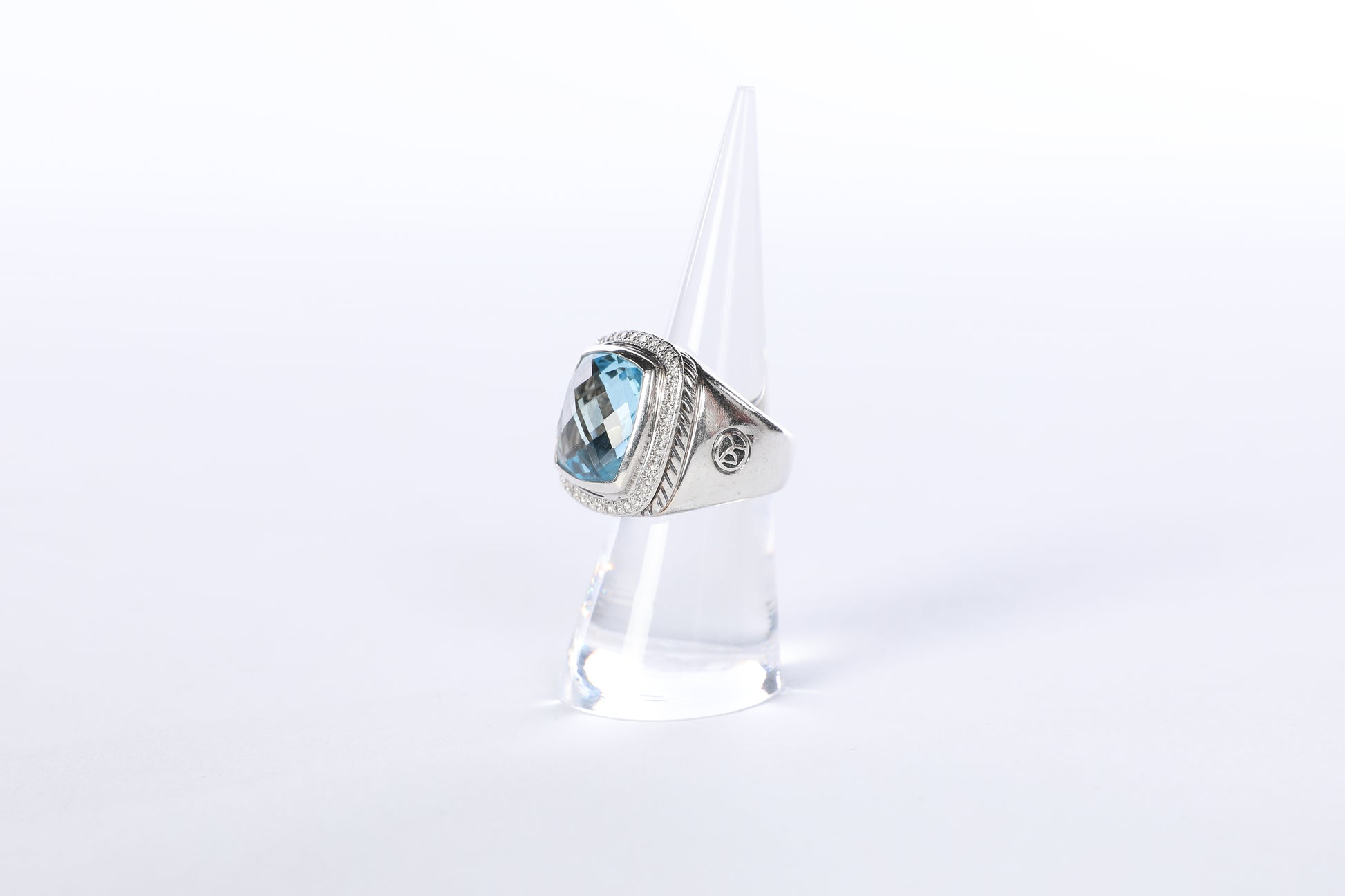 David Yurman Albion® Ring Sterling Silver with Blue Topaz and Diamonds, 14mm (Size 6)