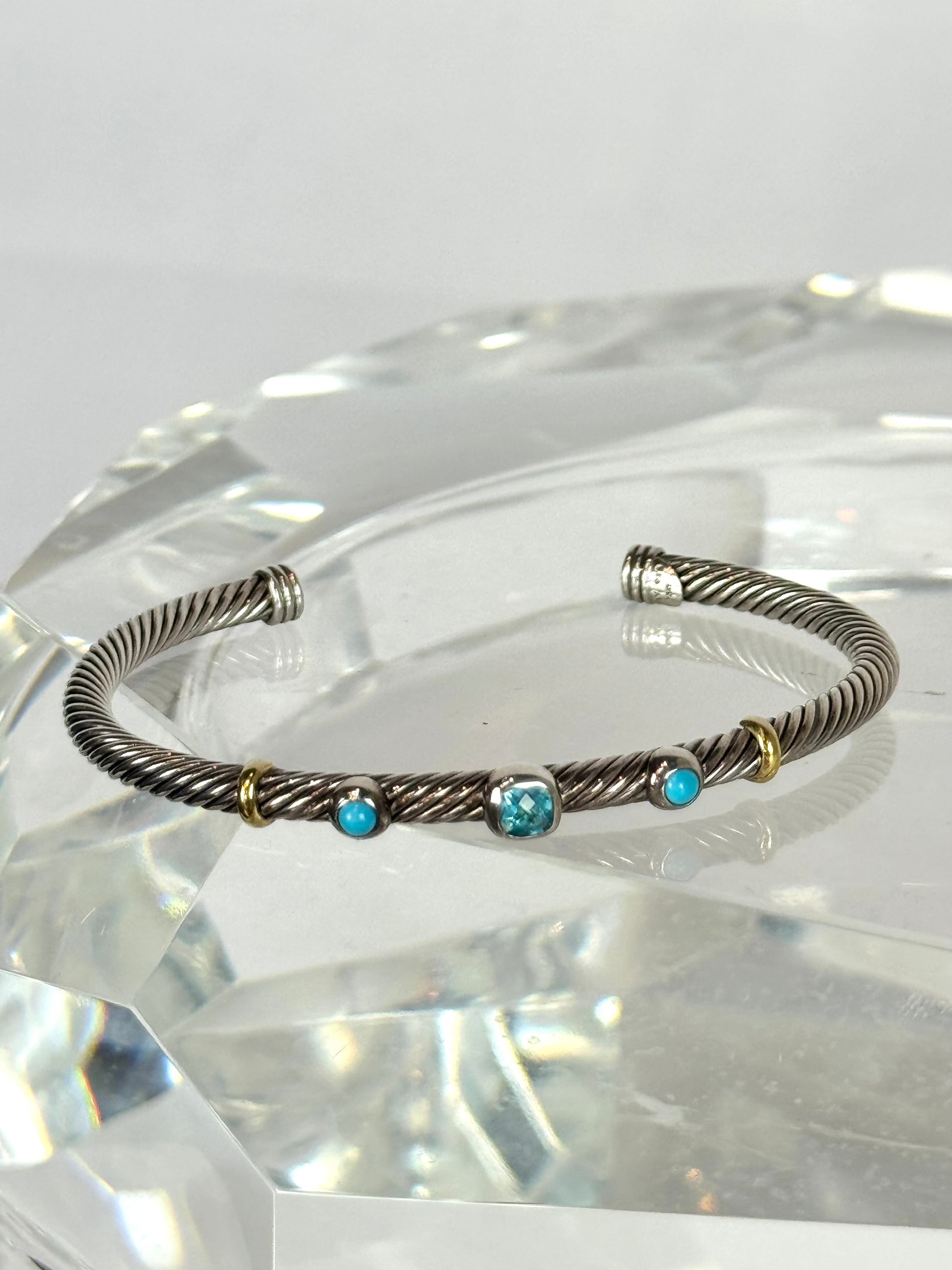 David Yurman Renaissance Blue Topaz Sterling Silver Cable Bracelet w/ 18K Gold Accents