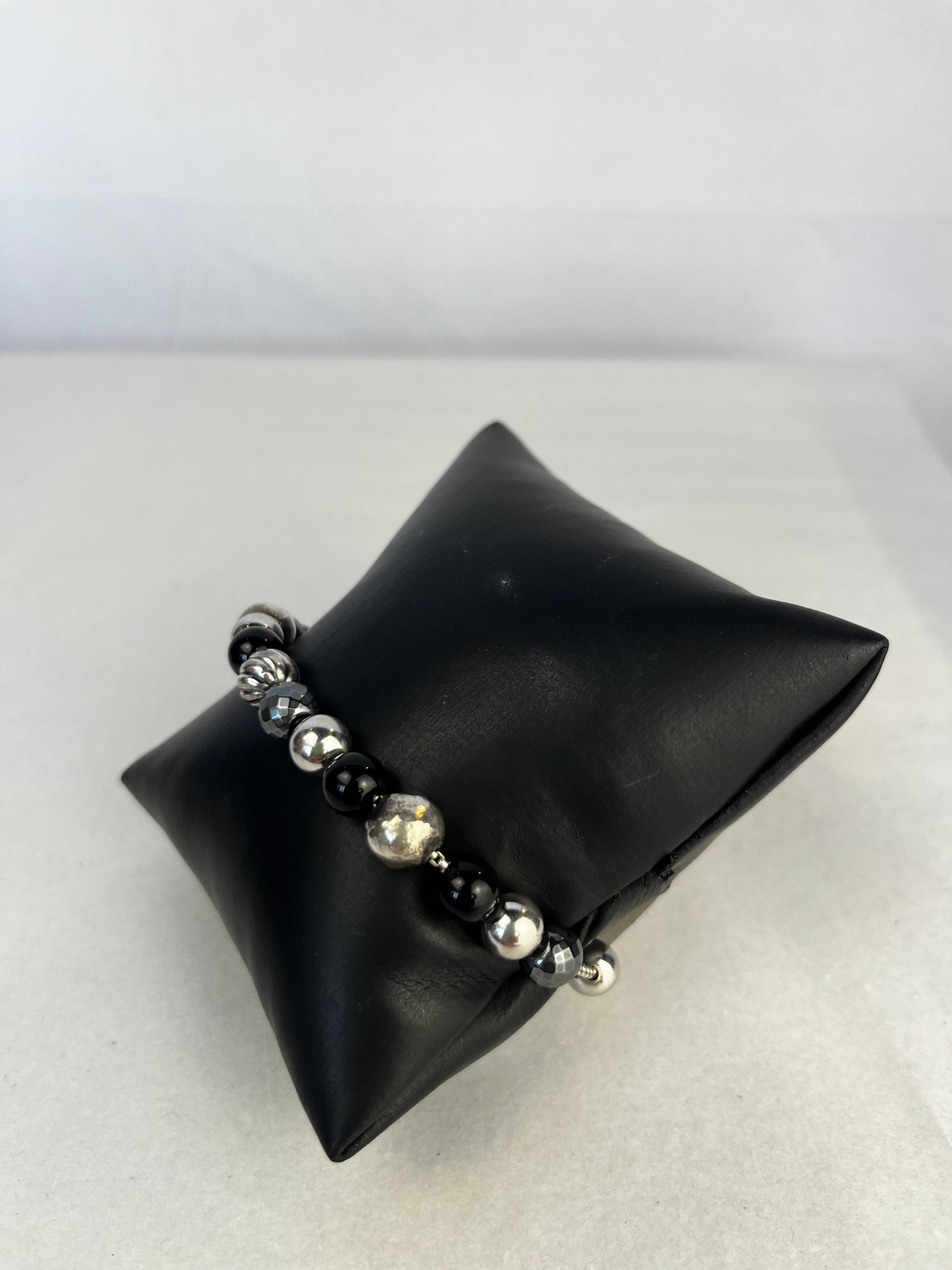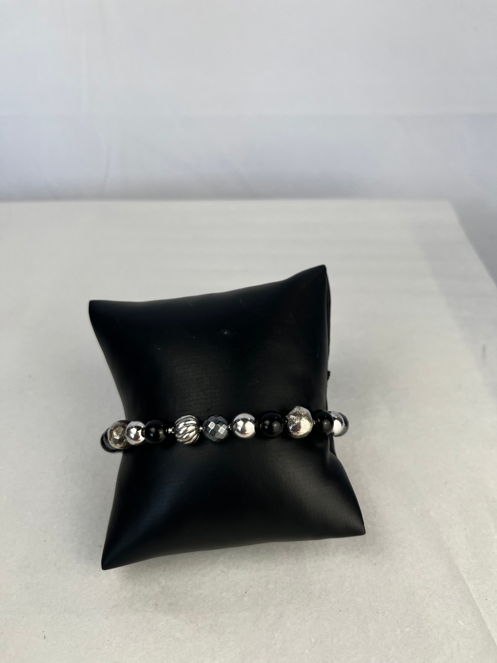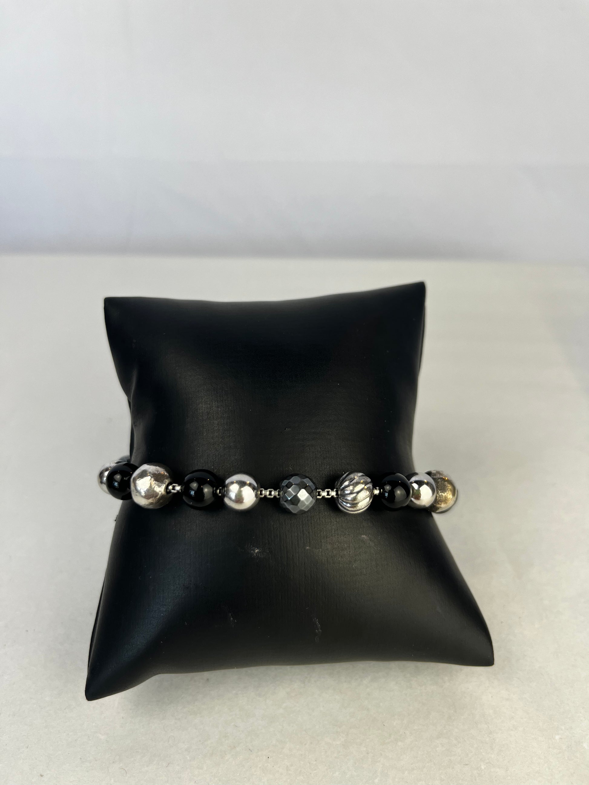David Yurman Sterling Silver Black Onyx & Hematite Bead Bracelet