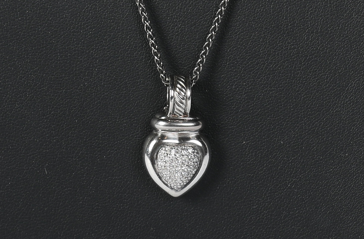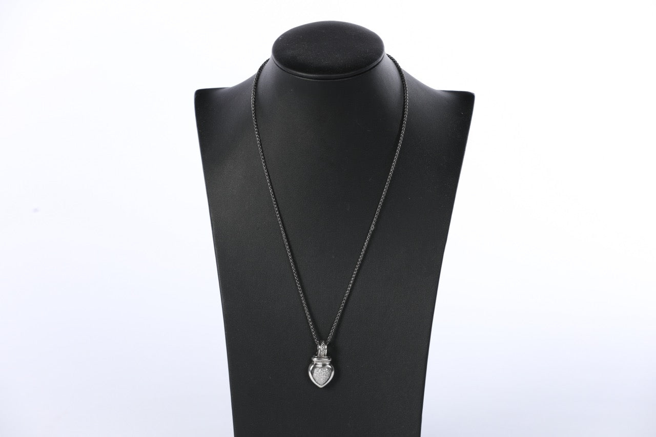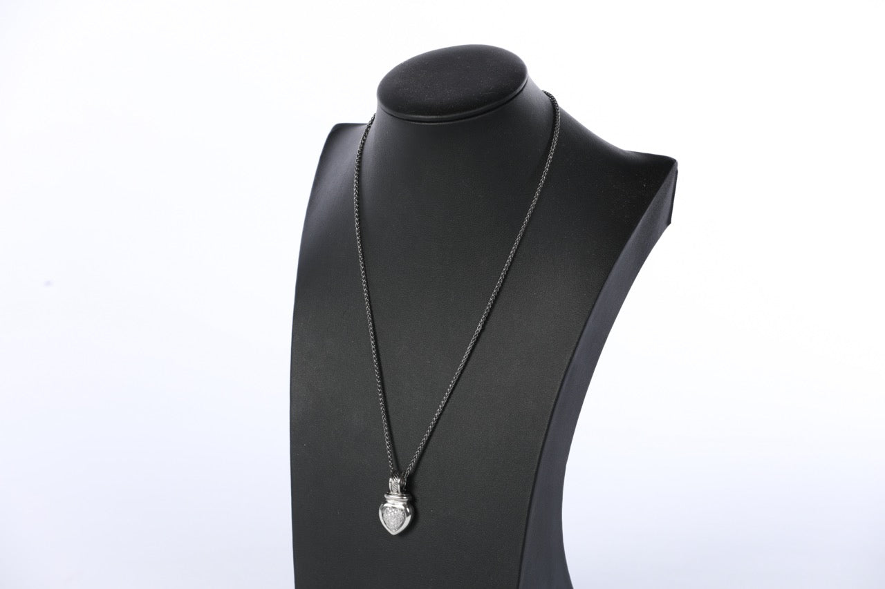 David Yurman Sterling Silver Diamond Heart Enhancer Cable Pendant on Sterling Silver Chain (Not D.Y.) ~21"