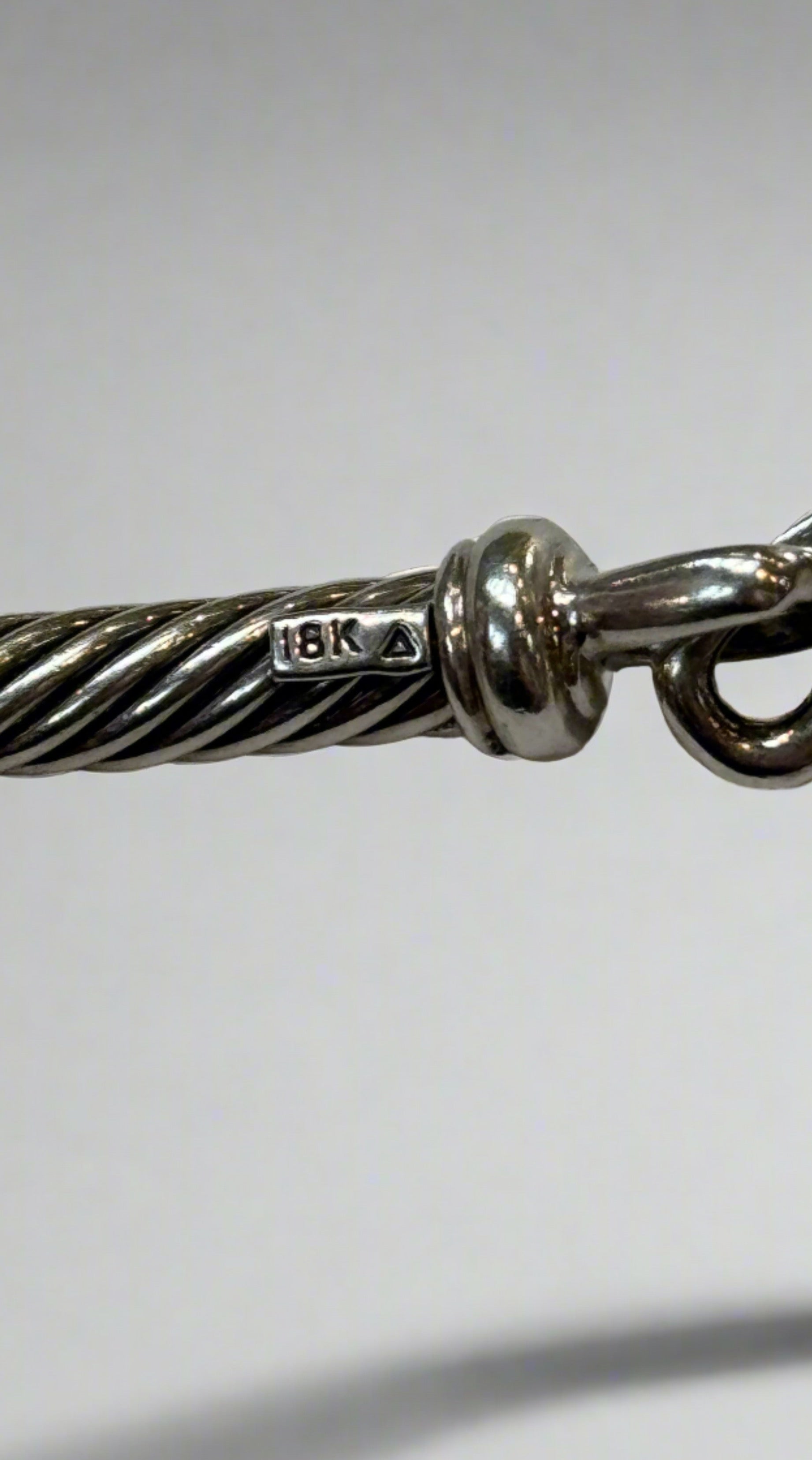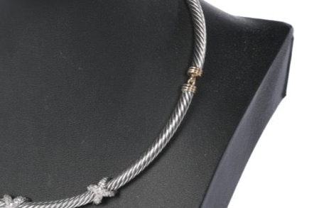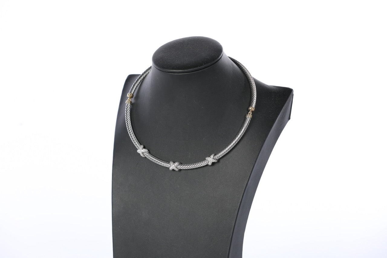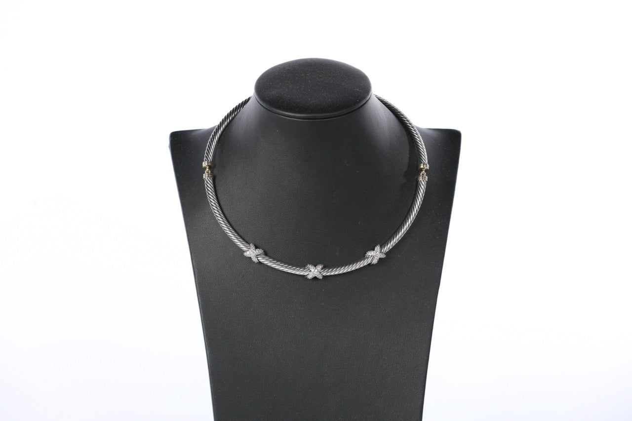 David Yurman Two Toned 18k White & Yellow Gold X Cable Collar Necklace with Diamonds, 5mm