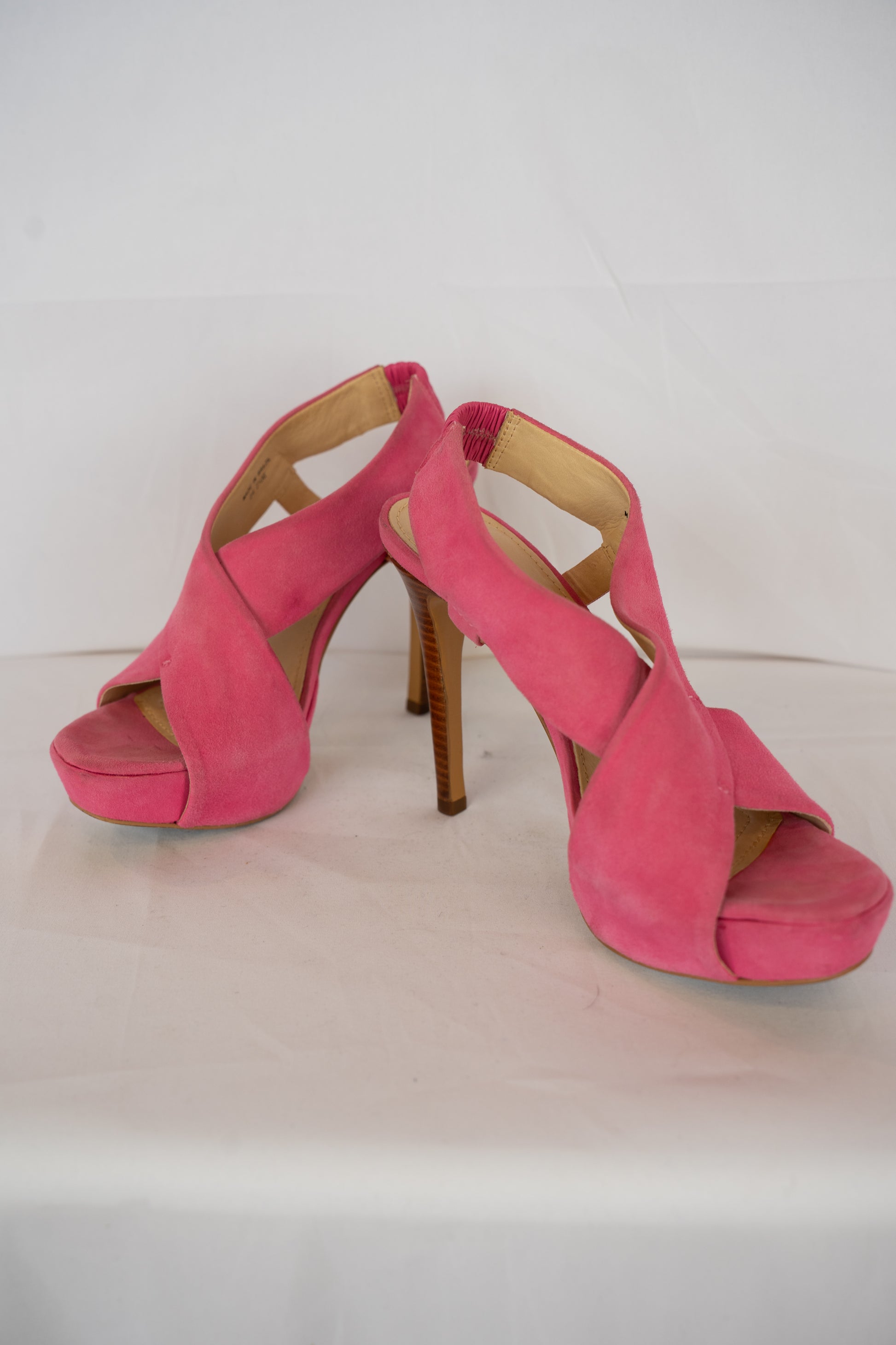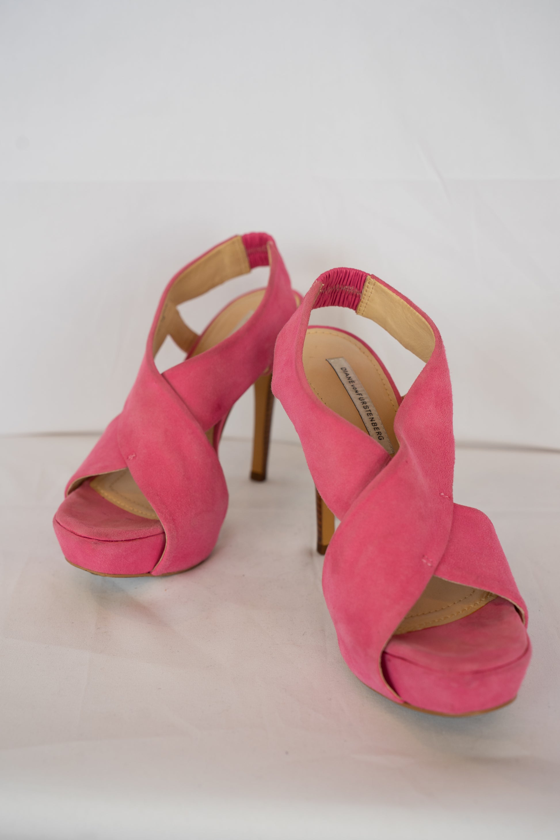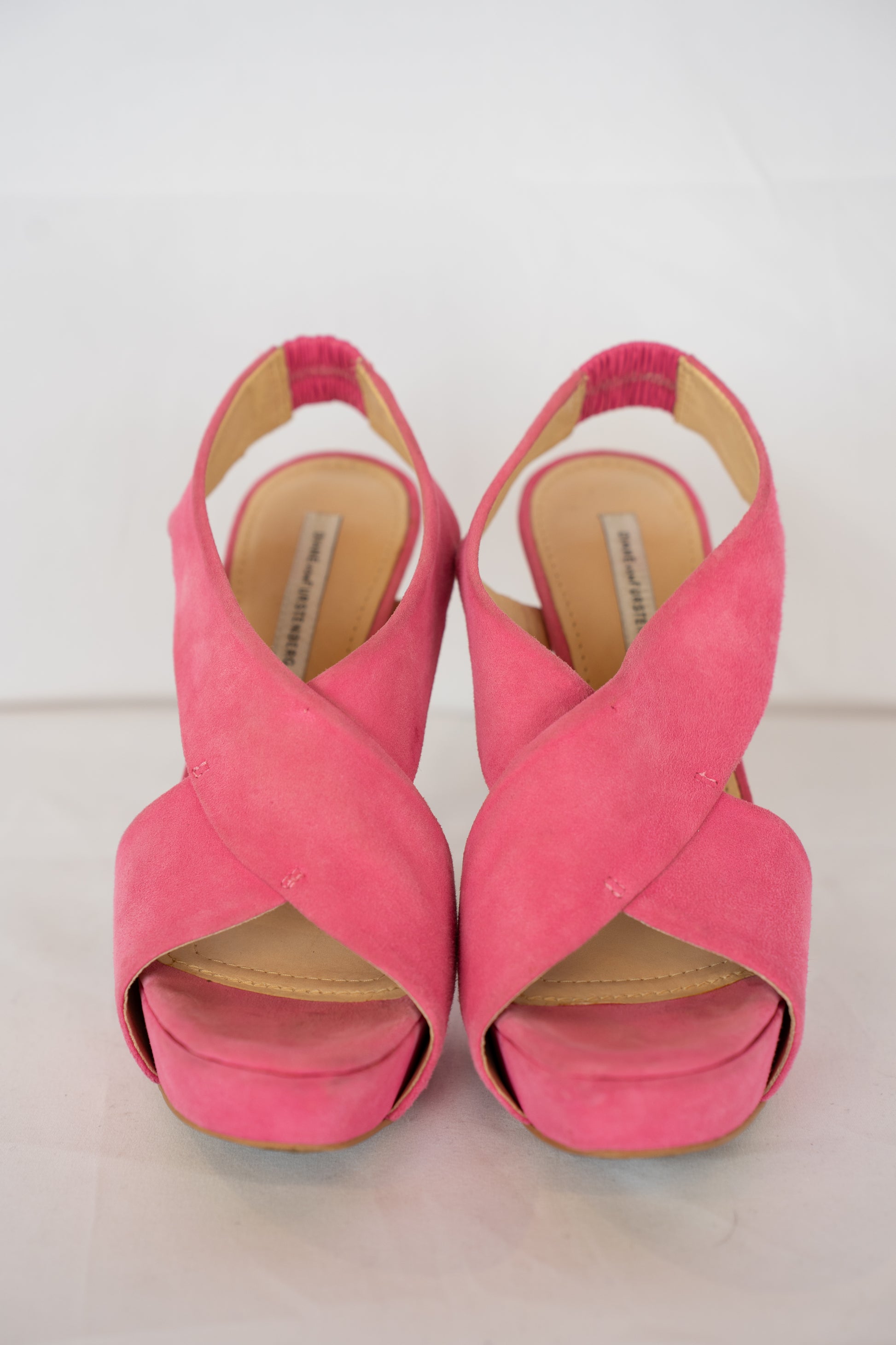 Diane Von Furstenberg Pink Suede Cross Strap Platform Heels