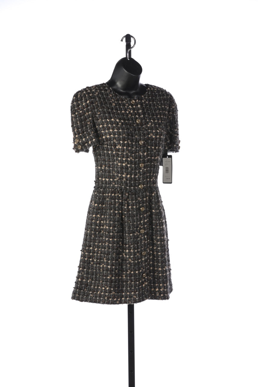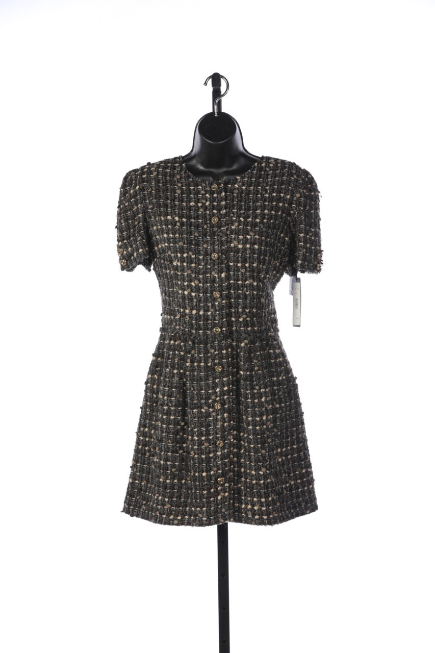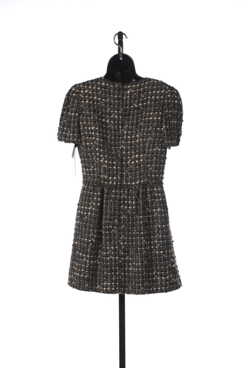 Dolce & Gabbana Brown & Grey Tweed Short-Sleeve Dress w/ Gold Buttons NWT