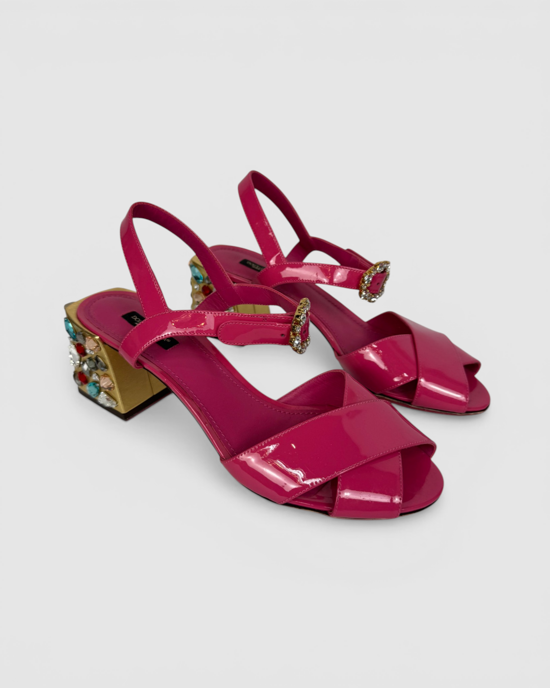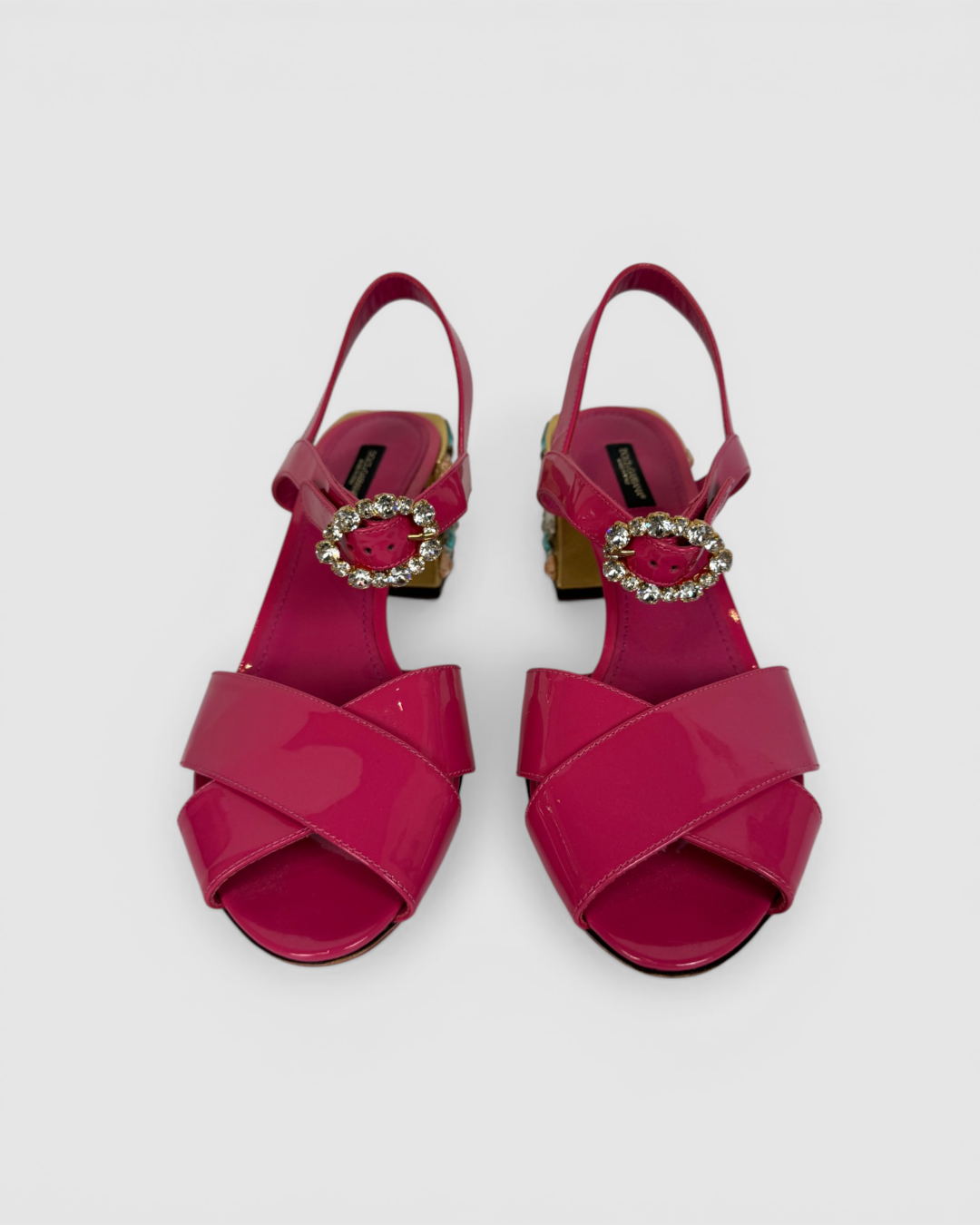Dolce & Gabbana Bubblegum Pink Crystal Embellished Patent-Leather Sandals