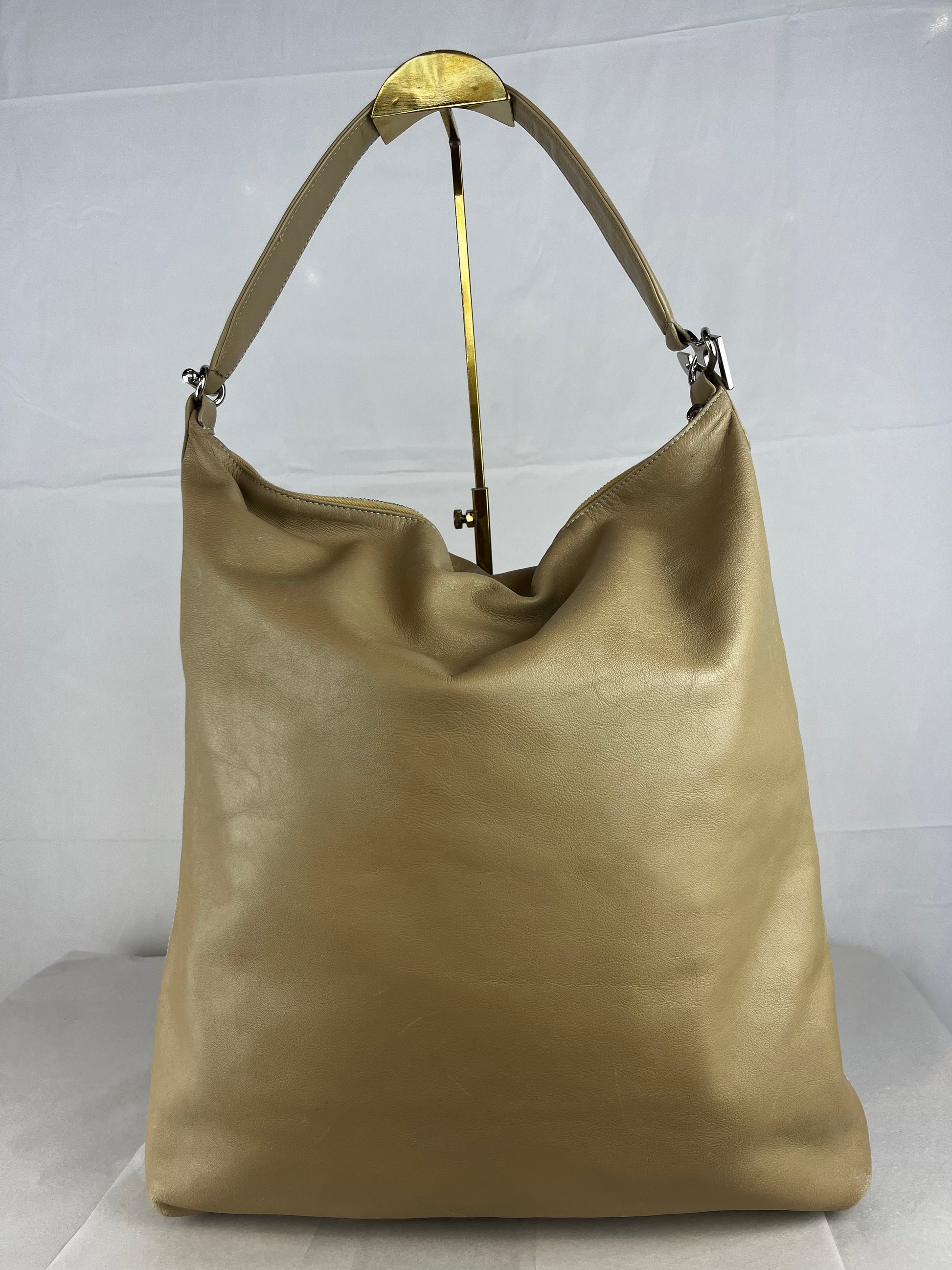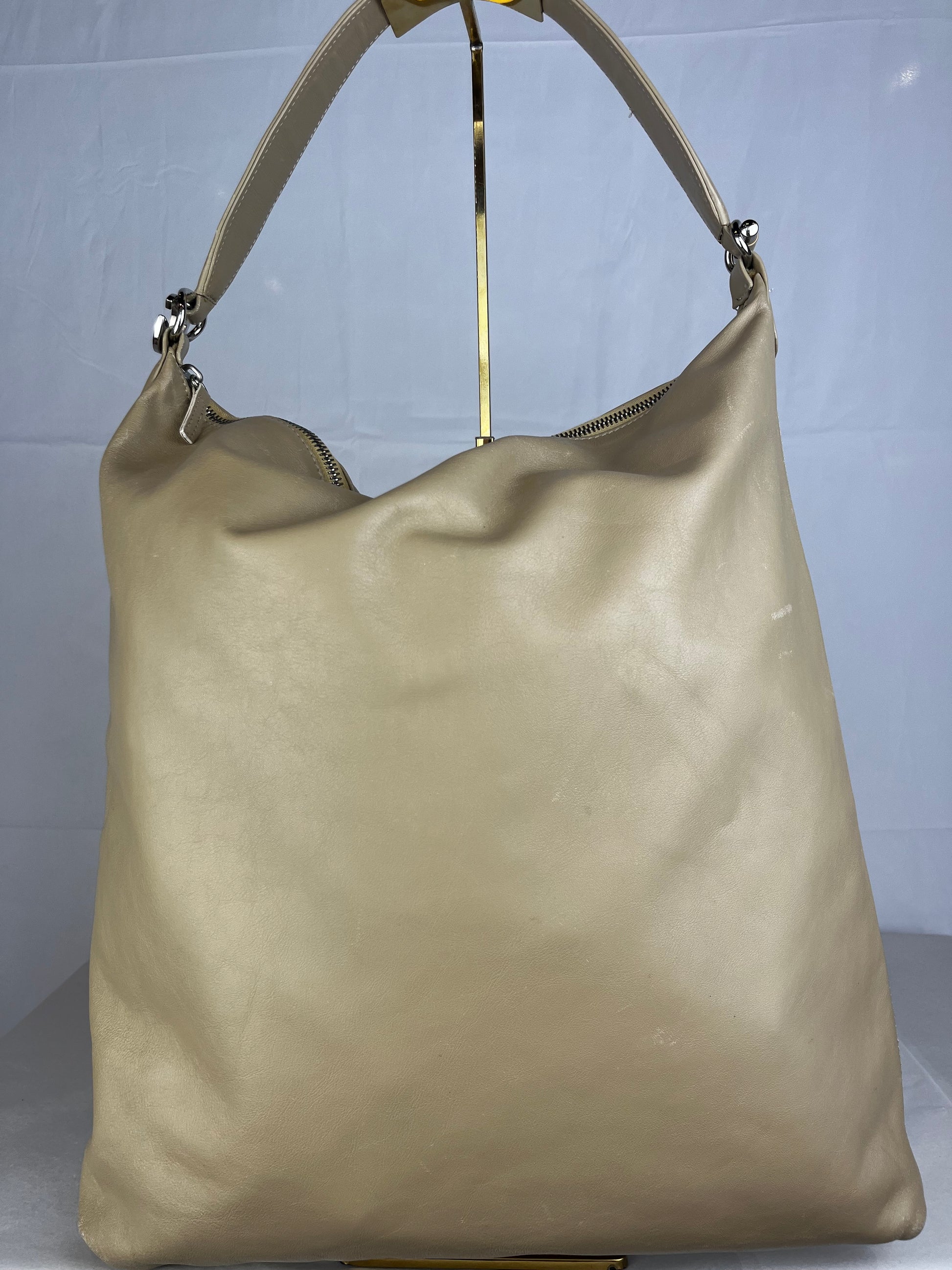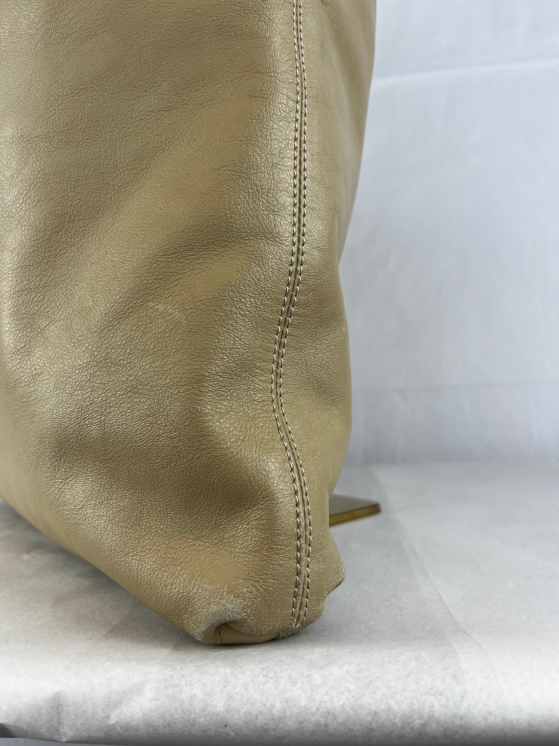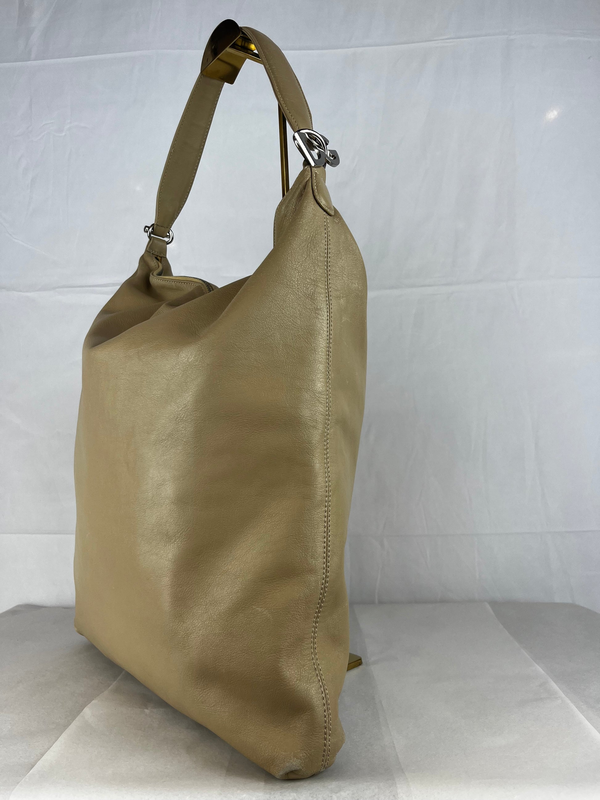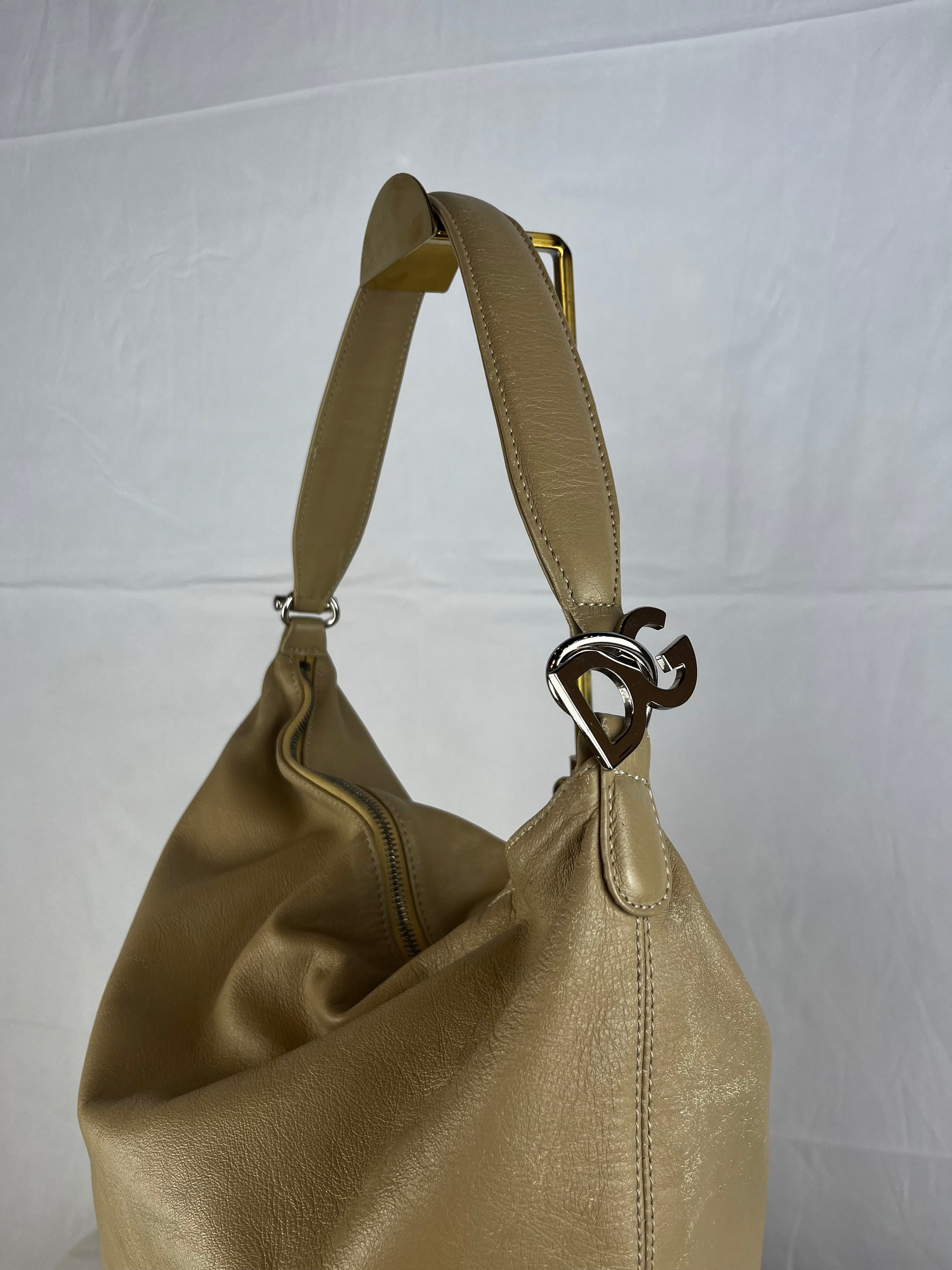 Dolce & Gabbana Leather Beige Shoulder Strap Charm Logo Hobo Tote