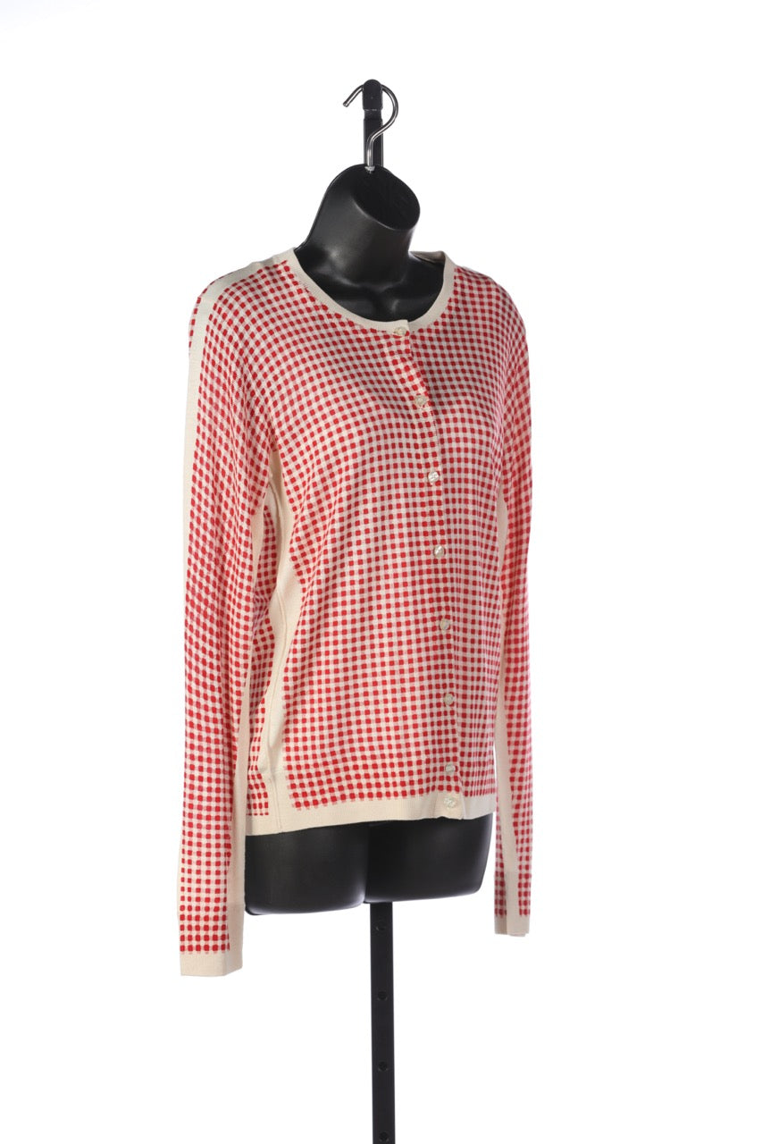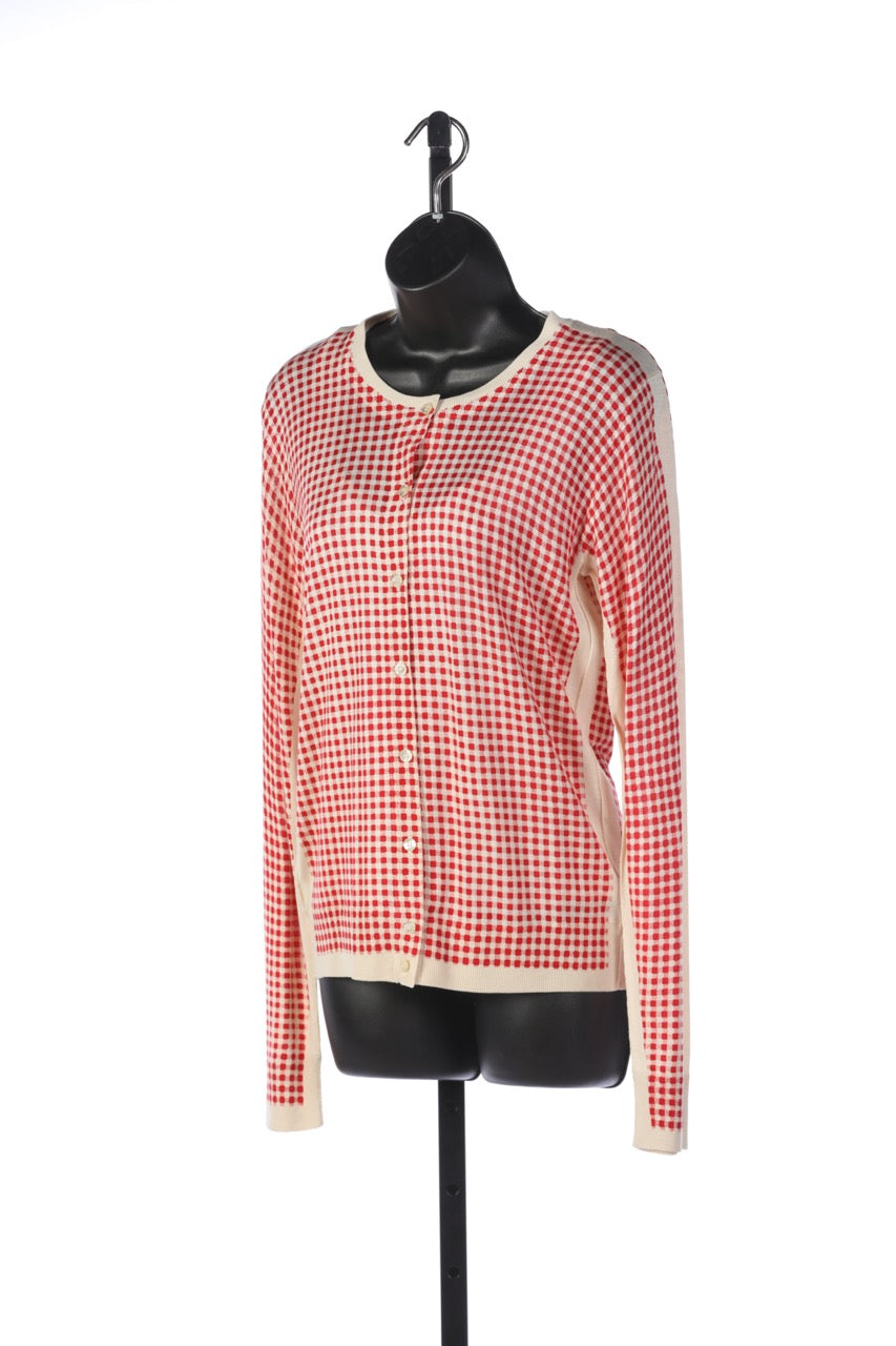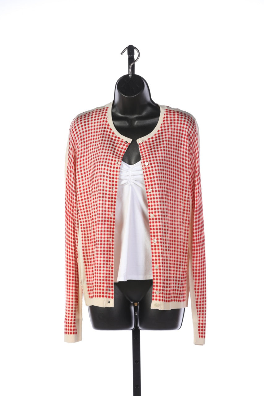 Dolce & Gabbana Silk Red + Cream Plaid Button Down Cardigan Sweater NWT