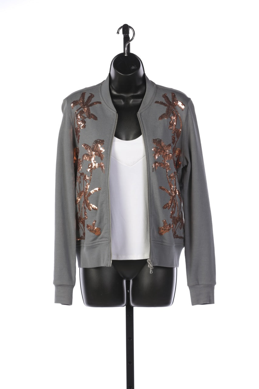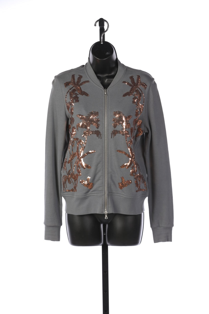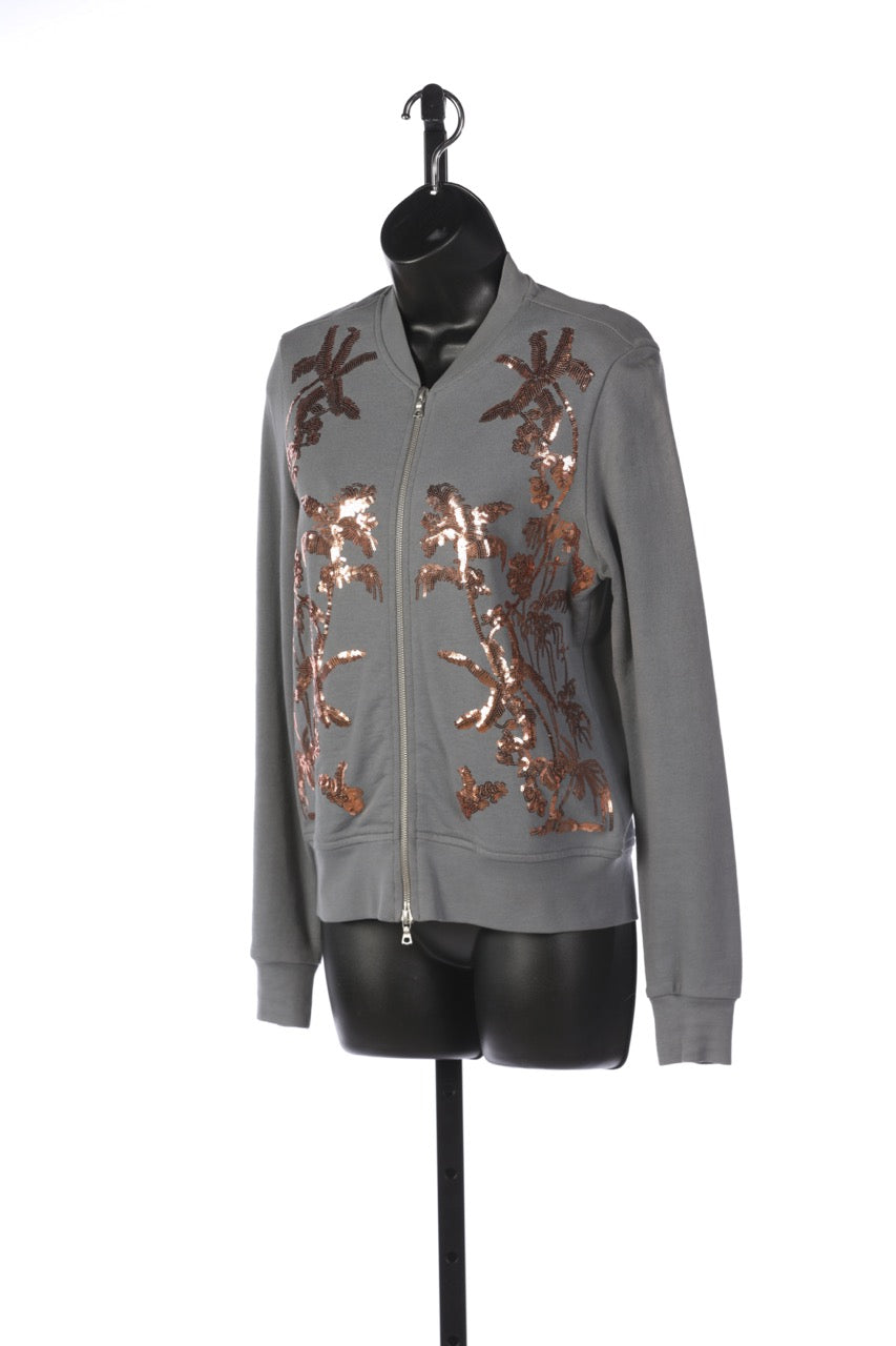 Dries Van Noten Grey with Copper Sequin Embellishments Crew Neck Zip Up Sweatshirt