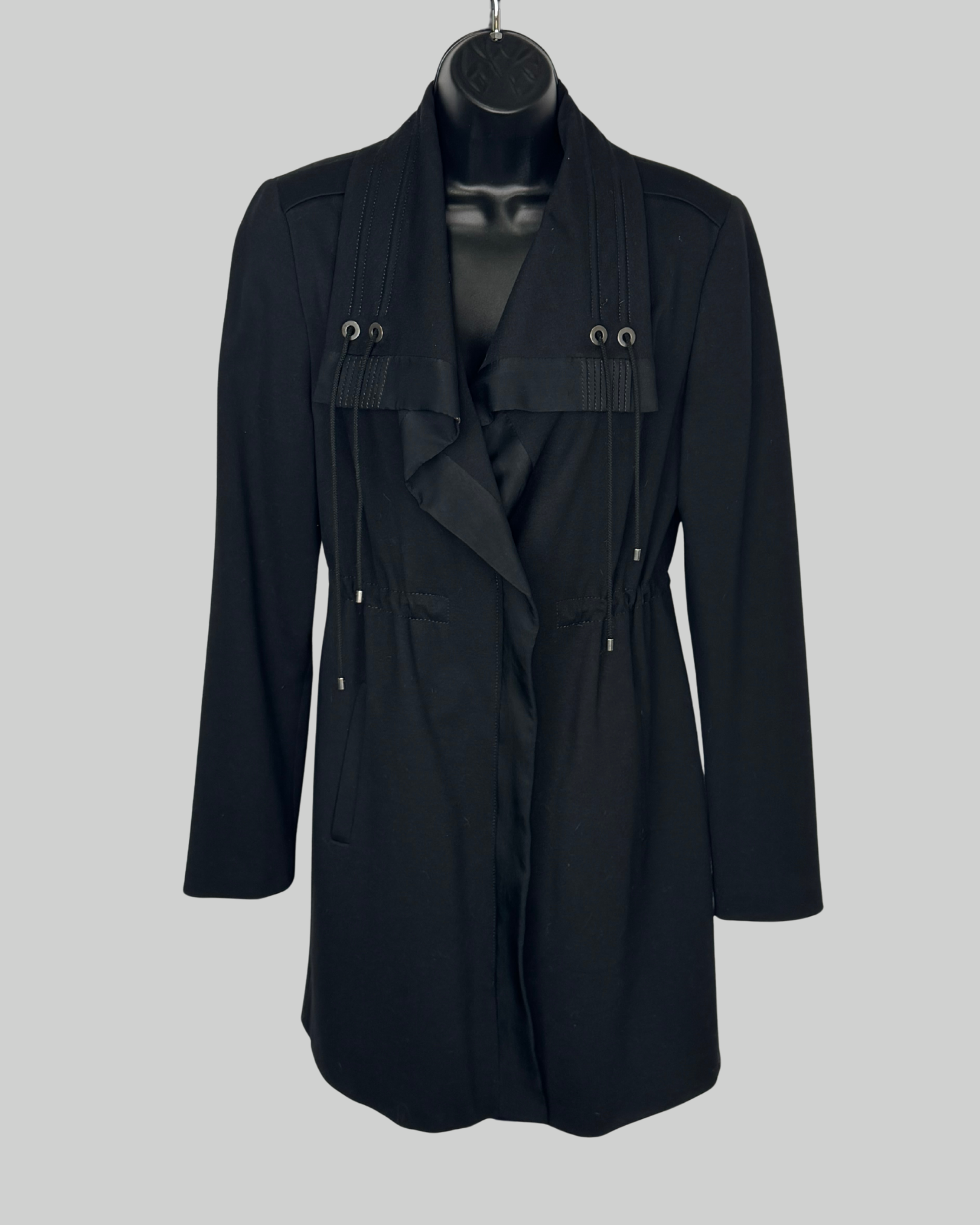 Elie Tahari Black Cinched Waist Multi Drawstring Zip Up Coat