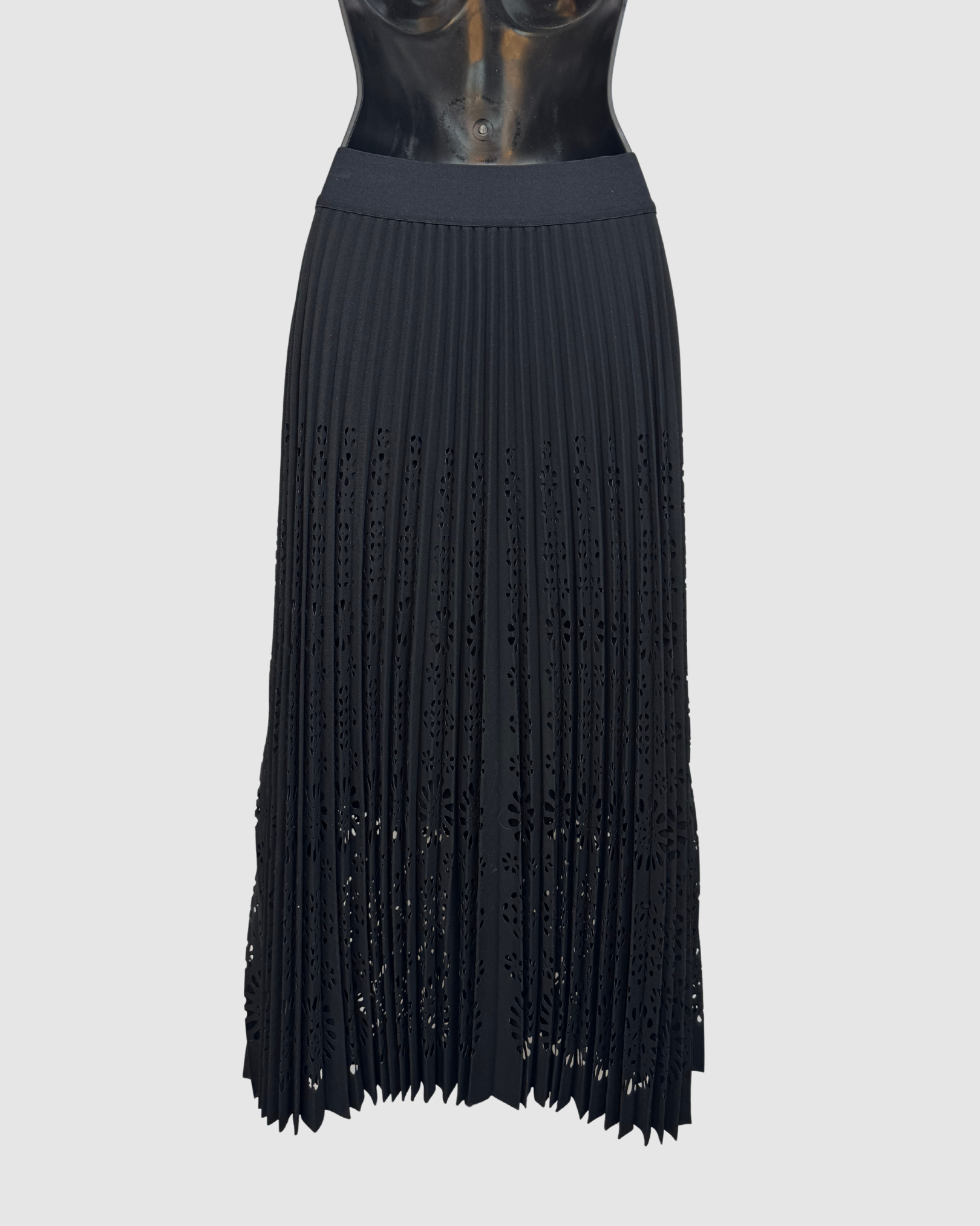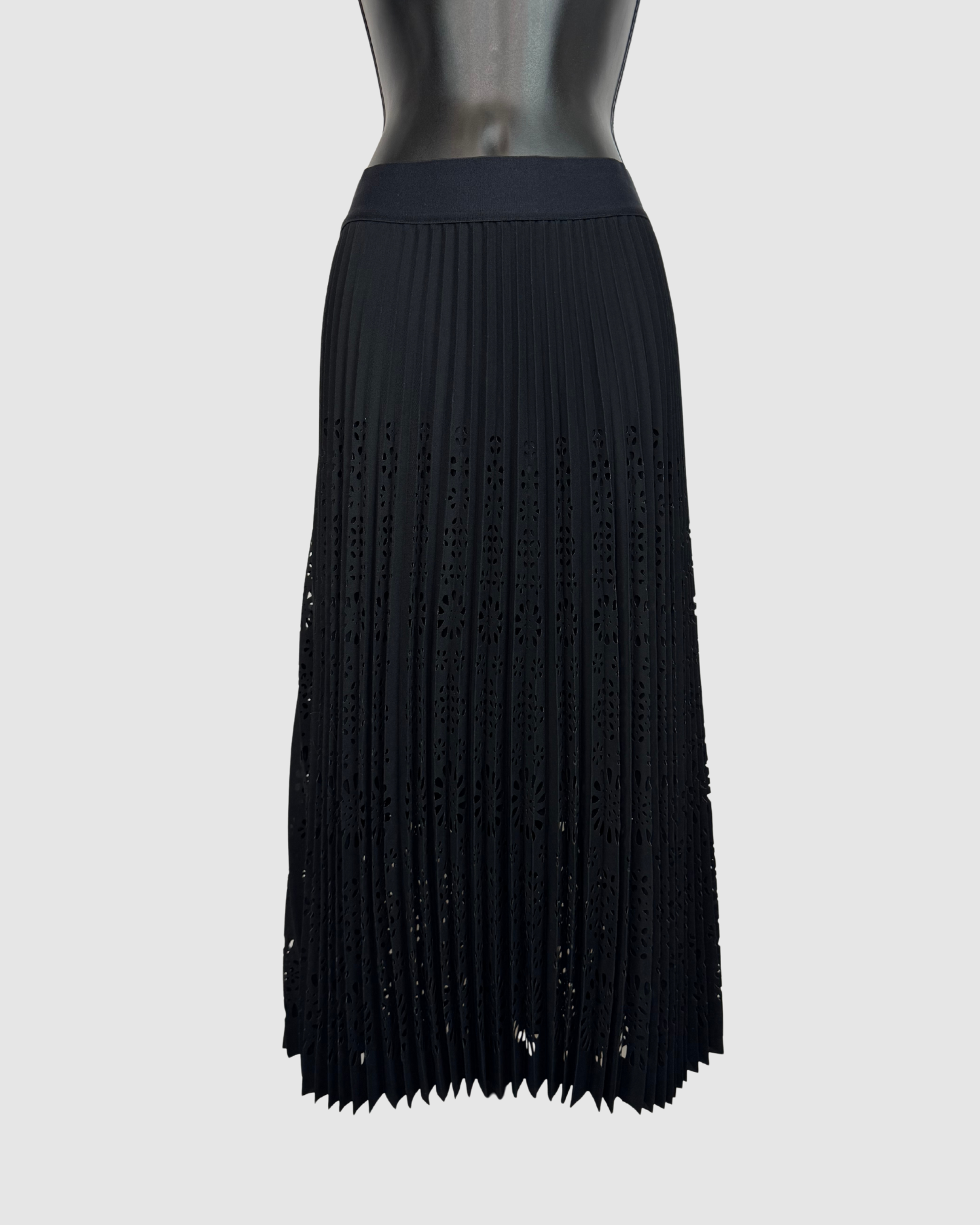 Elie Tahari Black Pleated Eyelet Midi Skirt NWT