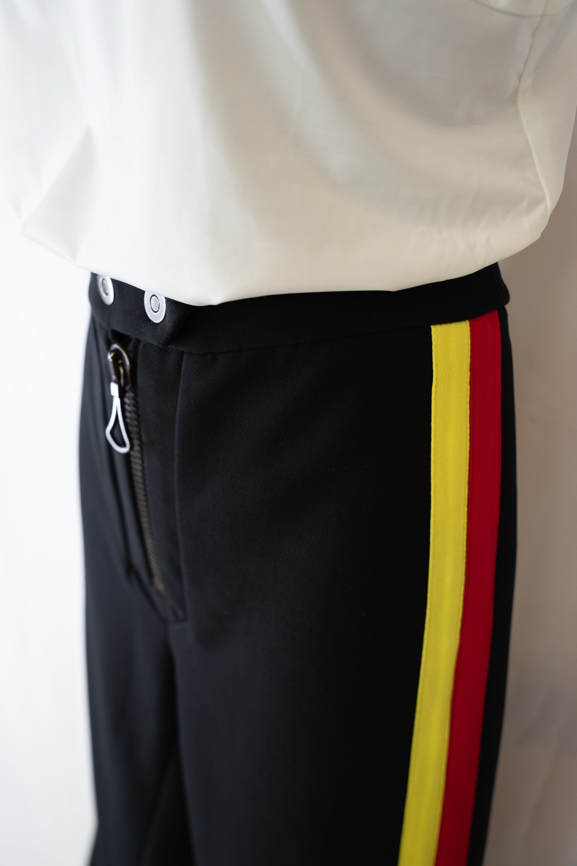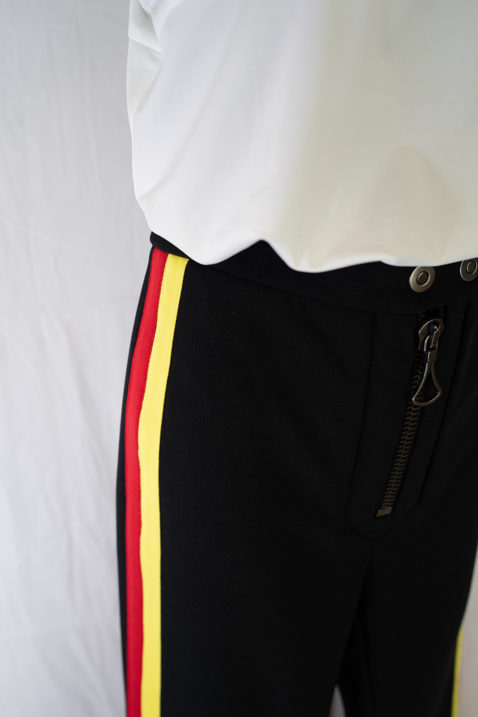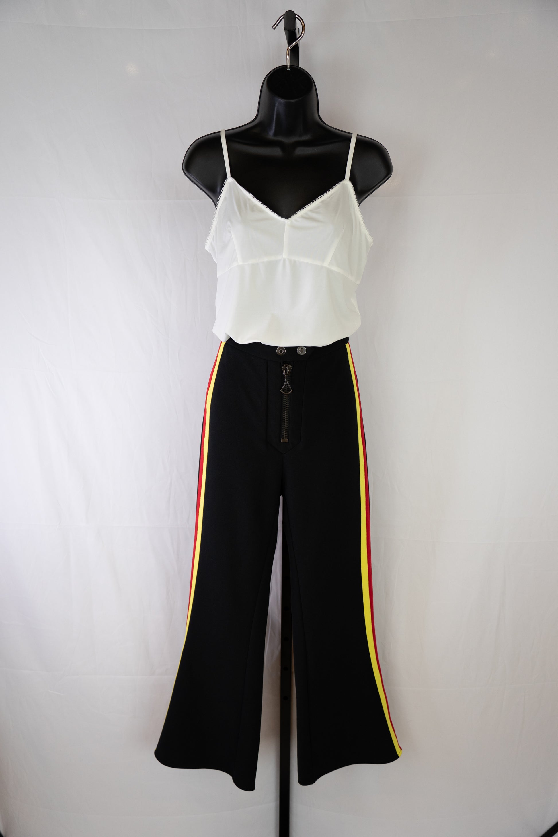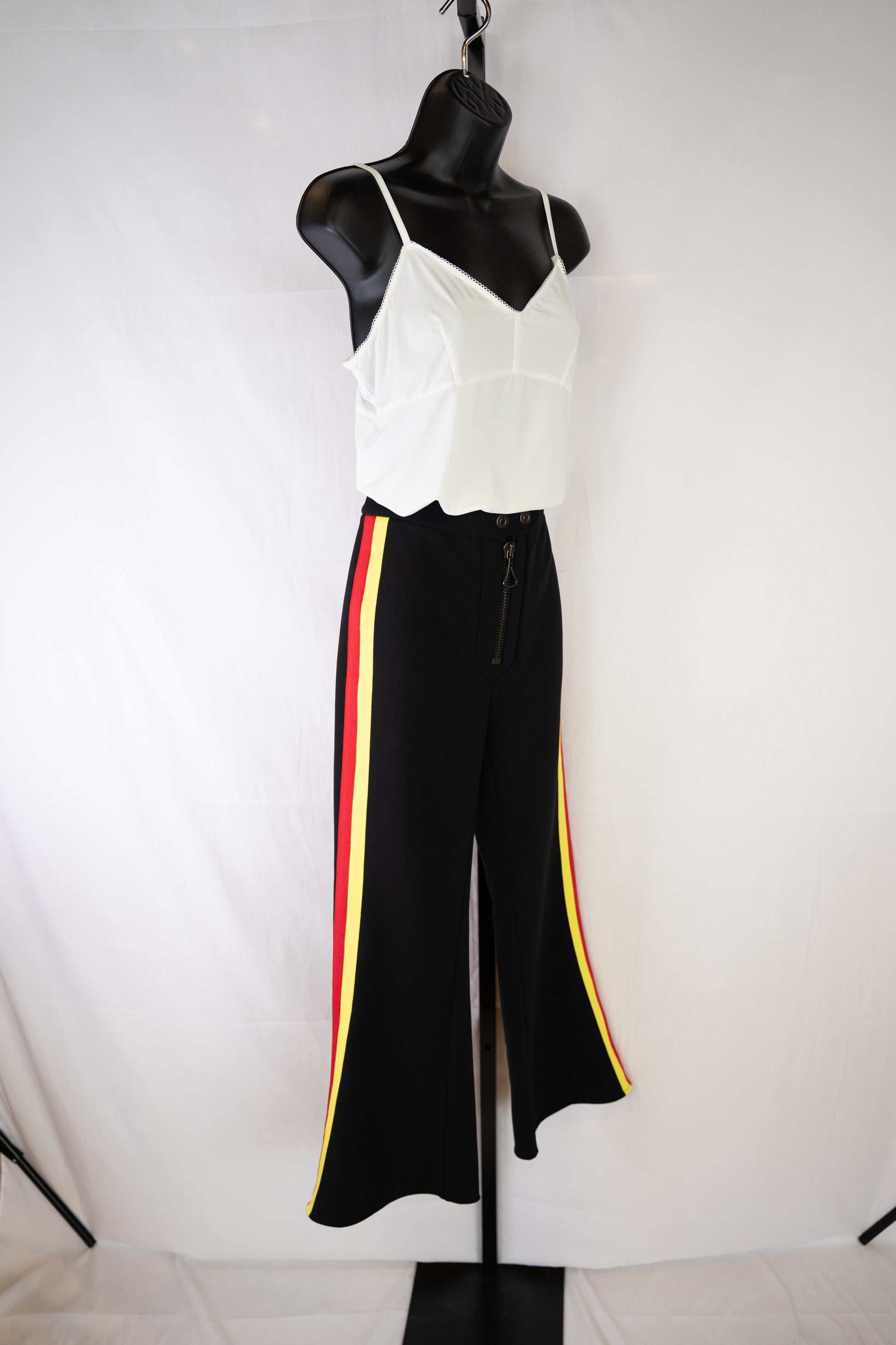 Ellery Black w Red/Yellow Stripe Flare Pants w Large Middle Front Zipper