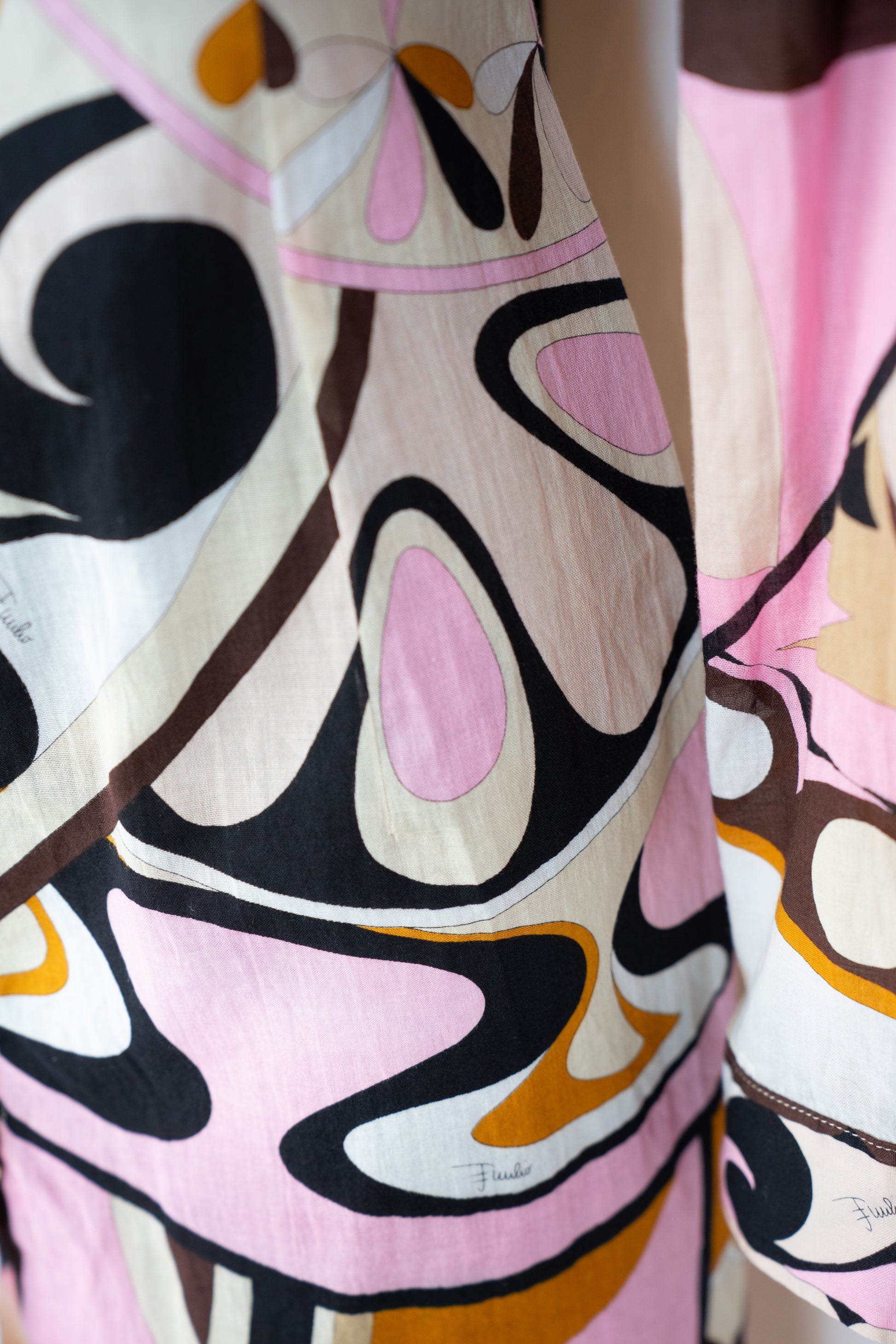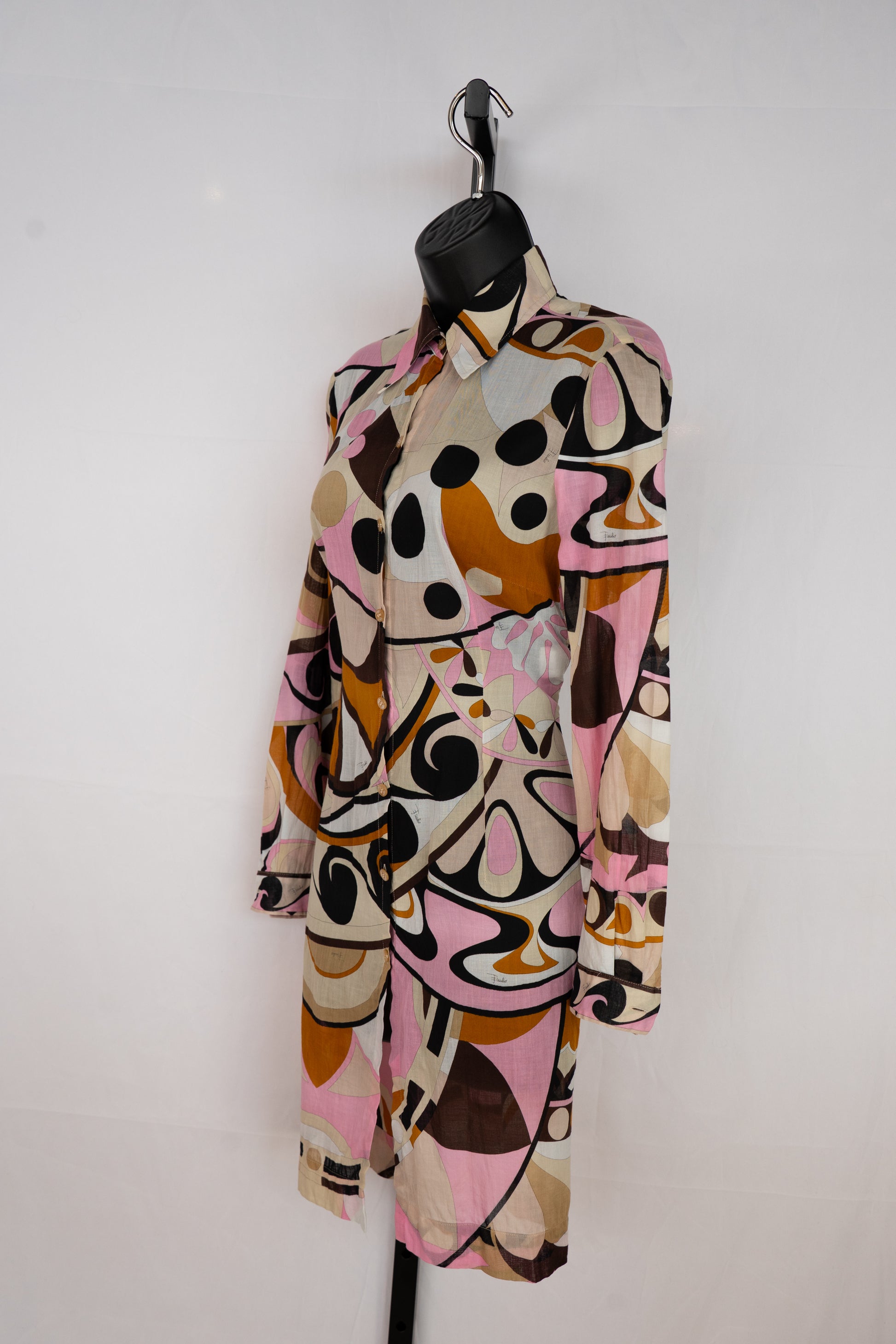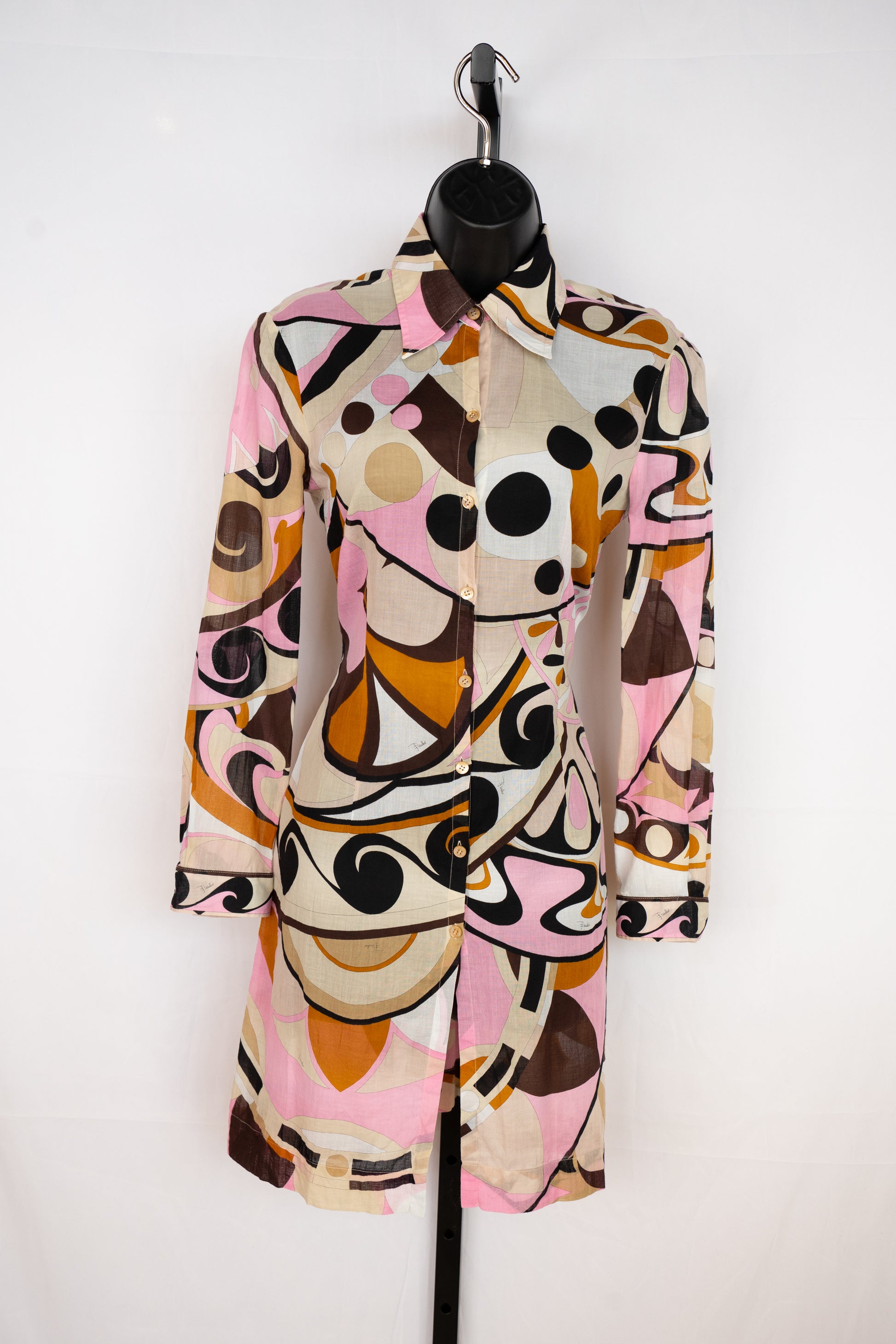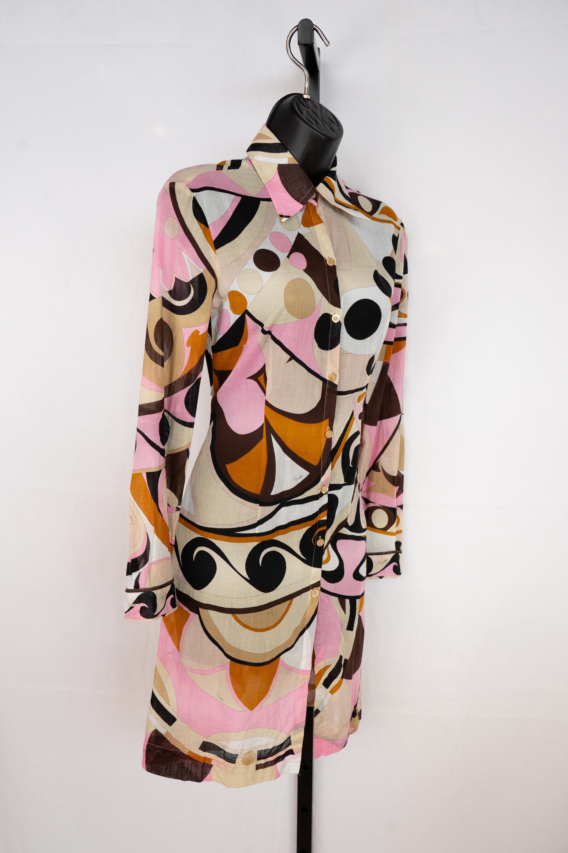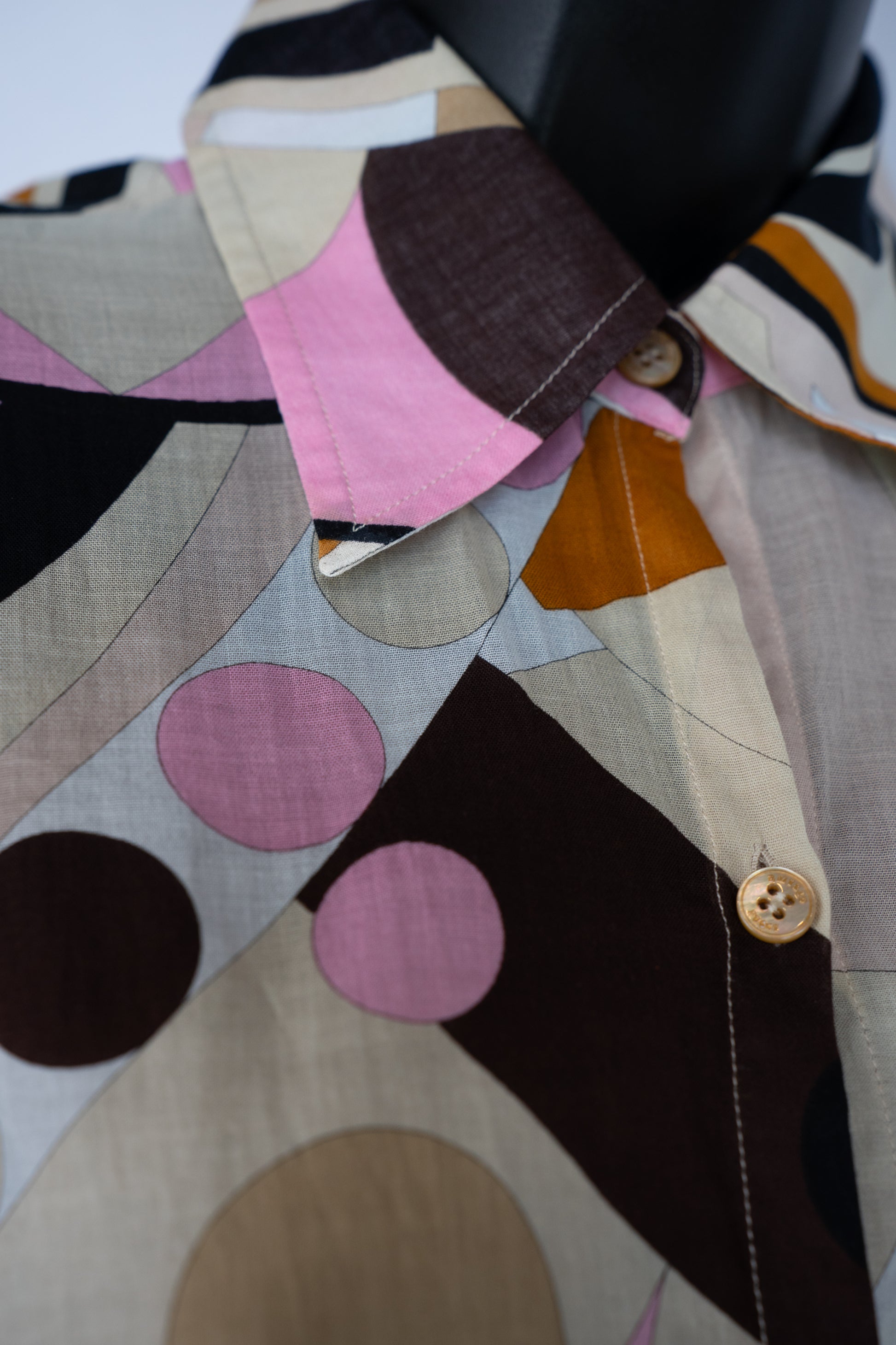 Emilio Pucci Multi Pink & Brown Abstract Print Long Sleeve Button Up Top
