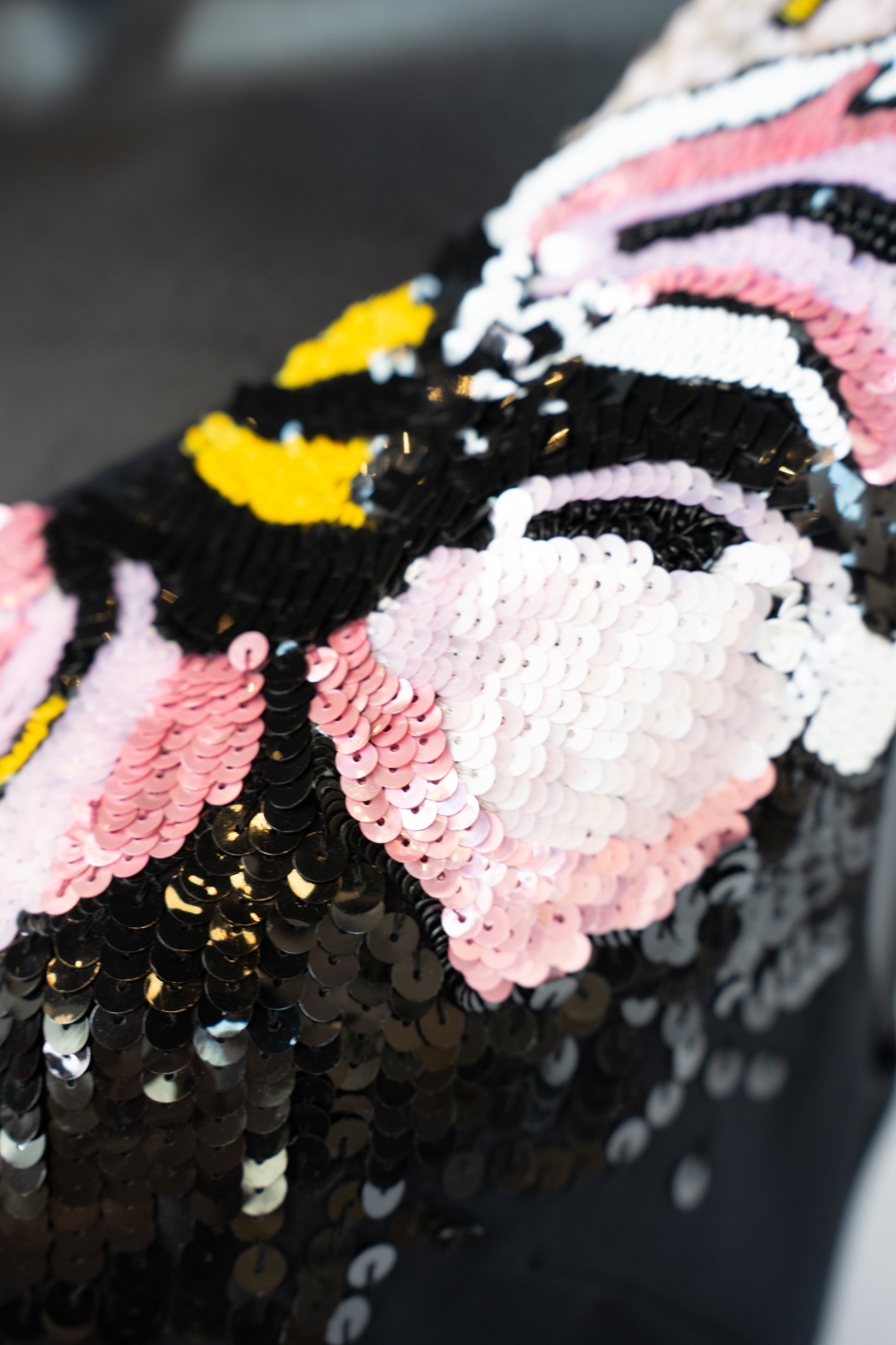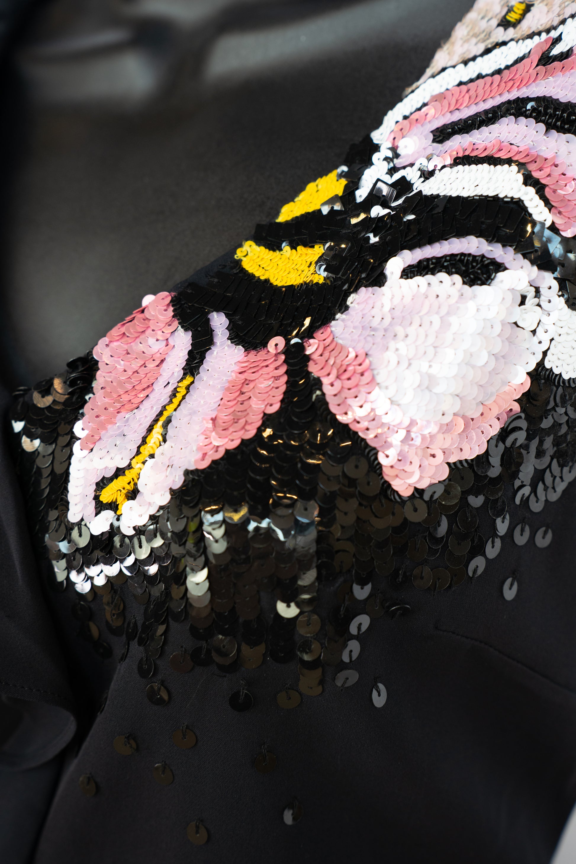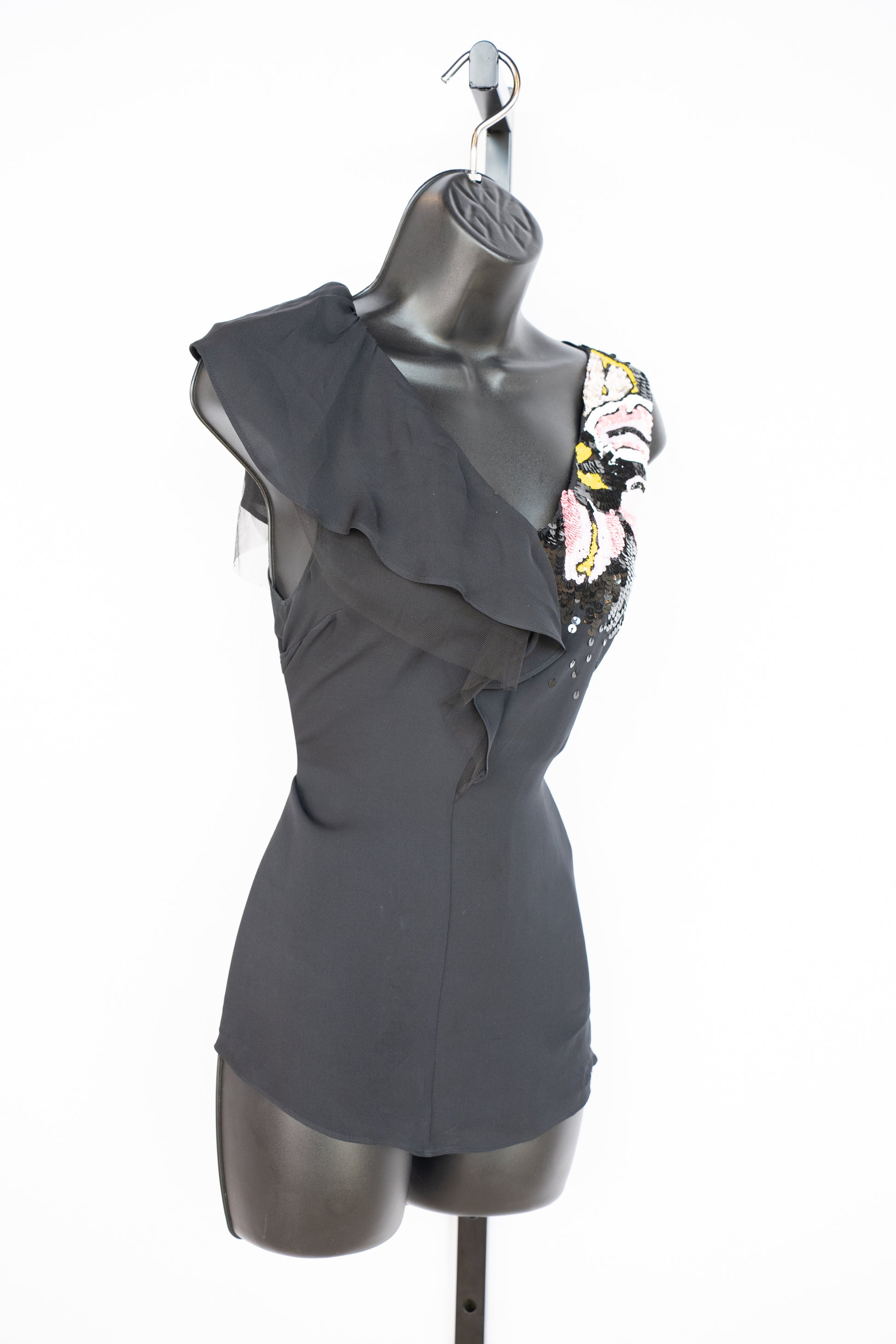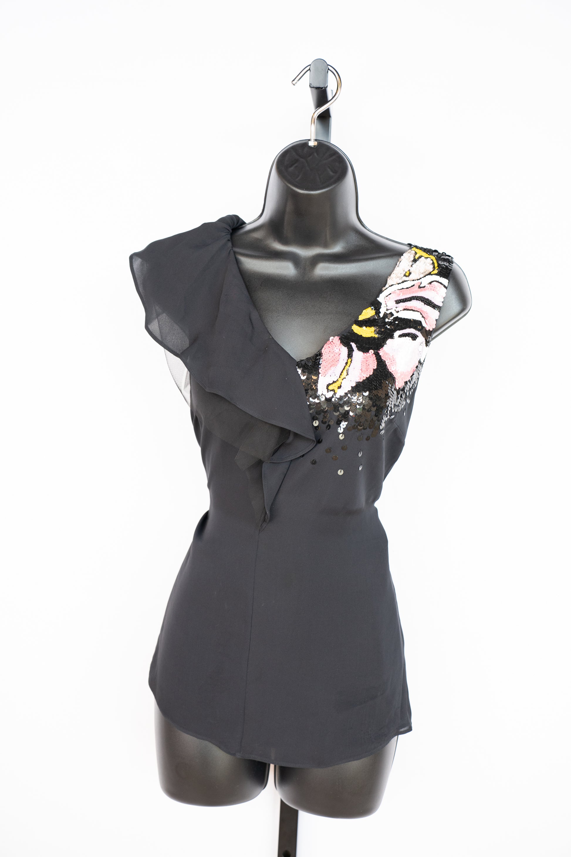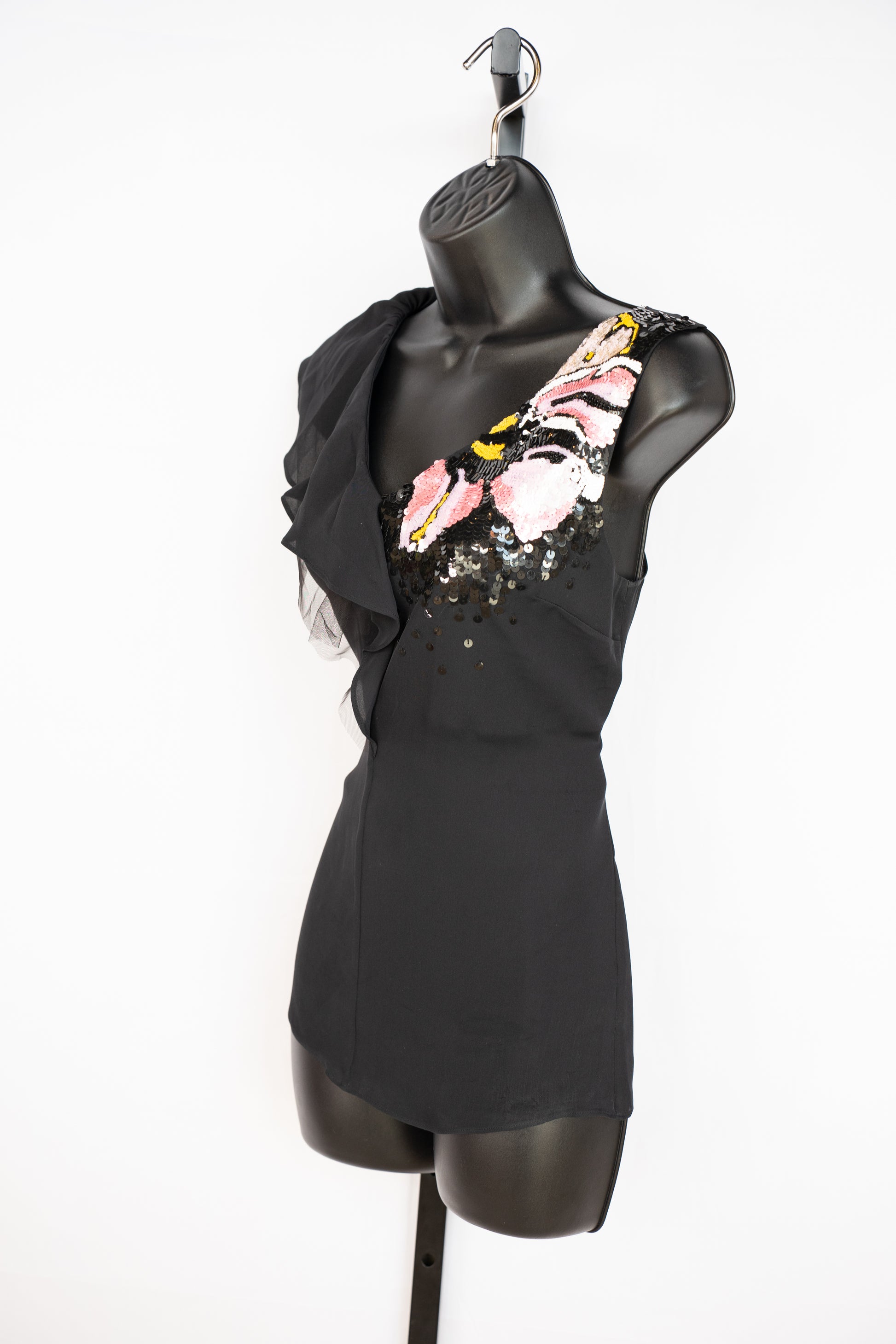 Emilio Pucci Silk Black Single Flutter Cap Sleeve Top w Pink & Black Sequin Detail