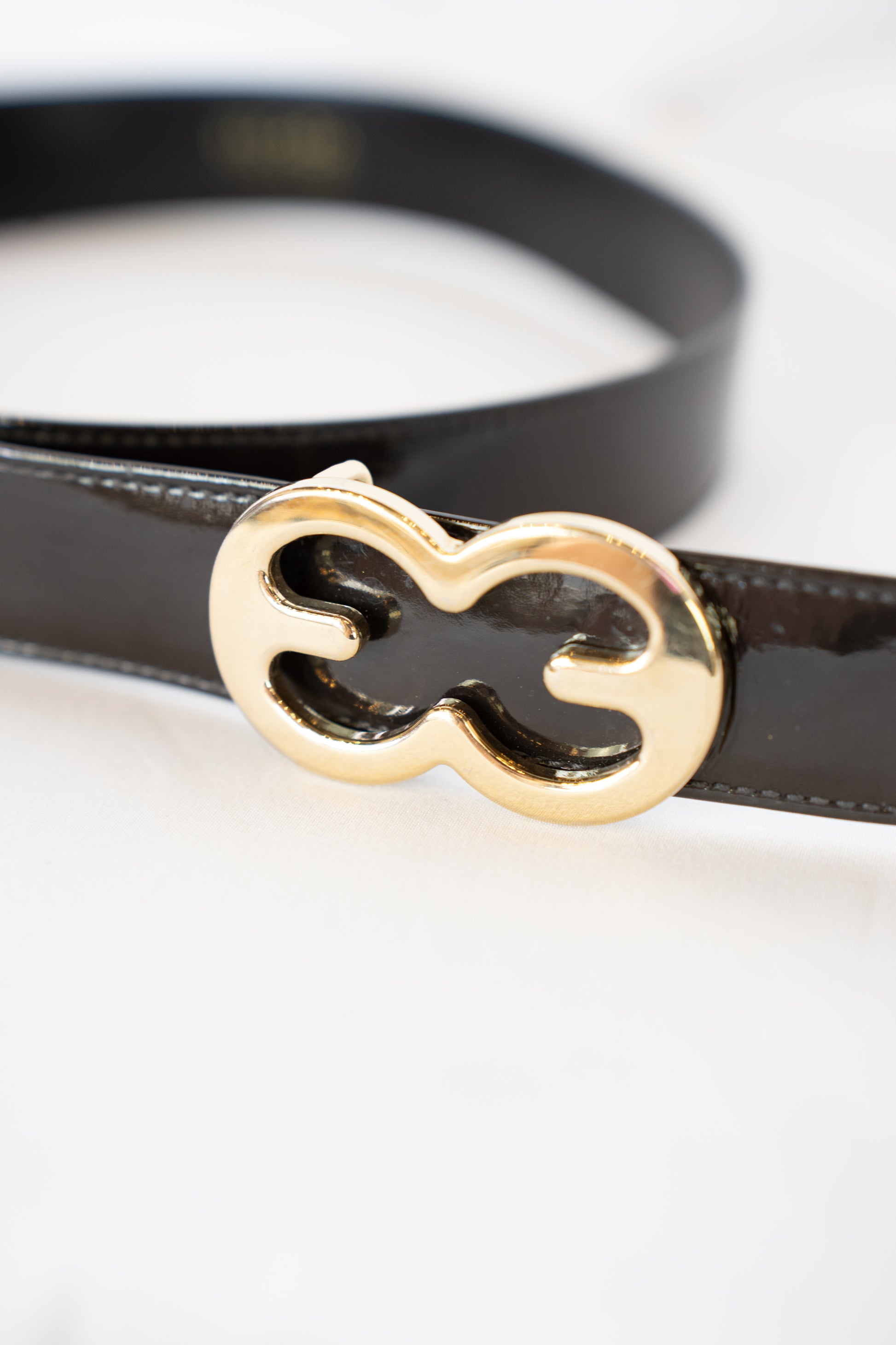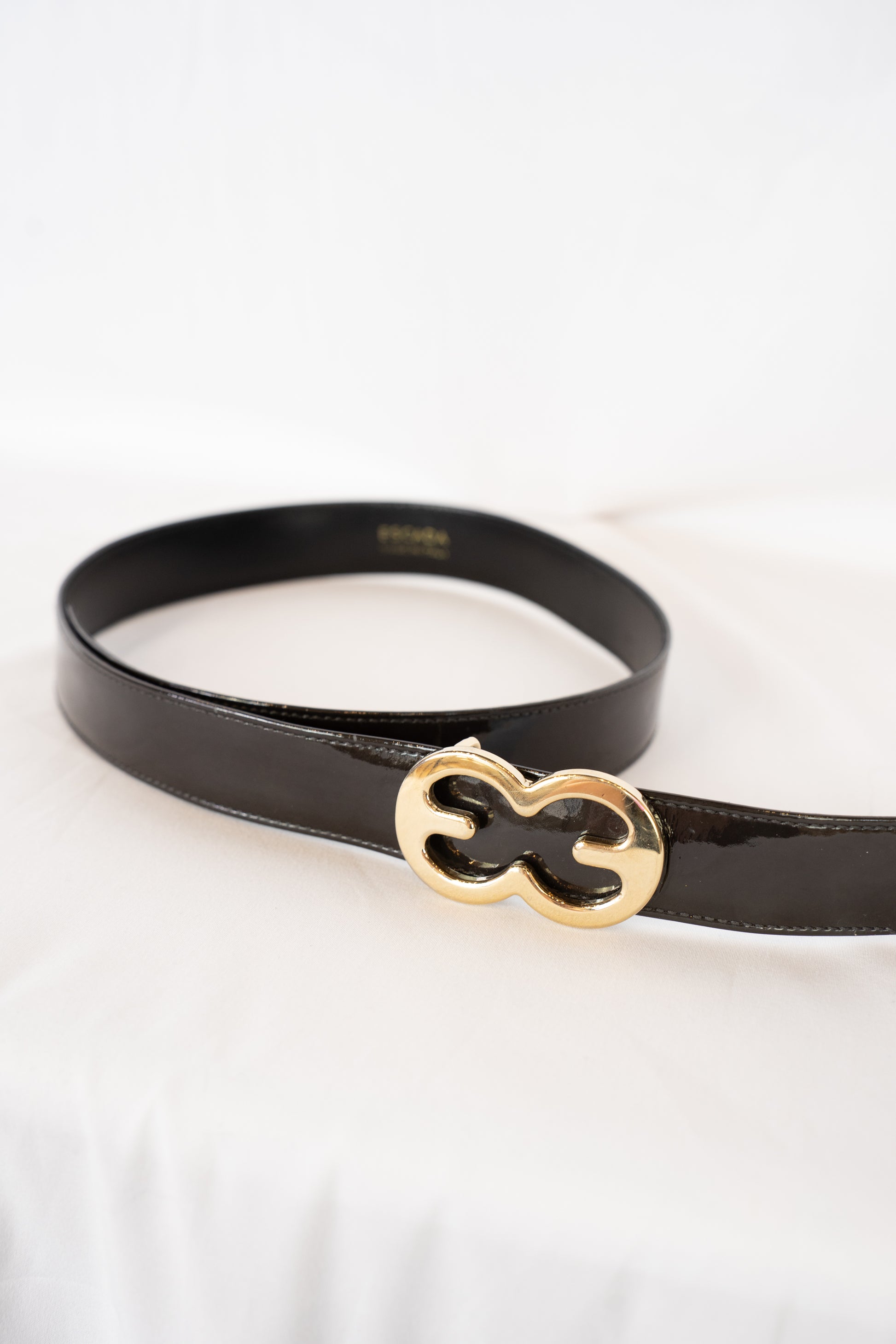 Escada Black Leather Belt w/ Gold Double E Buckle