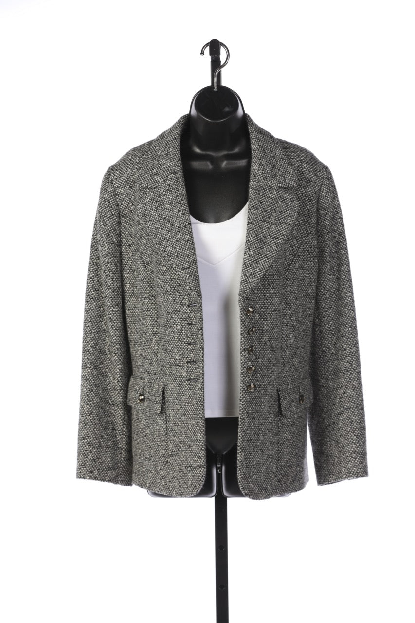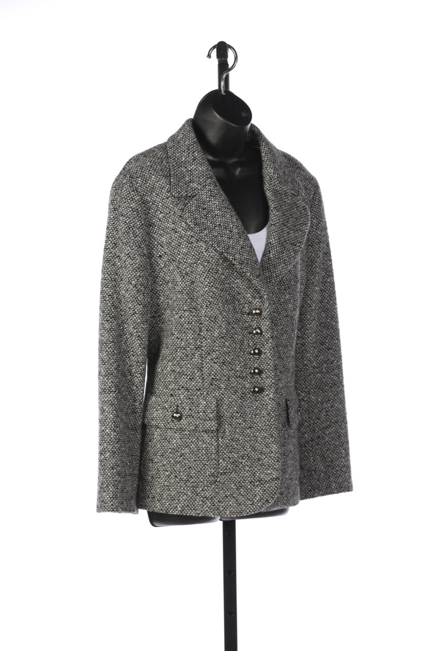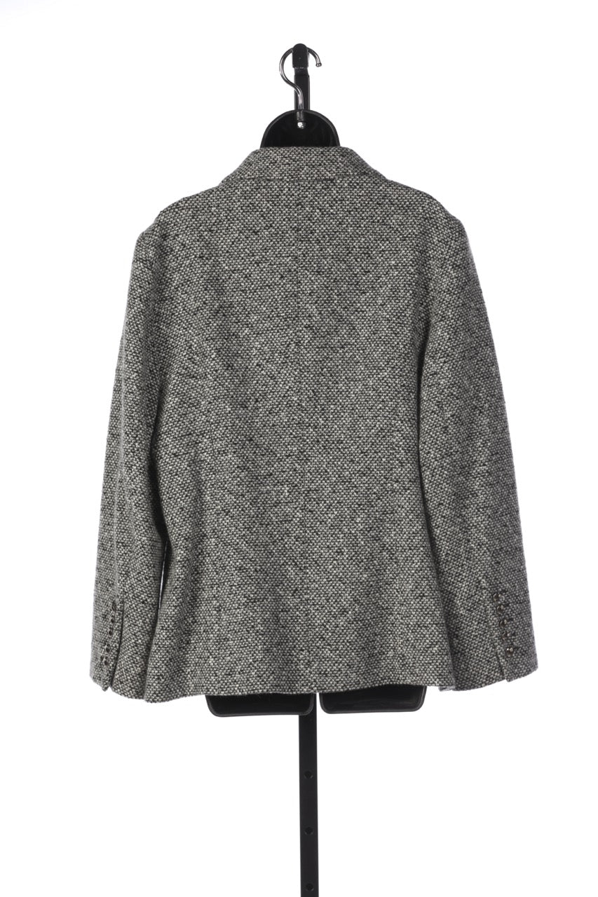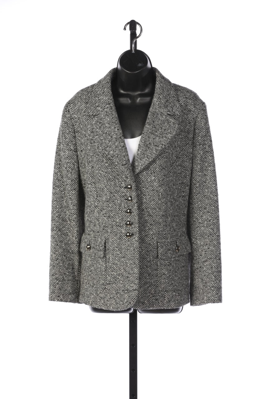 Escada Black & White Tweed Silver Button Up Blazer with 2 Front Pockets