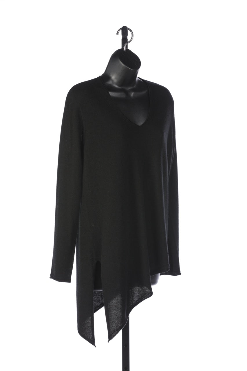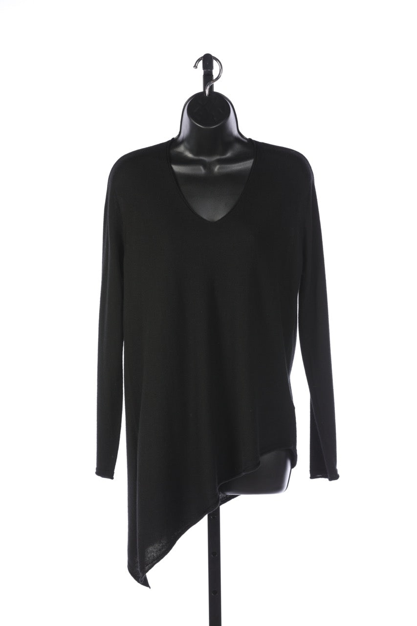 Escada Black Cashmere Long Sleeve V-Neck Asymmetrical Hem Sweater