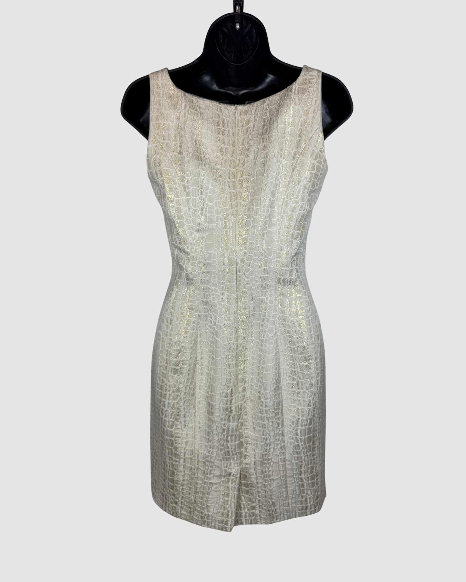 Escada Couture Silk Cream Gold Snake-print Square Neck Fitted Mini Dress