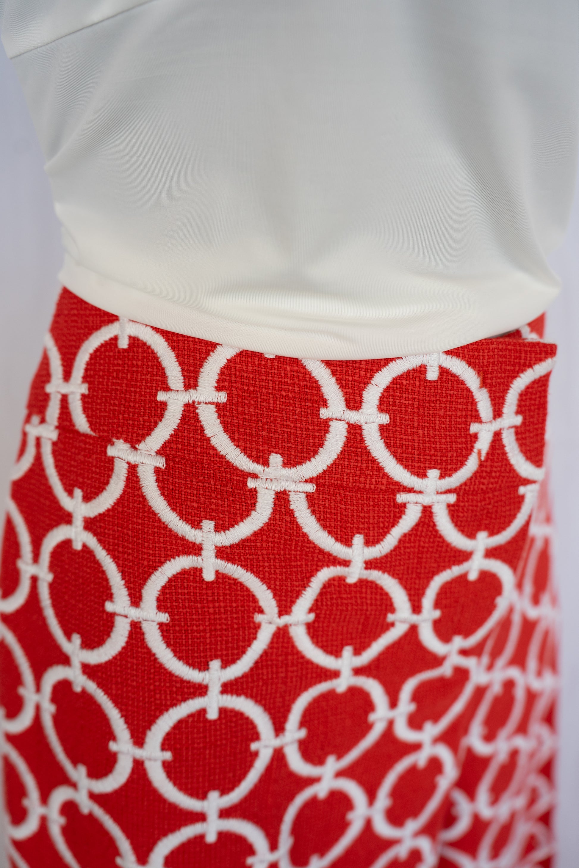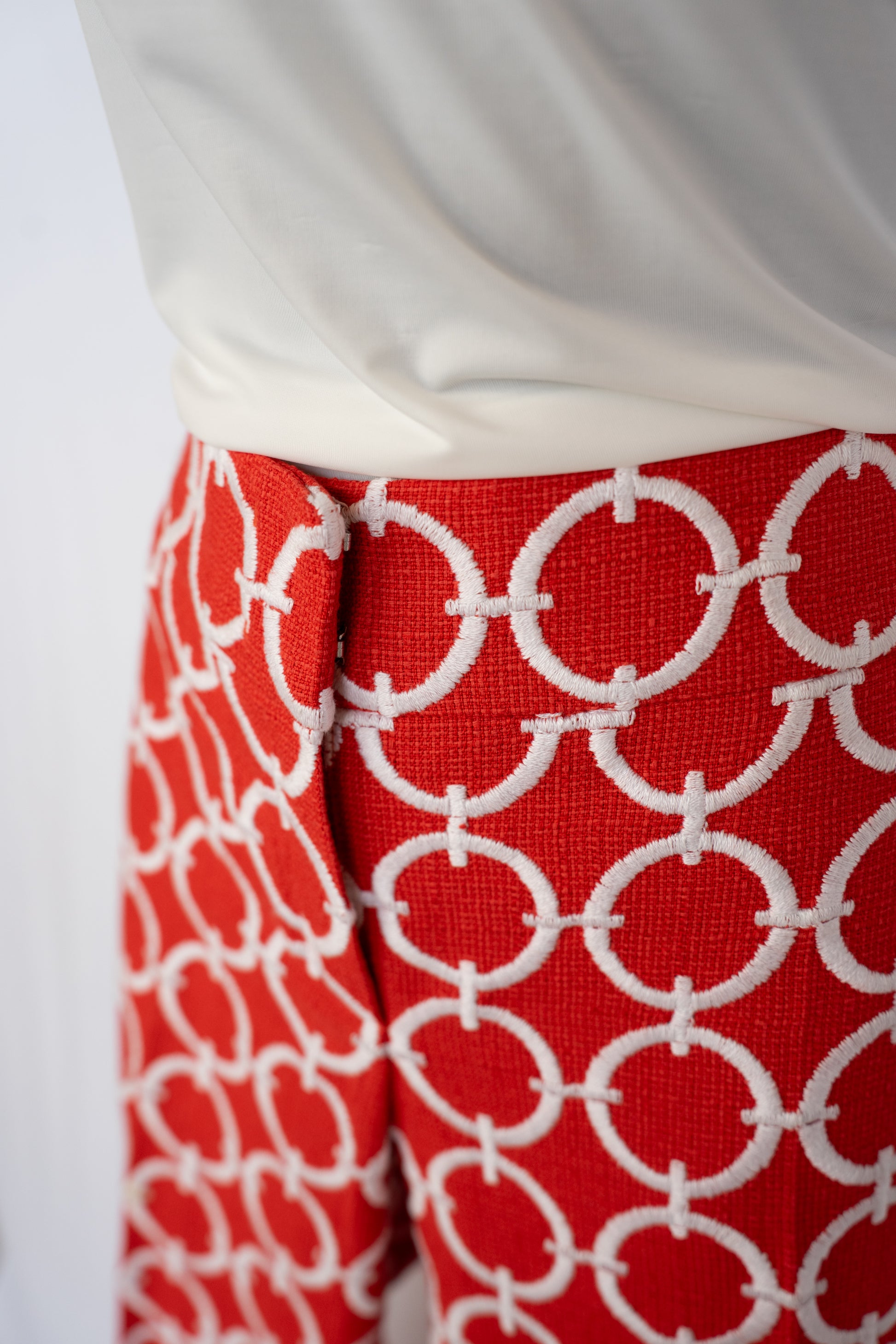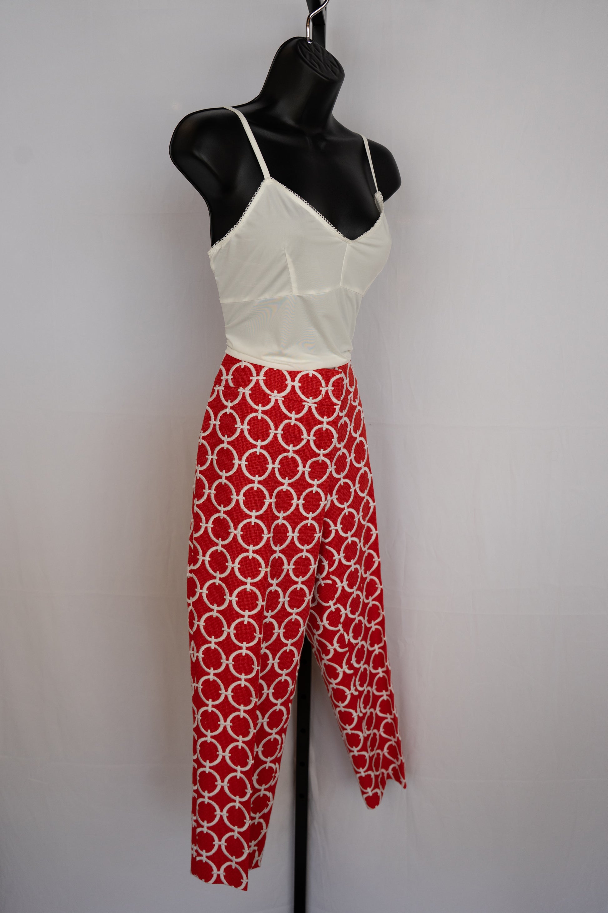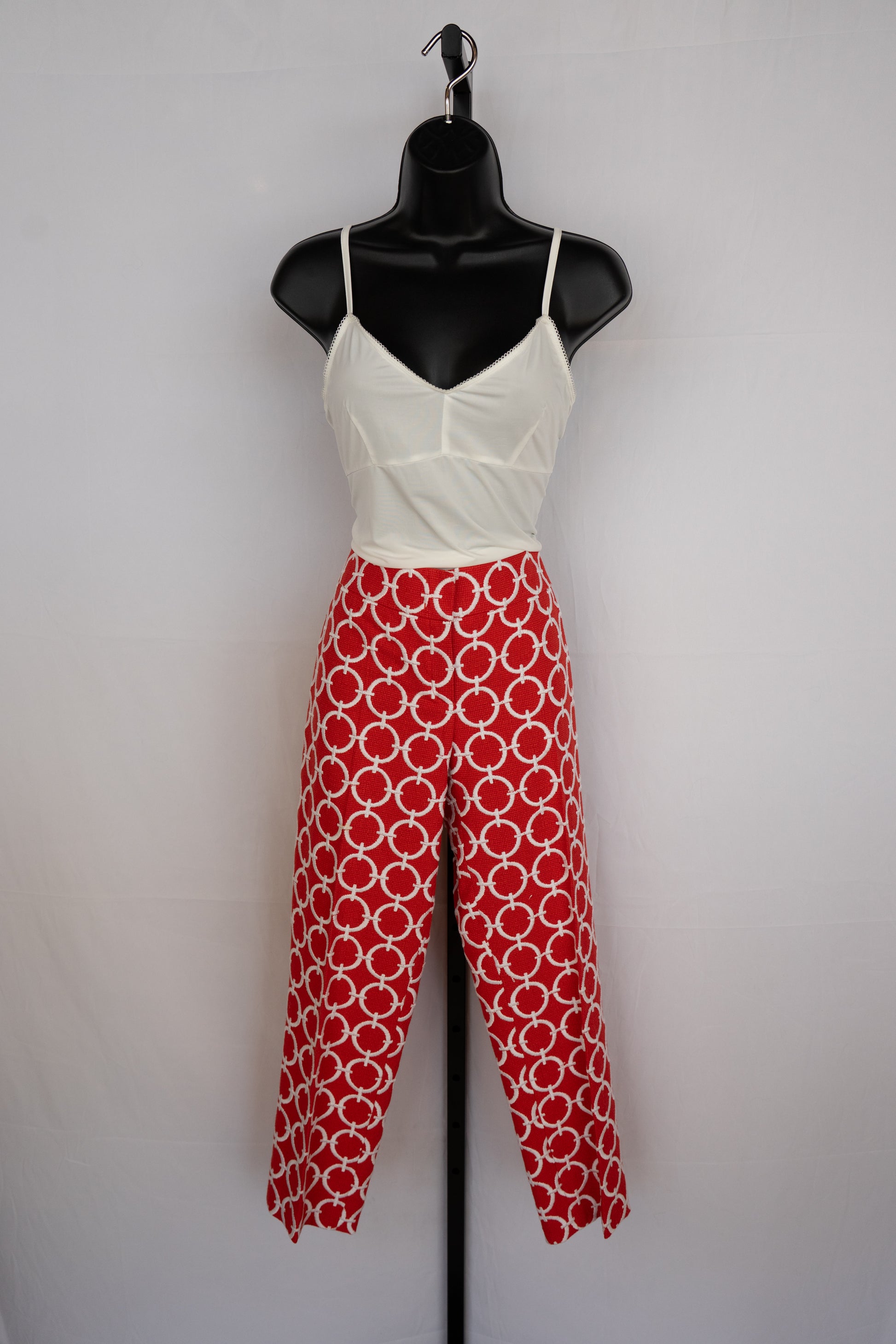 Escada Red Tweed Pants w/ White Connected Circle Detail Straight Leg Pants