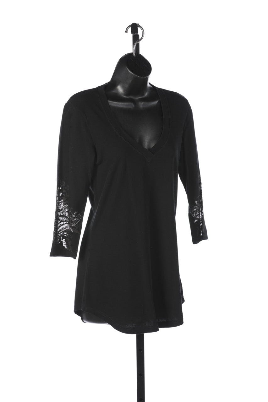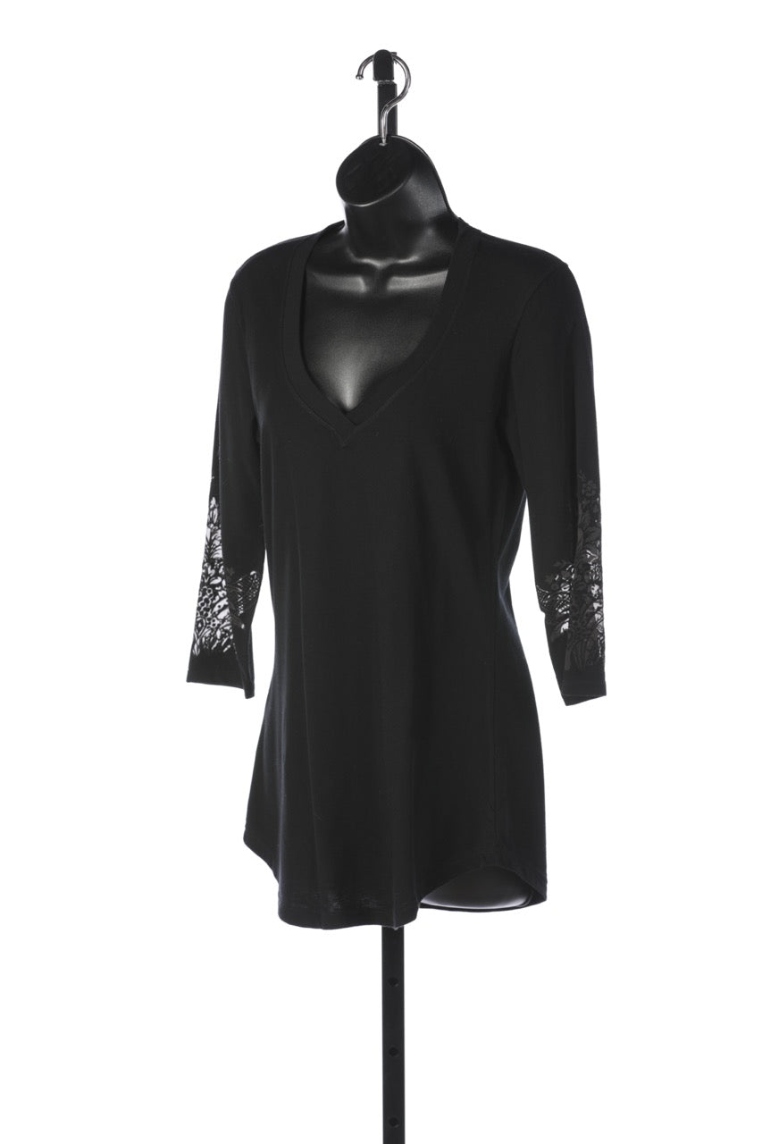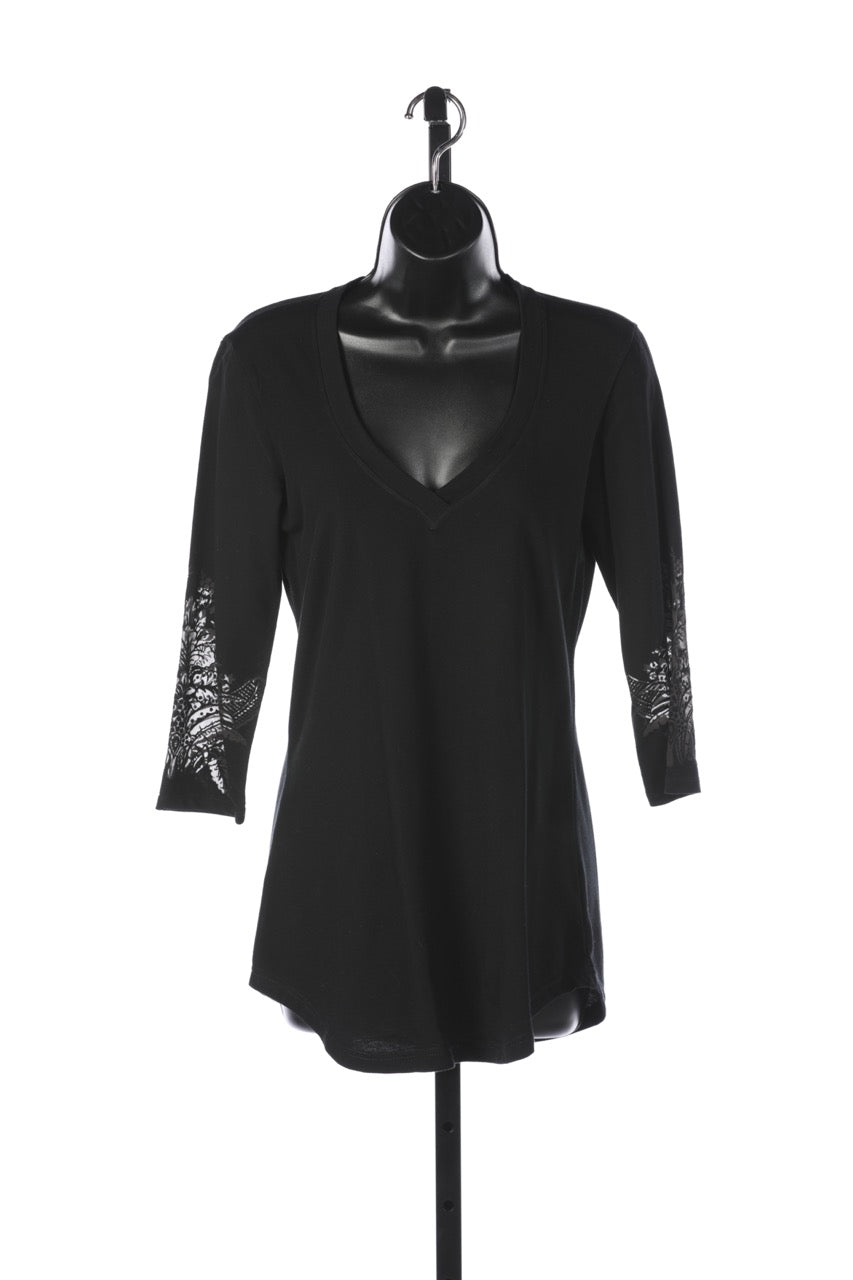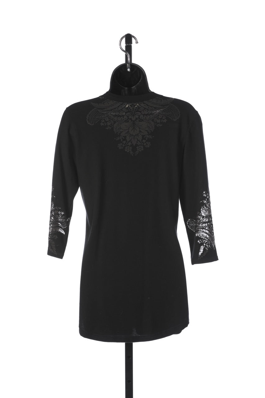 Etro Black 3/4 Sleeve T-Shirt w/ Sheer Floral Designs