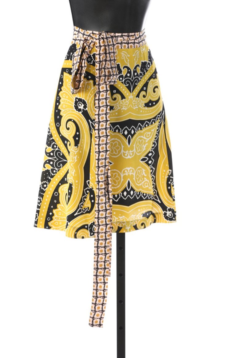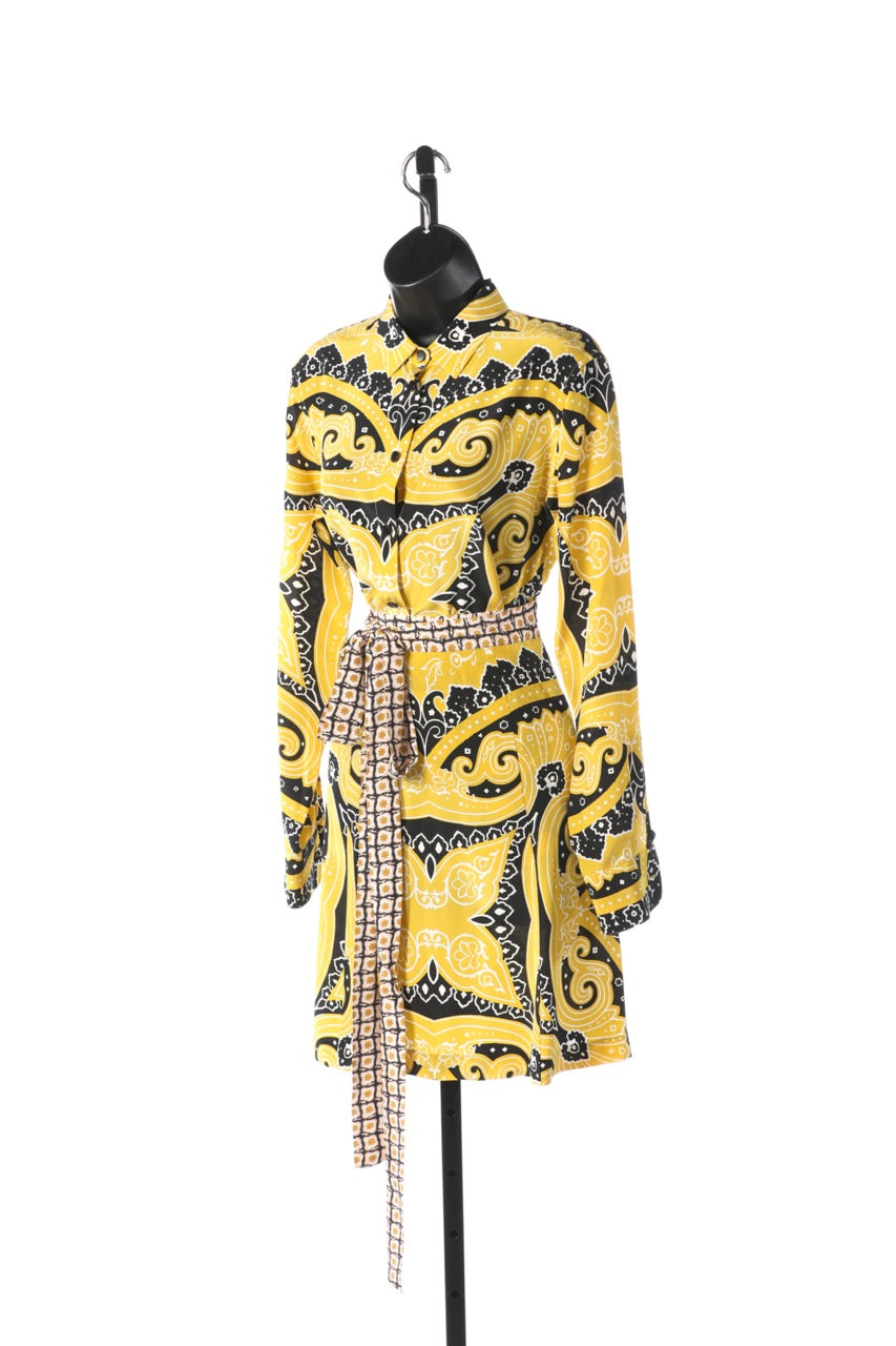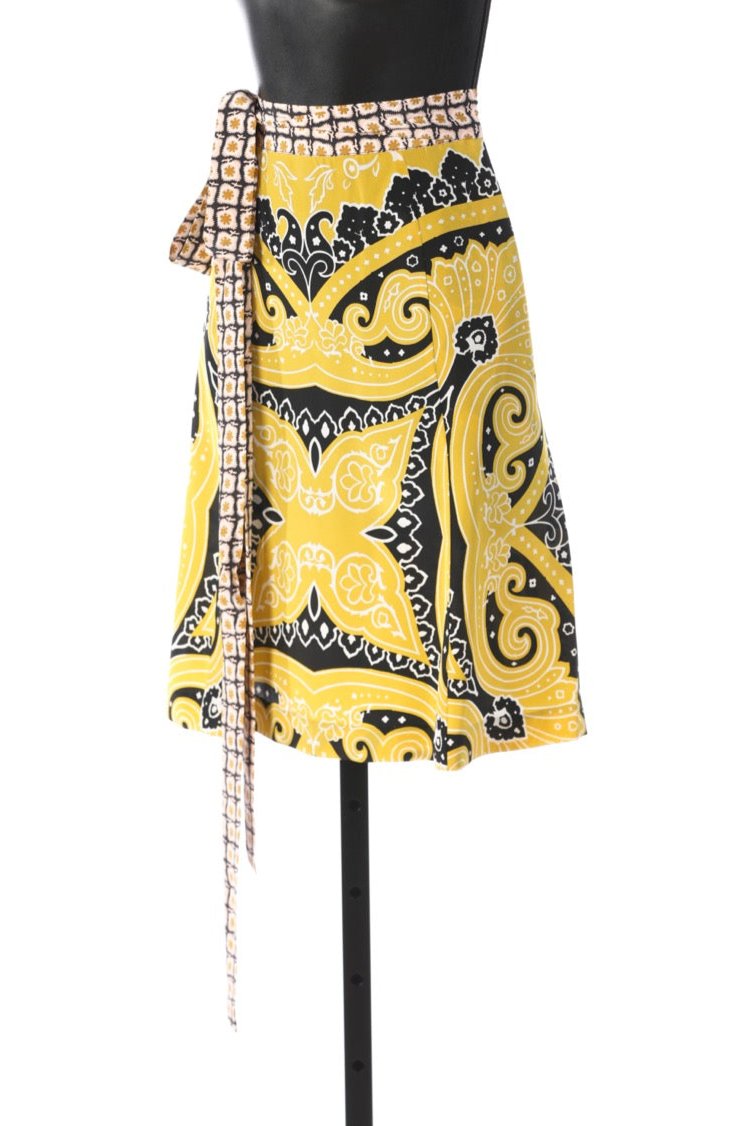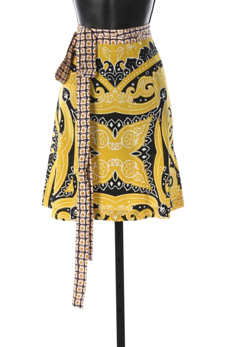 Etro Silk Yellow & Black Pattern Knee Length Skirt w/ Tie Detail (Part of Set) NWT