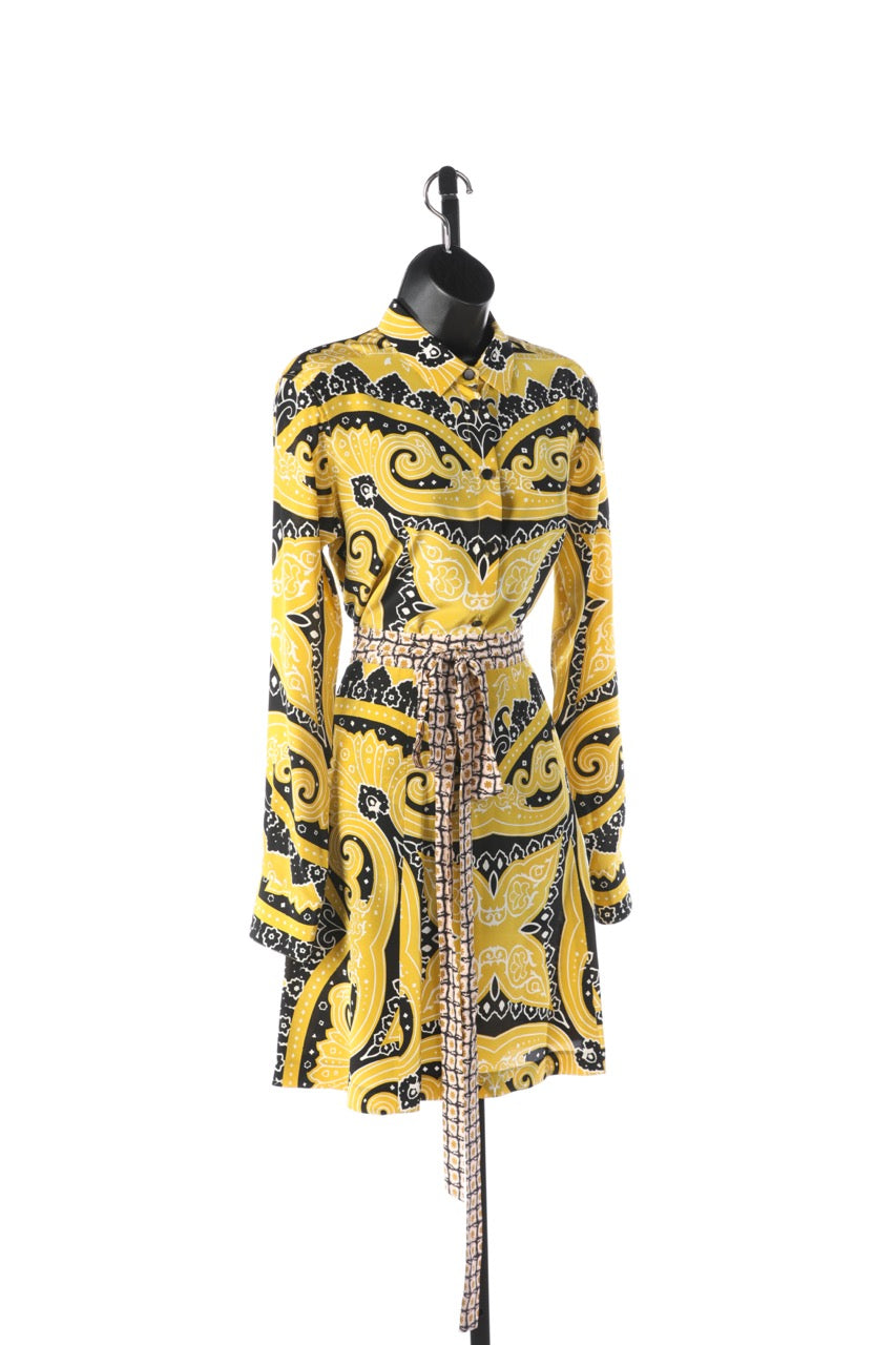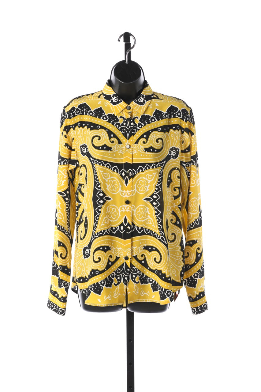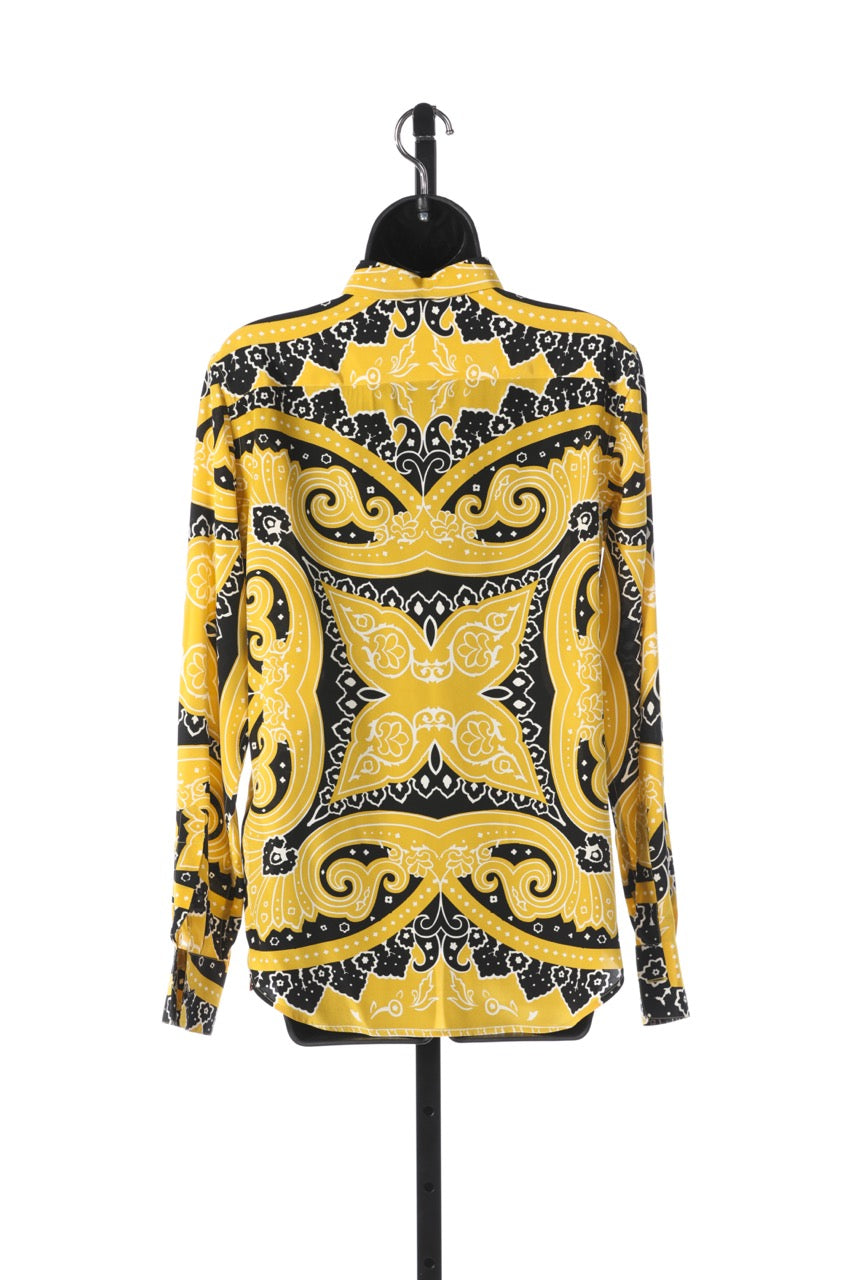 Etro Silk Yellow & Black Pattern Long Sleeve Button Down Blouse (Part of Set) NWT