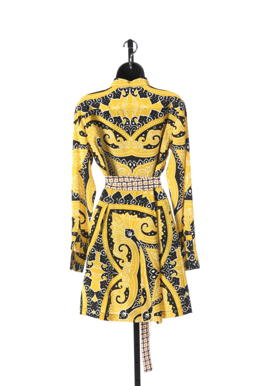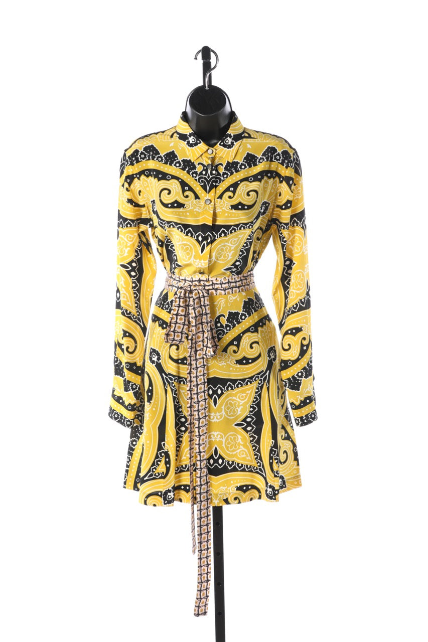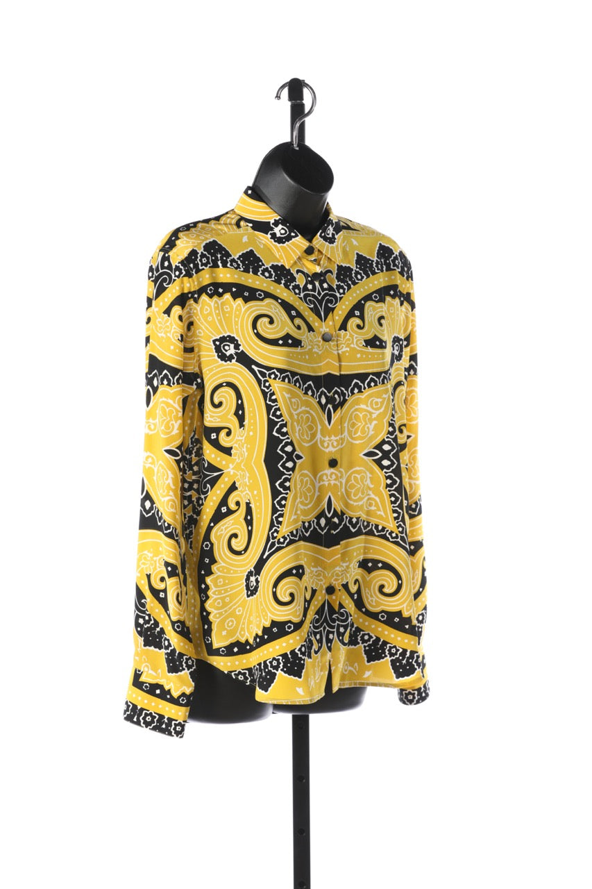 Etro Silk Yellow & Black Pattern Long Sleeve Button Down Blouse (Part of Set) NWT