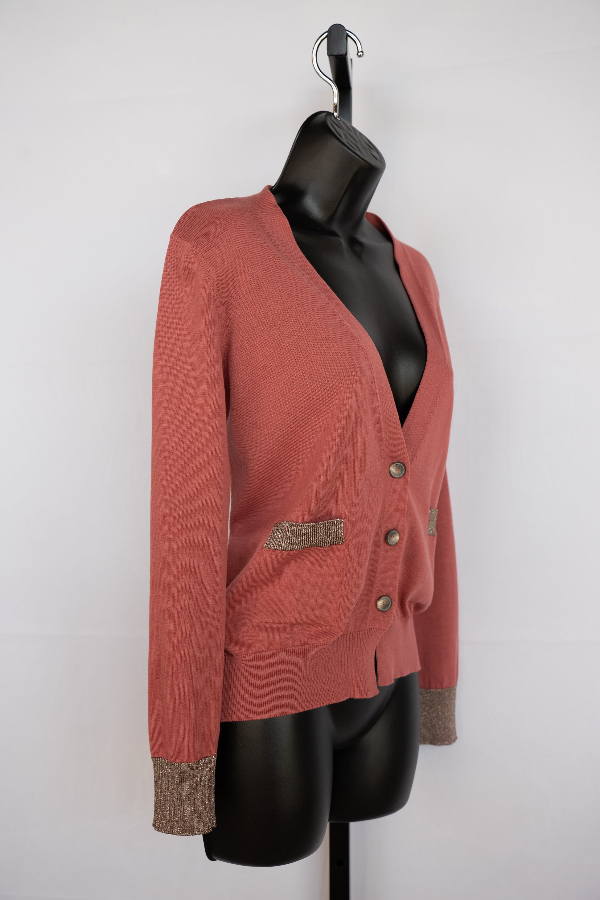 Fabiana Filippi Blush Cardigan Sweater w/ Sparkle Cuffs