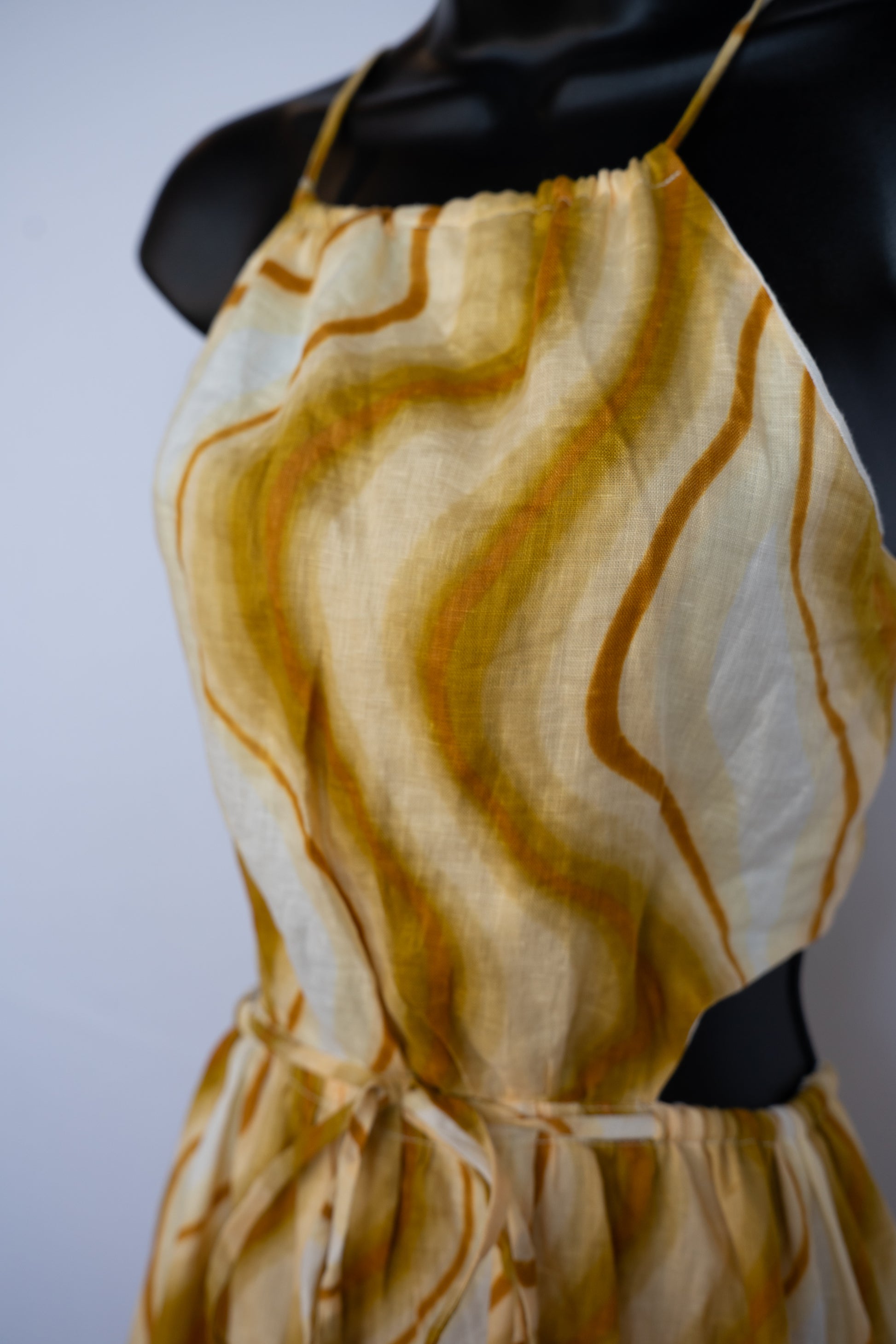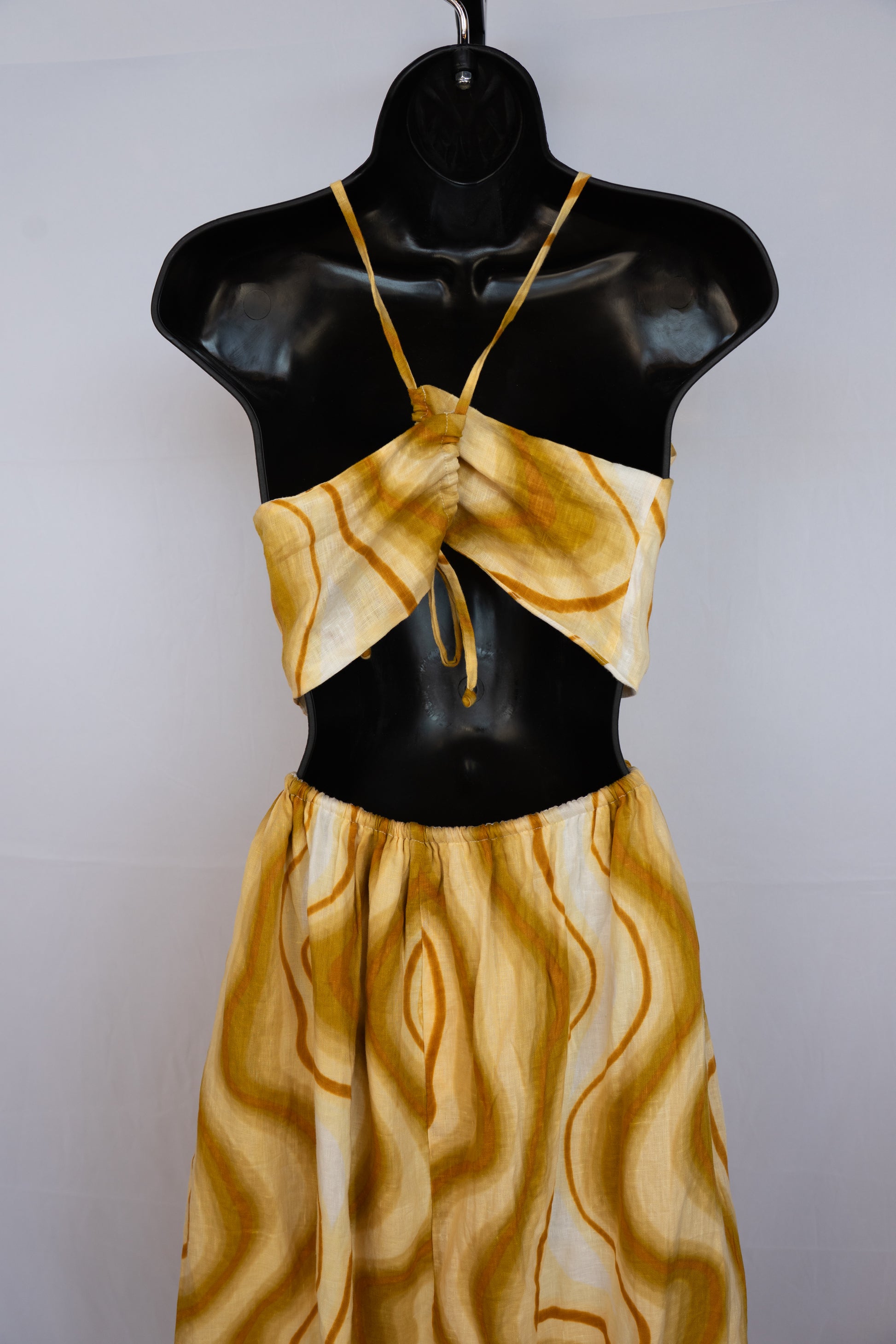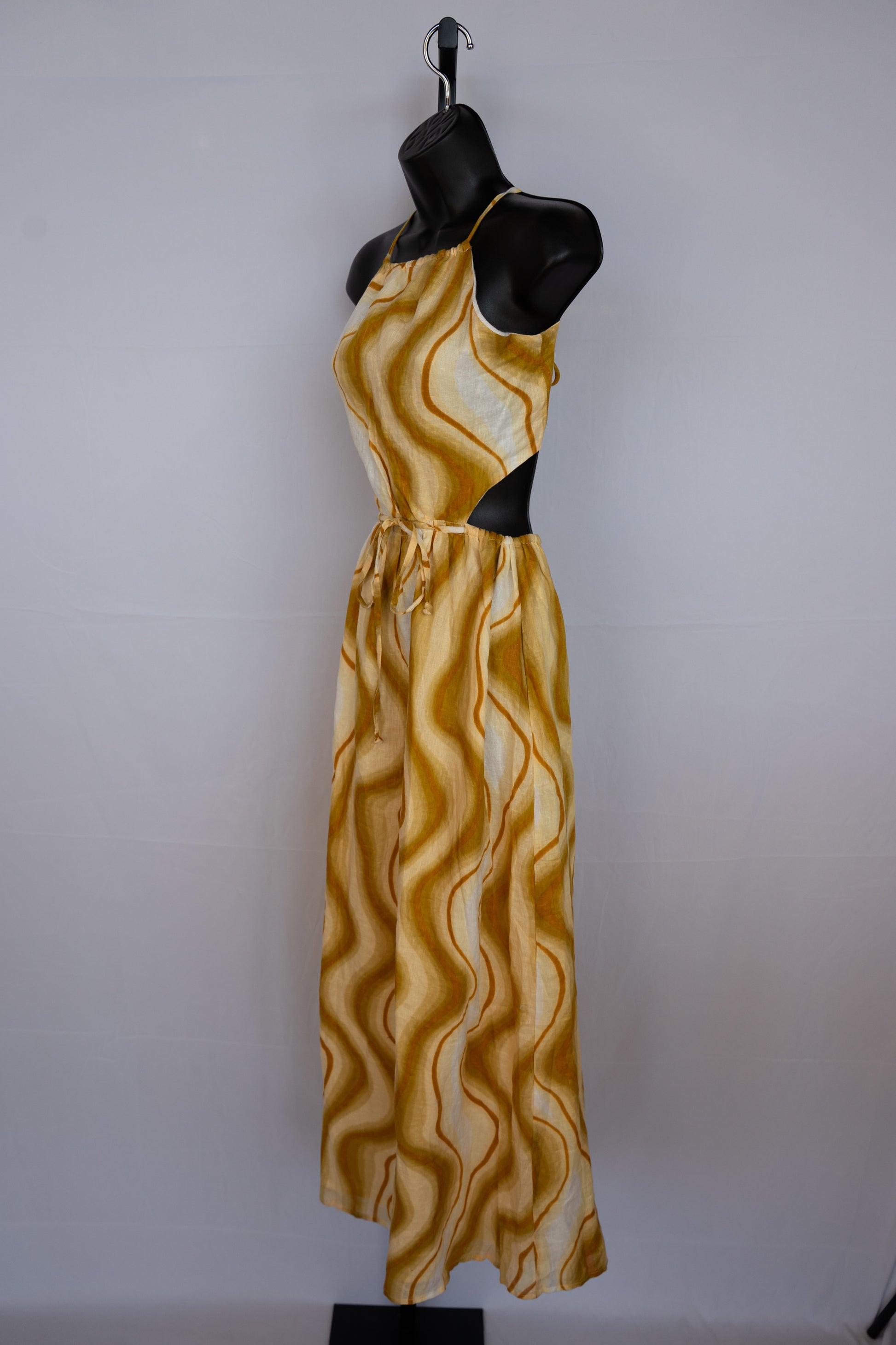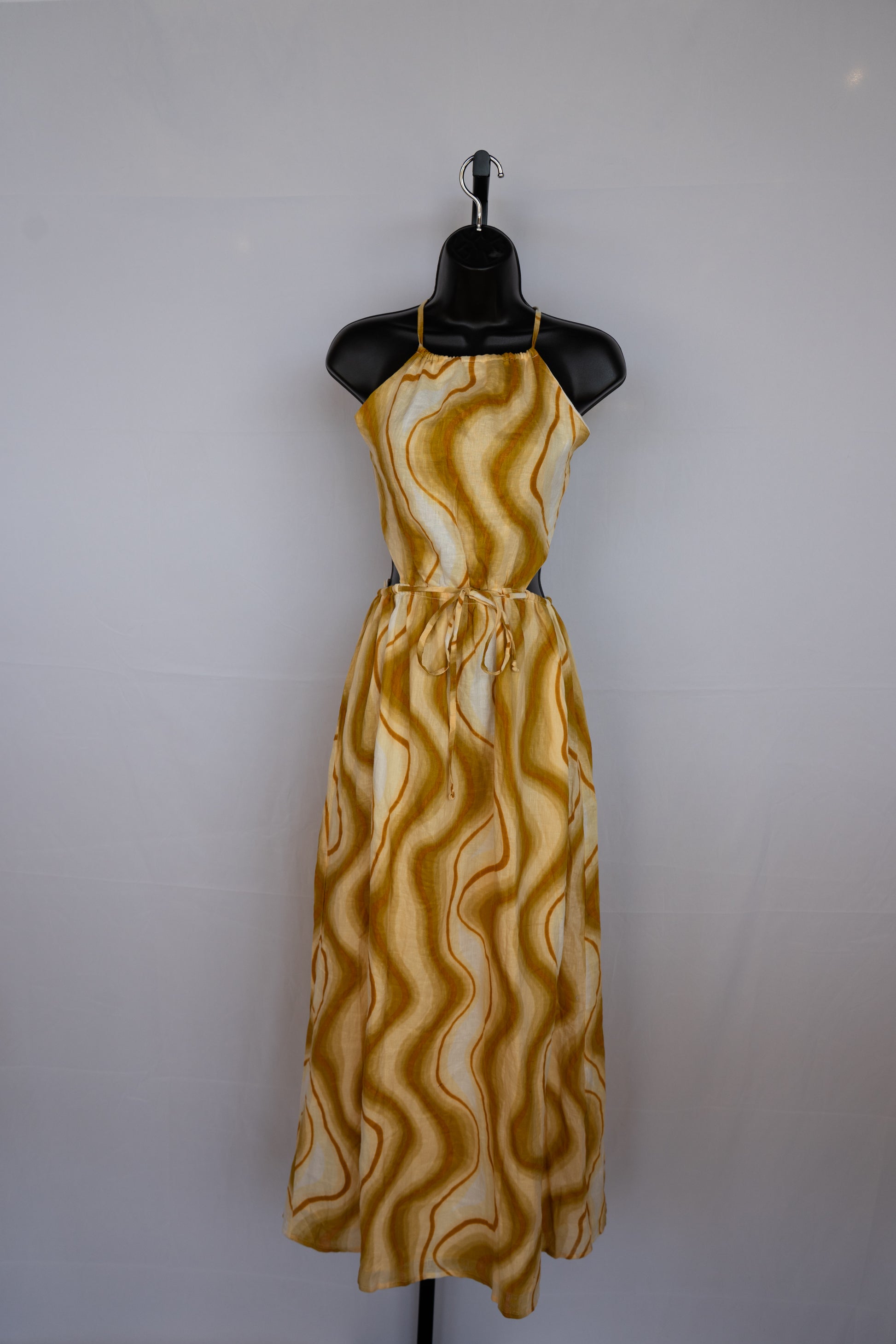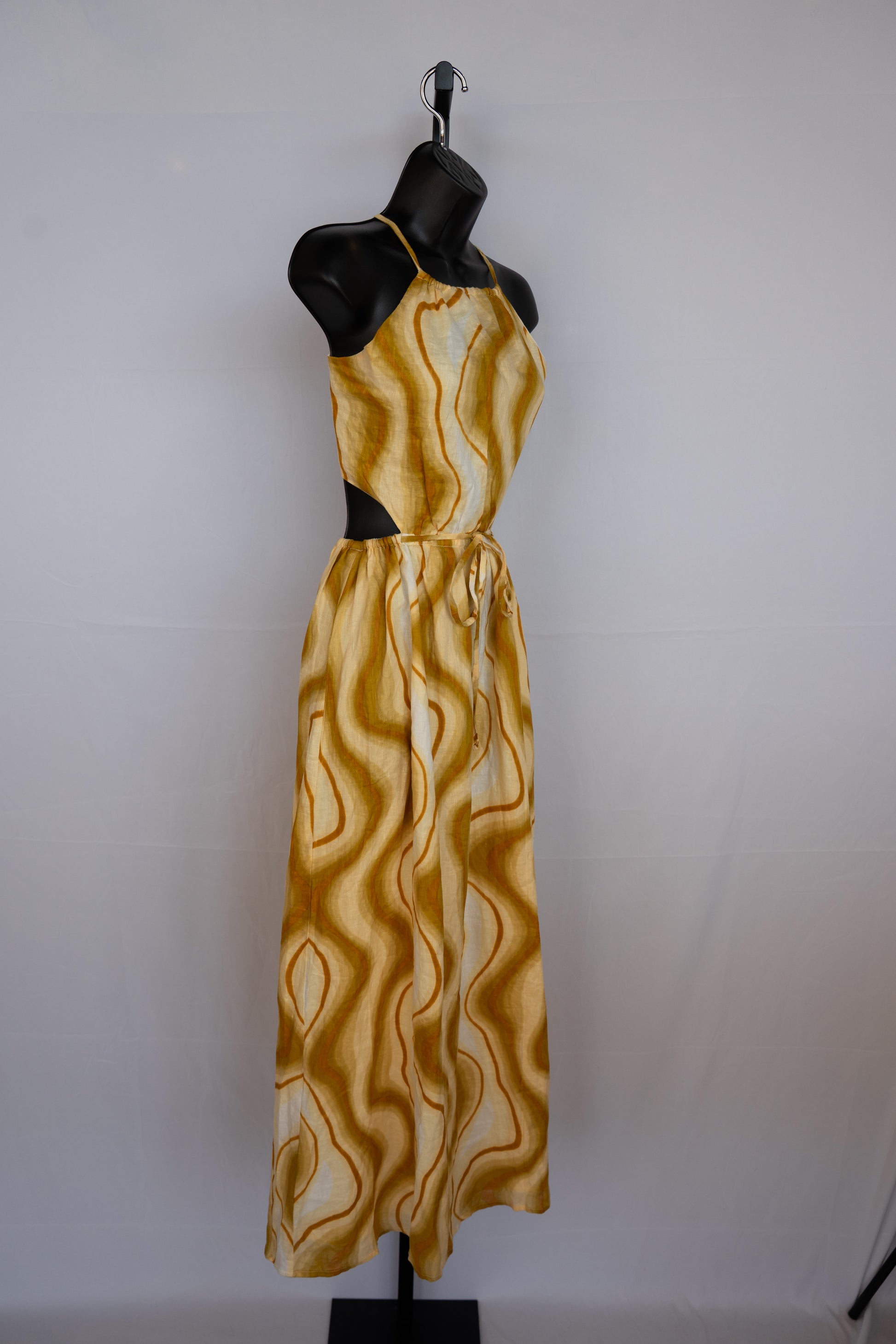 Faithfull the Brand Yellow Brown Yellow & Orange Floral Halter Neck Maxi Dress