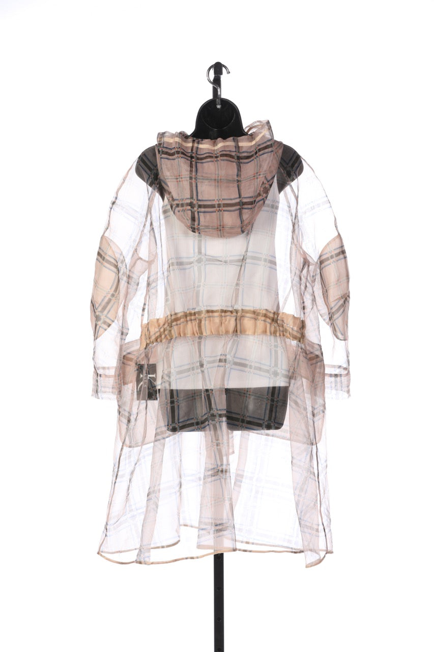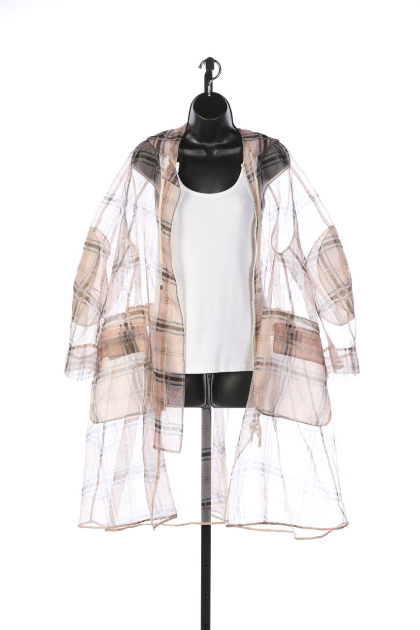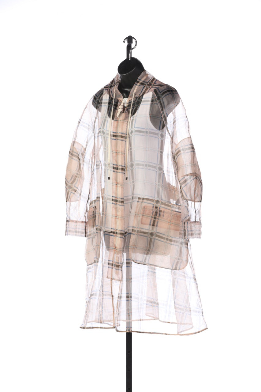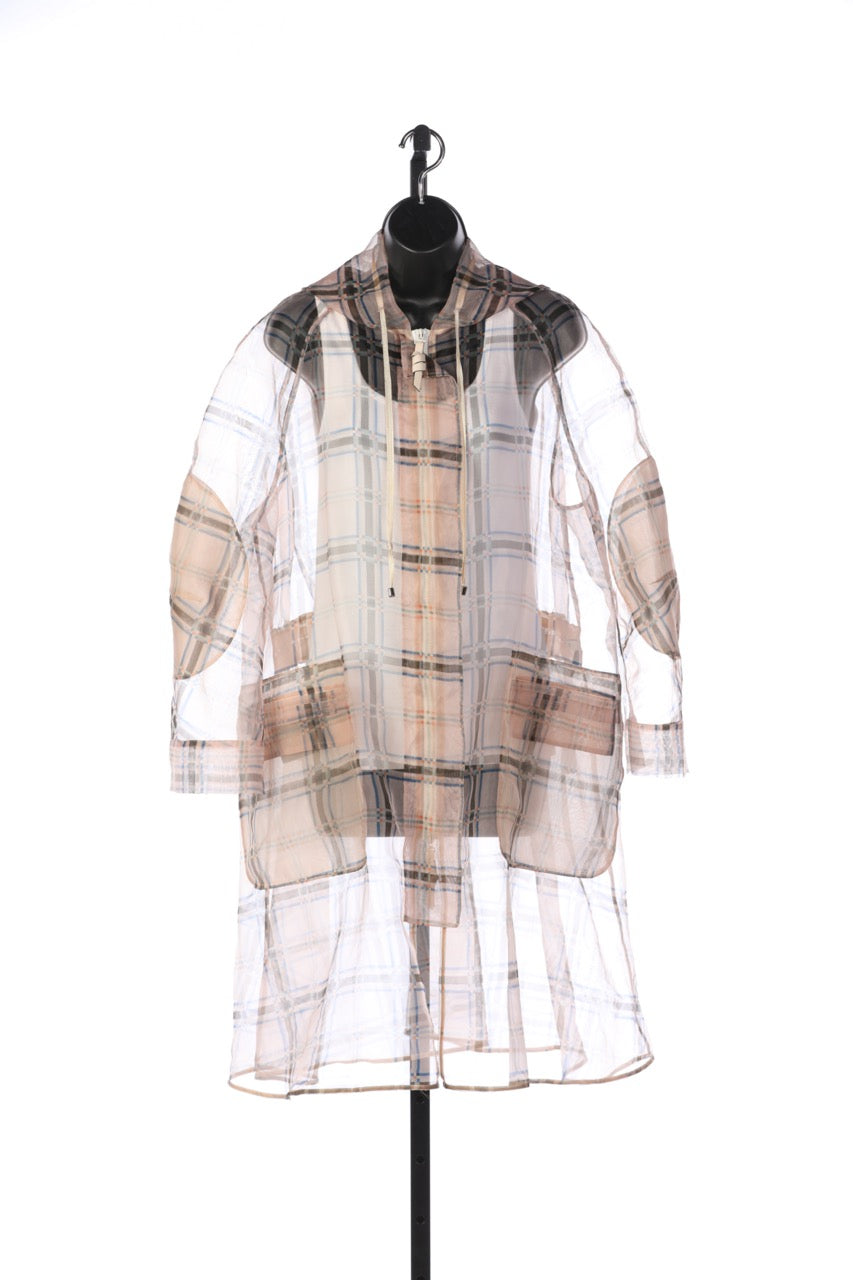 Fendi Sheer Light Peach with Blue & Brown Plaid Zip Up Hooded Coat