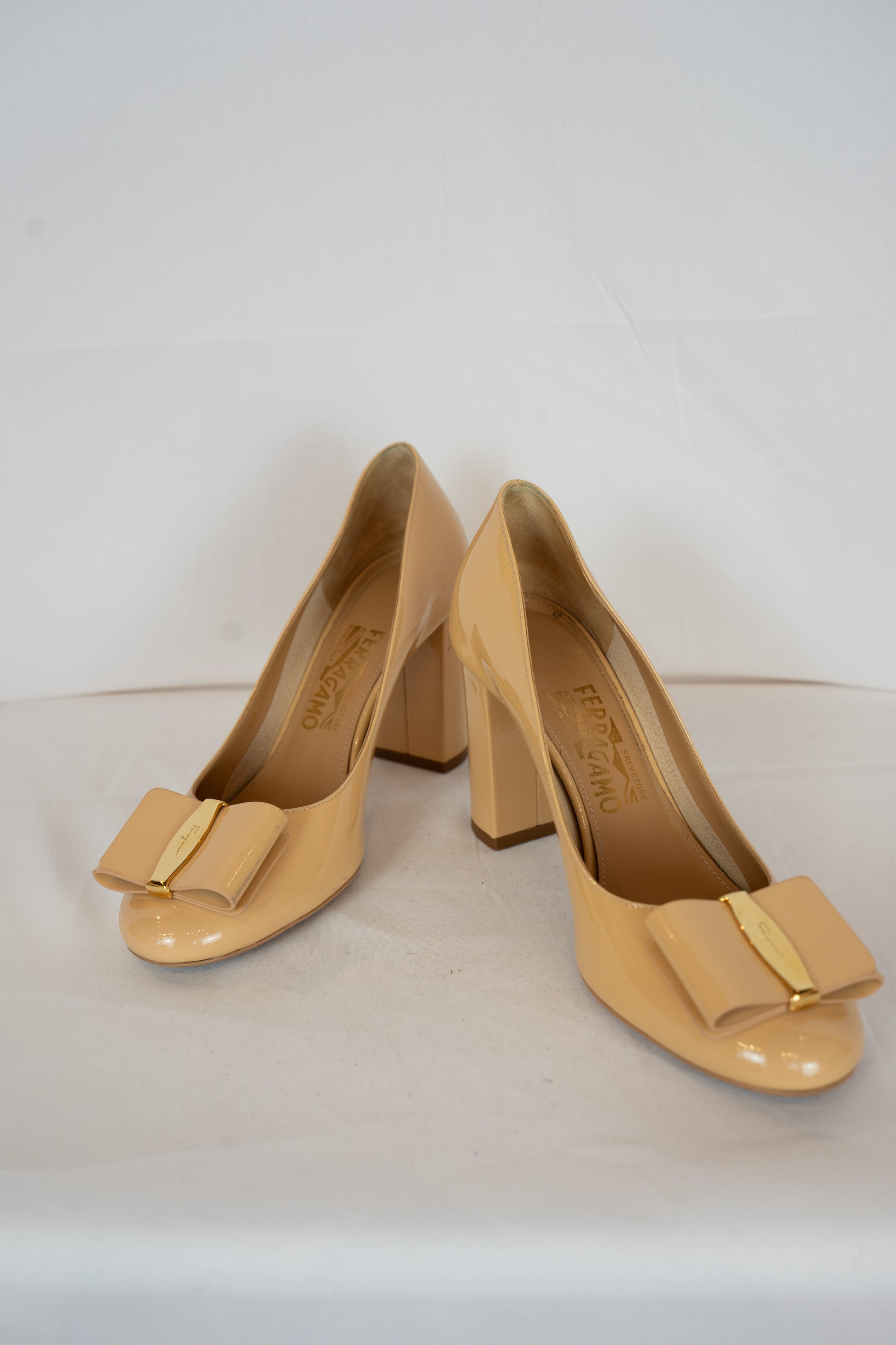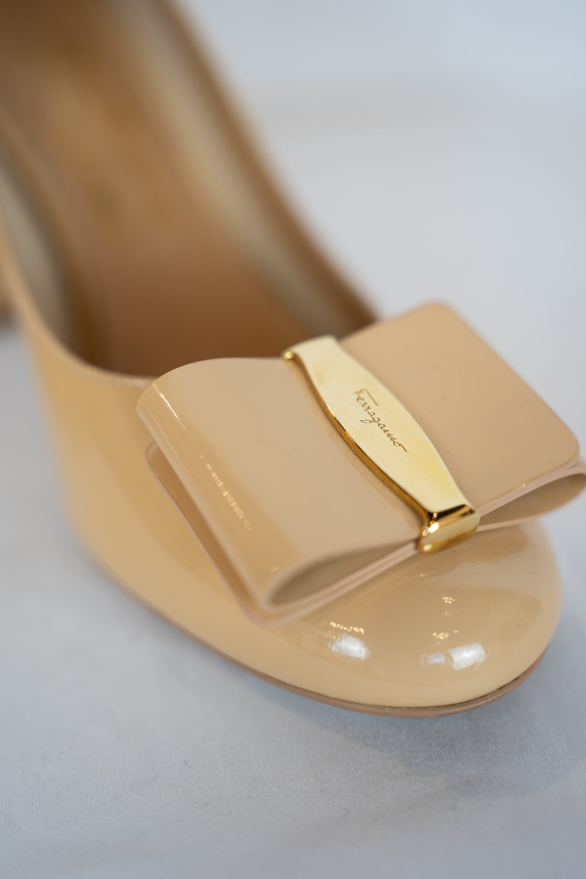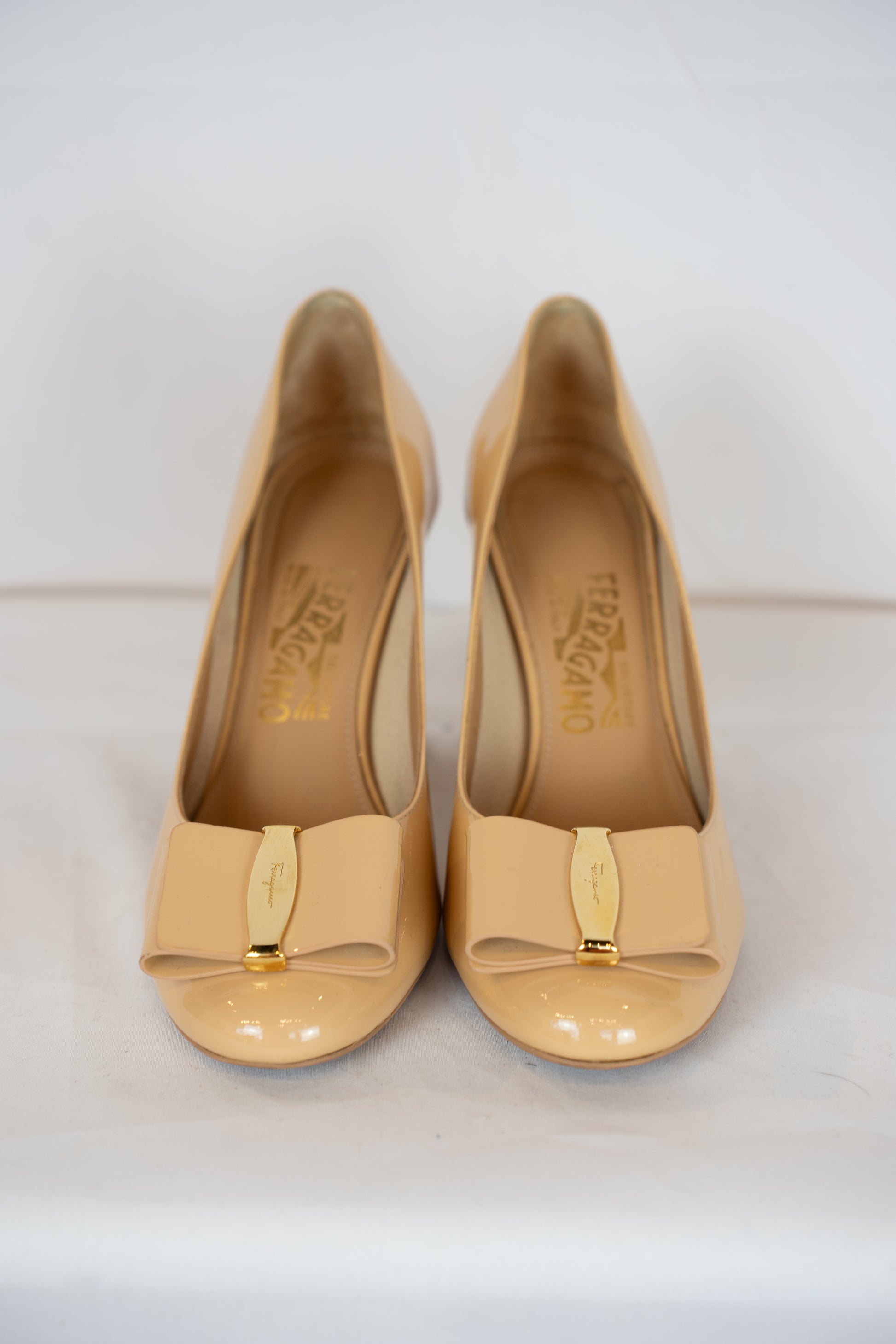Ferragamo Nude Round Toe Pumps w/ Toe Bow