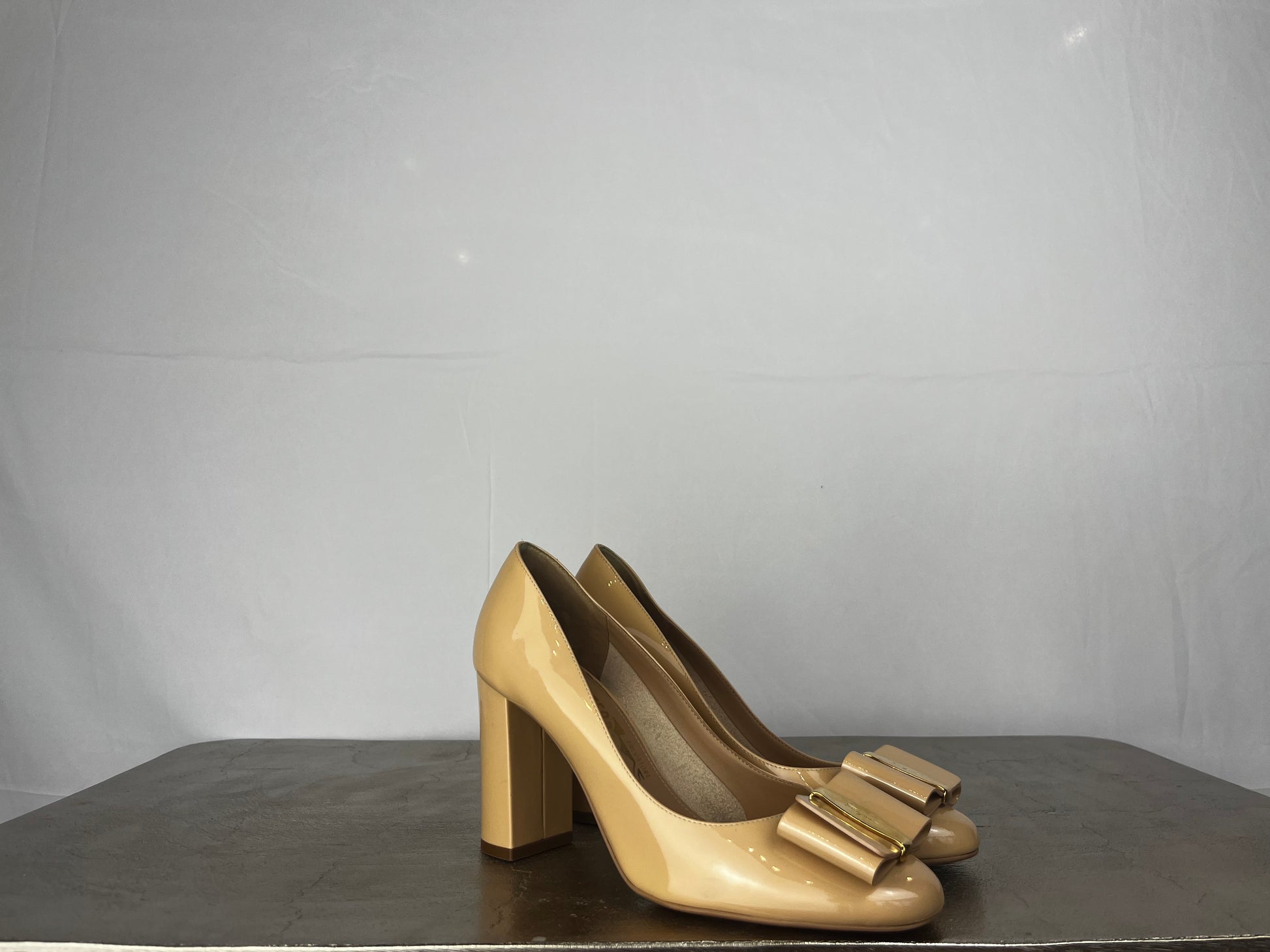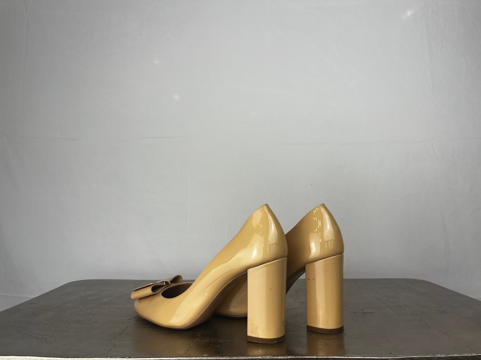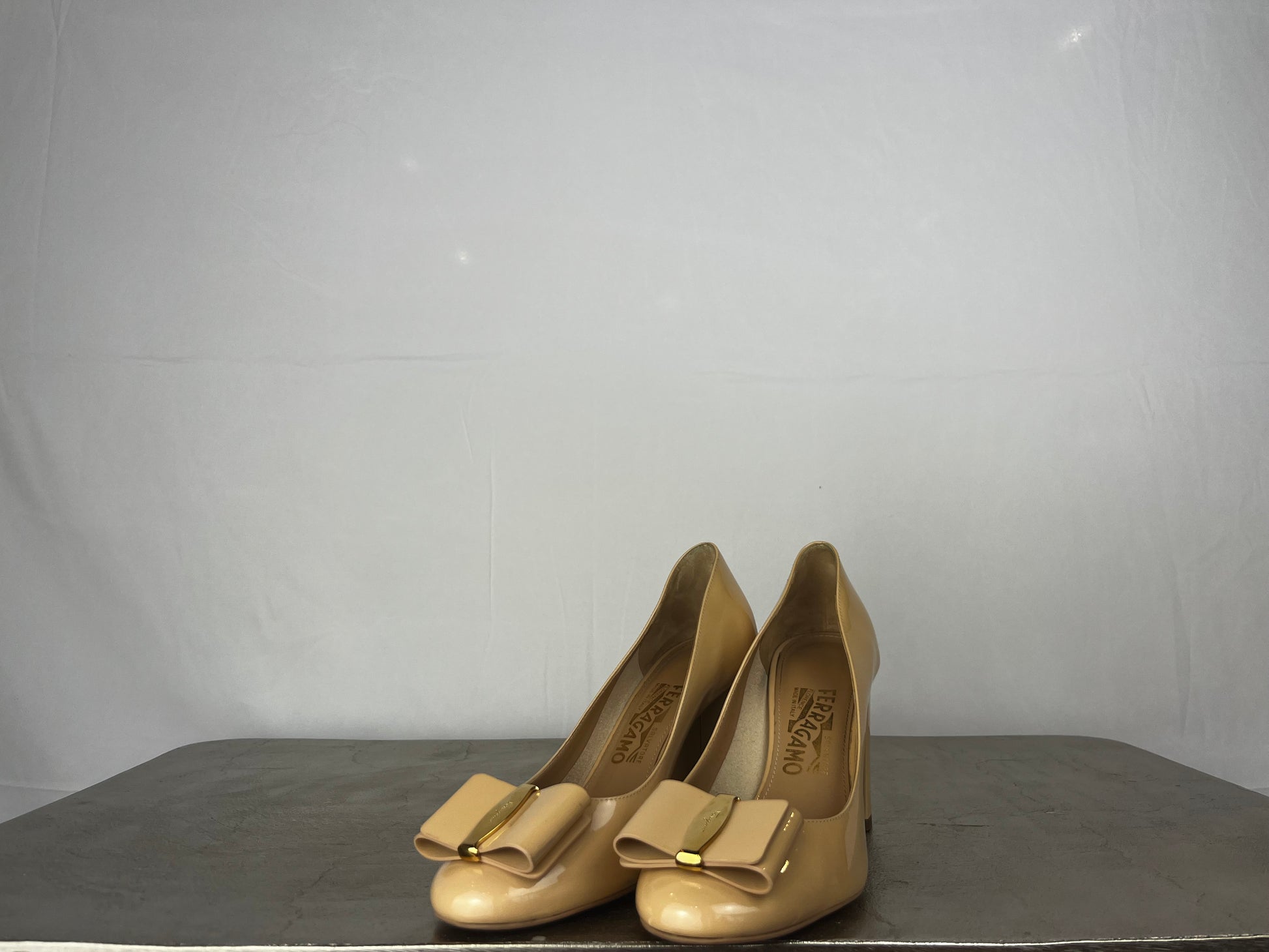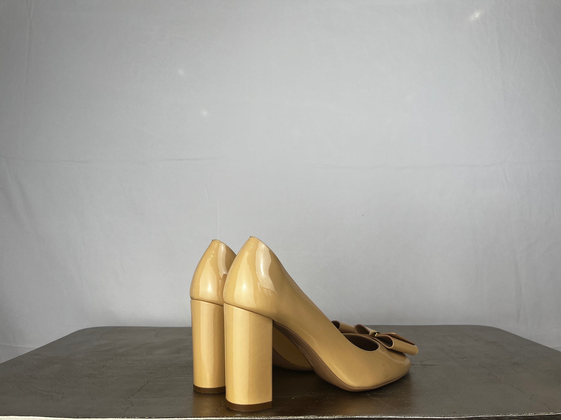 Ferragamo Nude Round Toe Pumps w/ Toe Bow