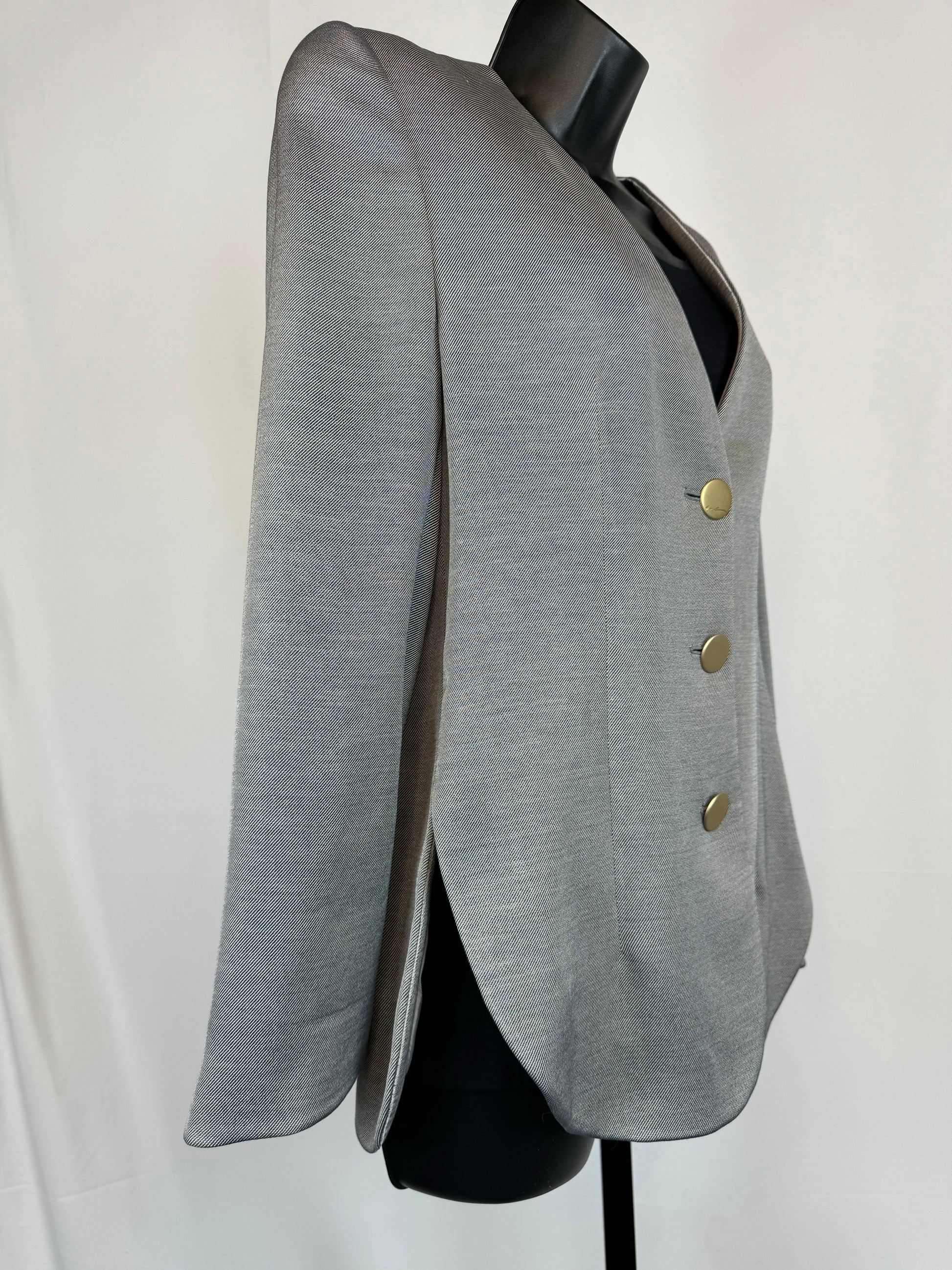 Giorgio Armani - Barneys New York Silver Grey Button Up Blazer Jacket w Brass Buttons