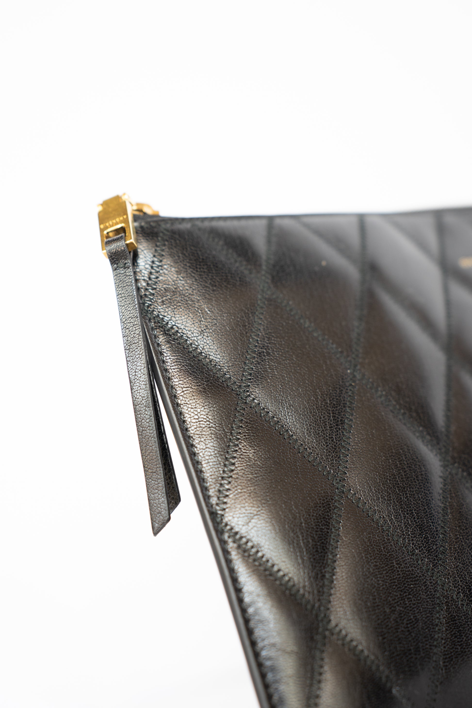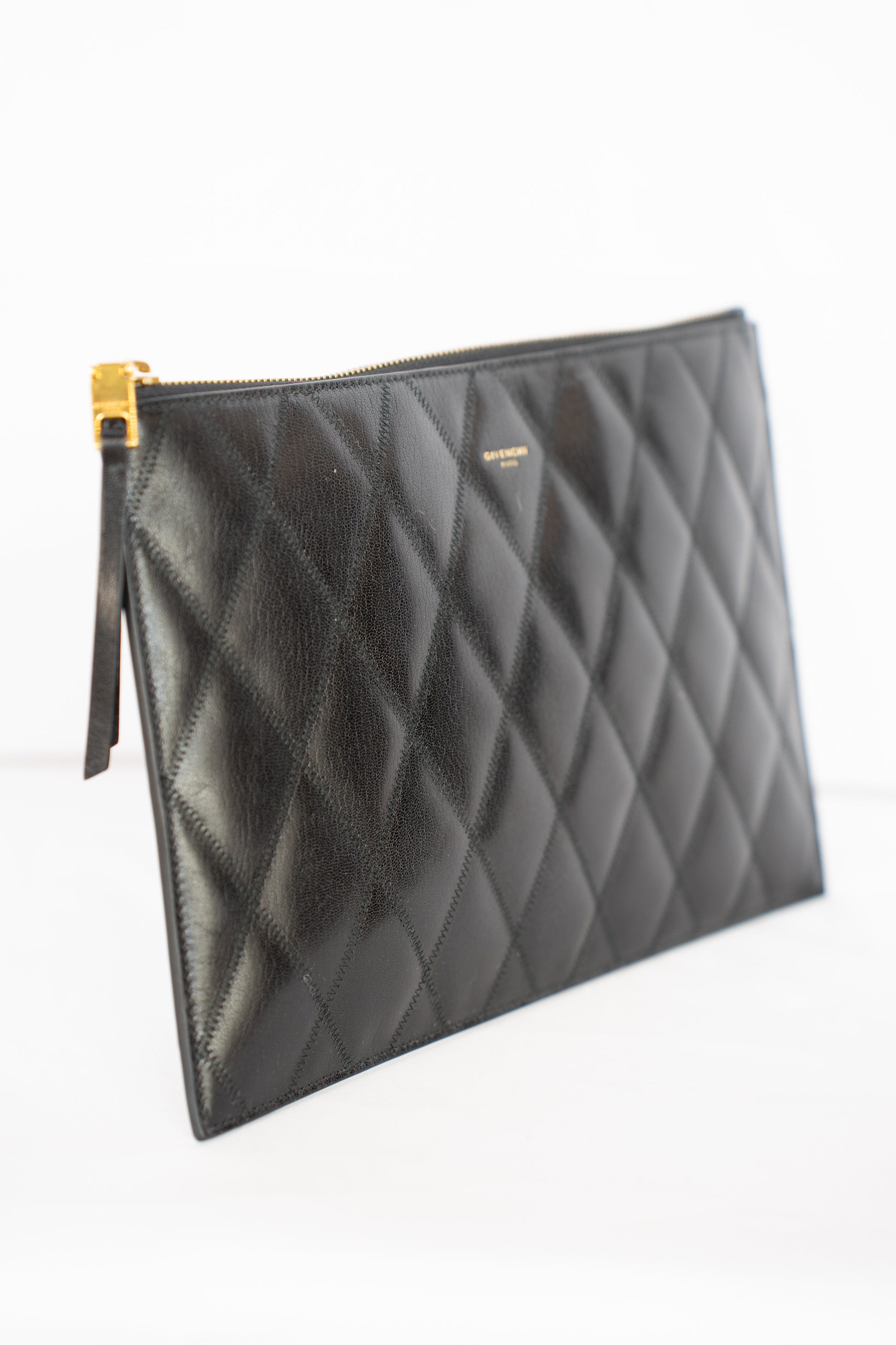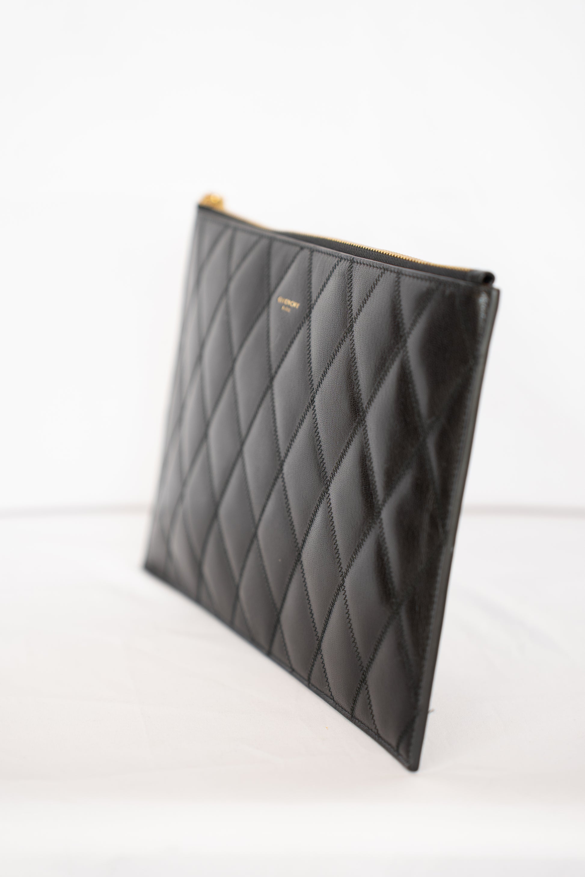 Givenchy Black Leather Quilted Clutch Zipper Pouch