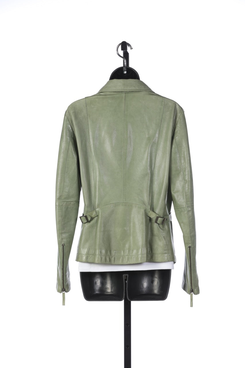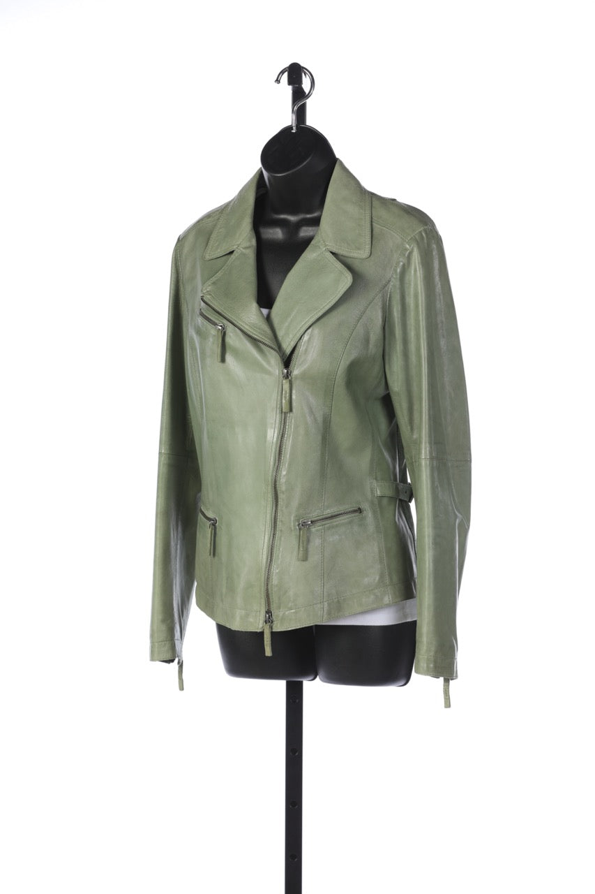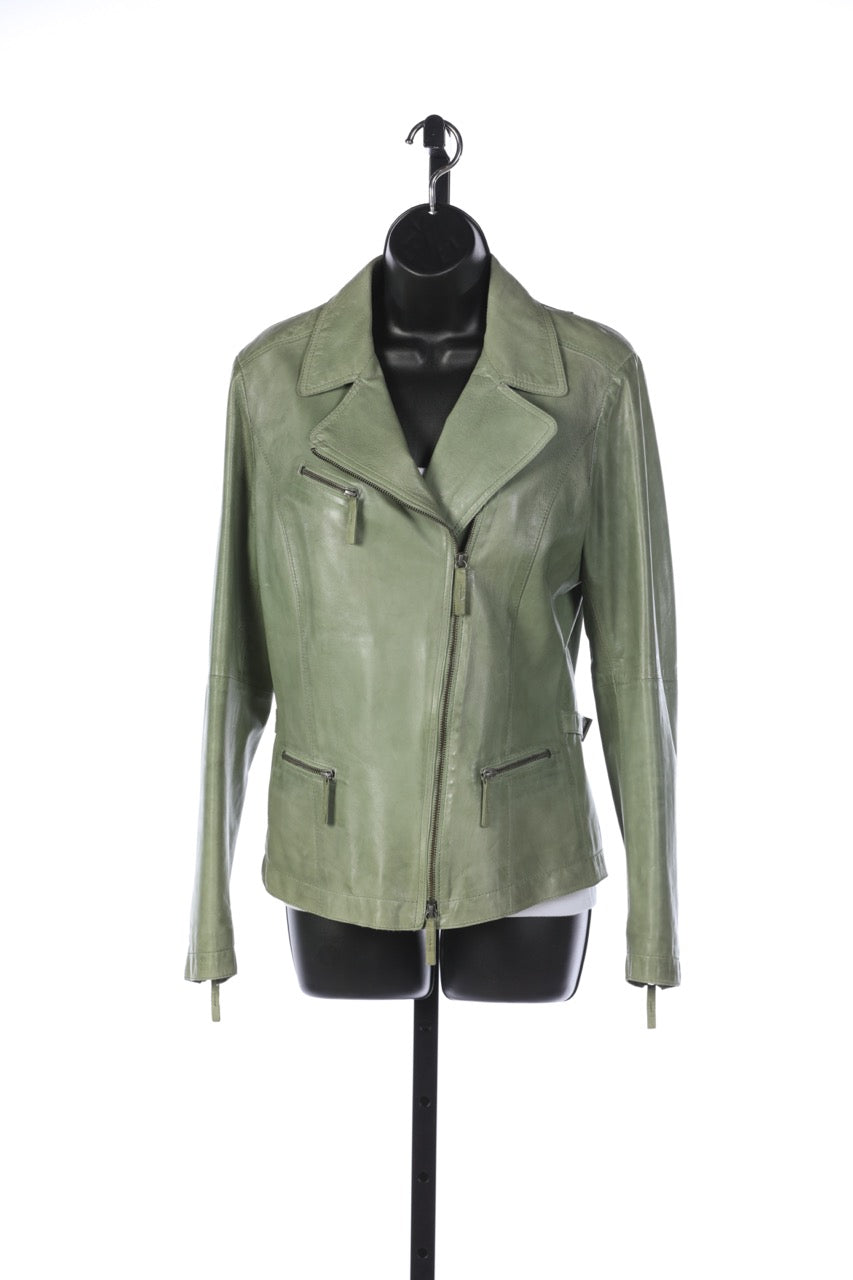 GMS-75 for Axel's Leather Light Olive Green Multi Zip Jacket w Floral Embroidered Patch Interior