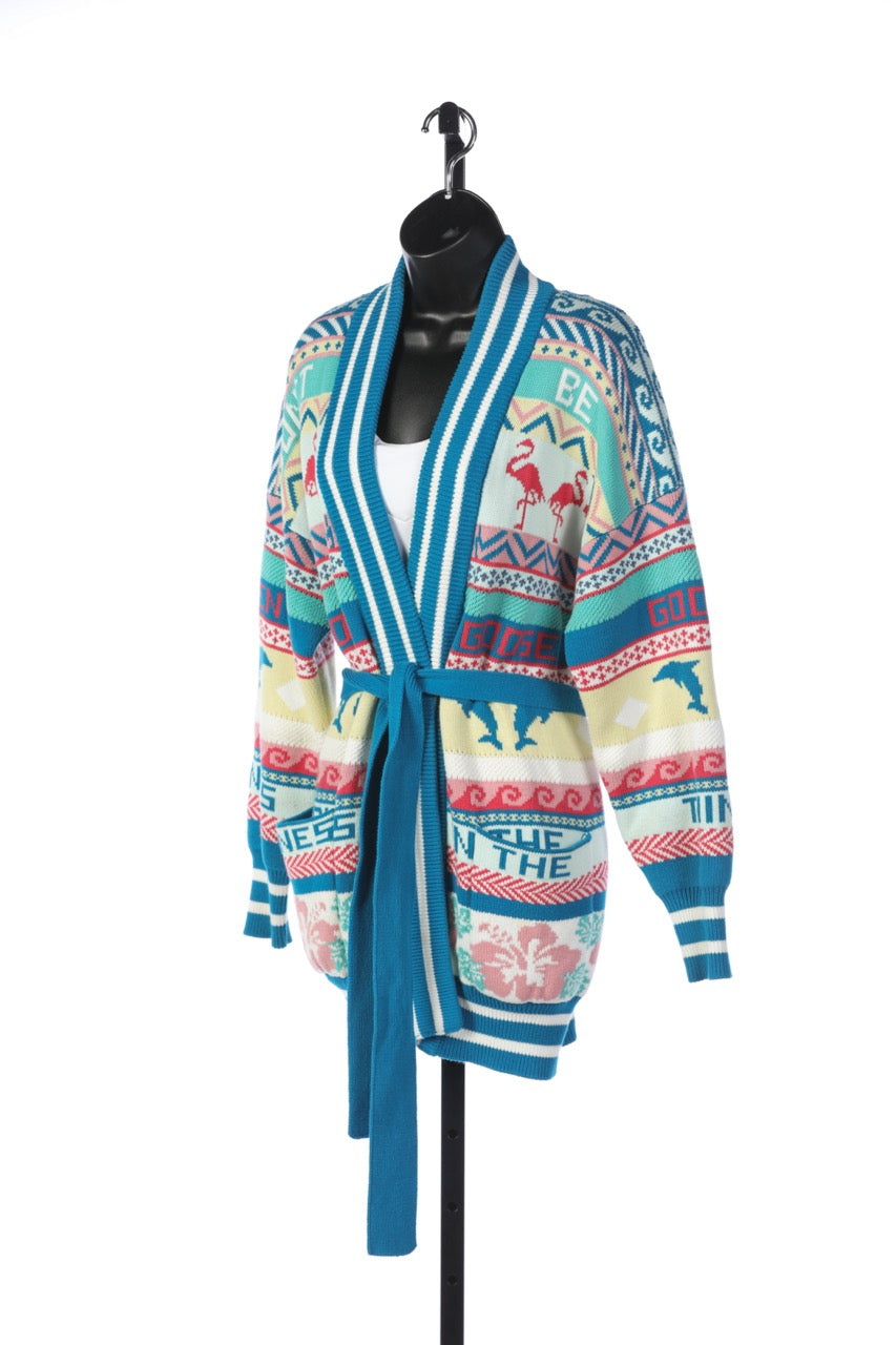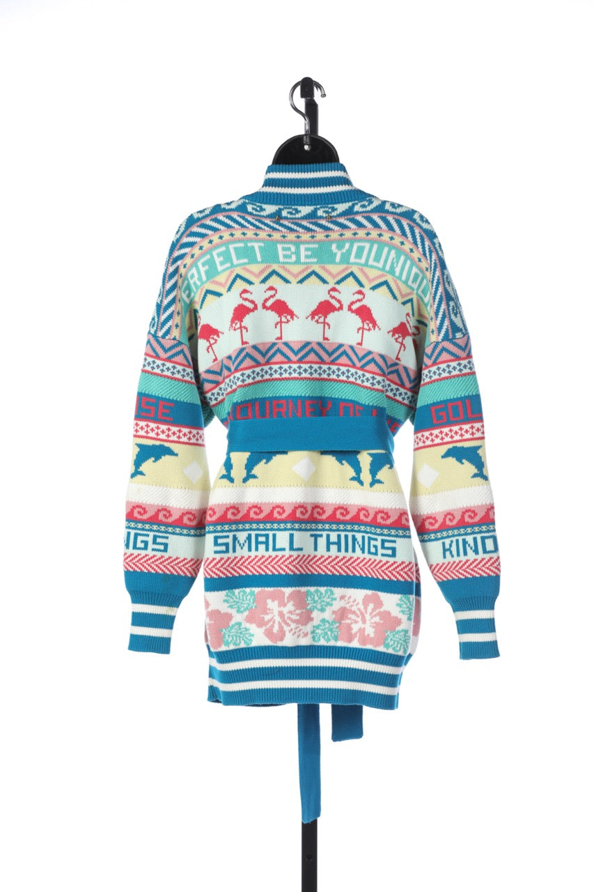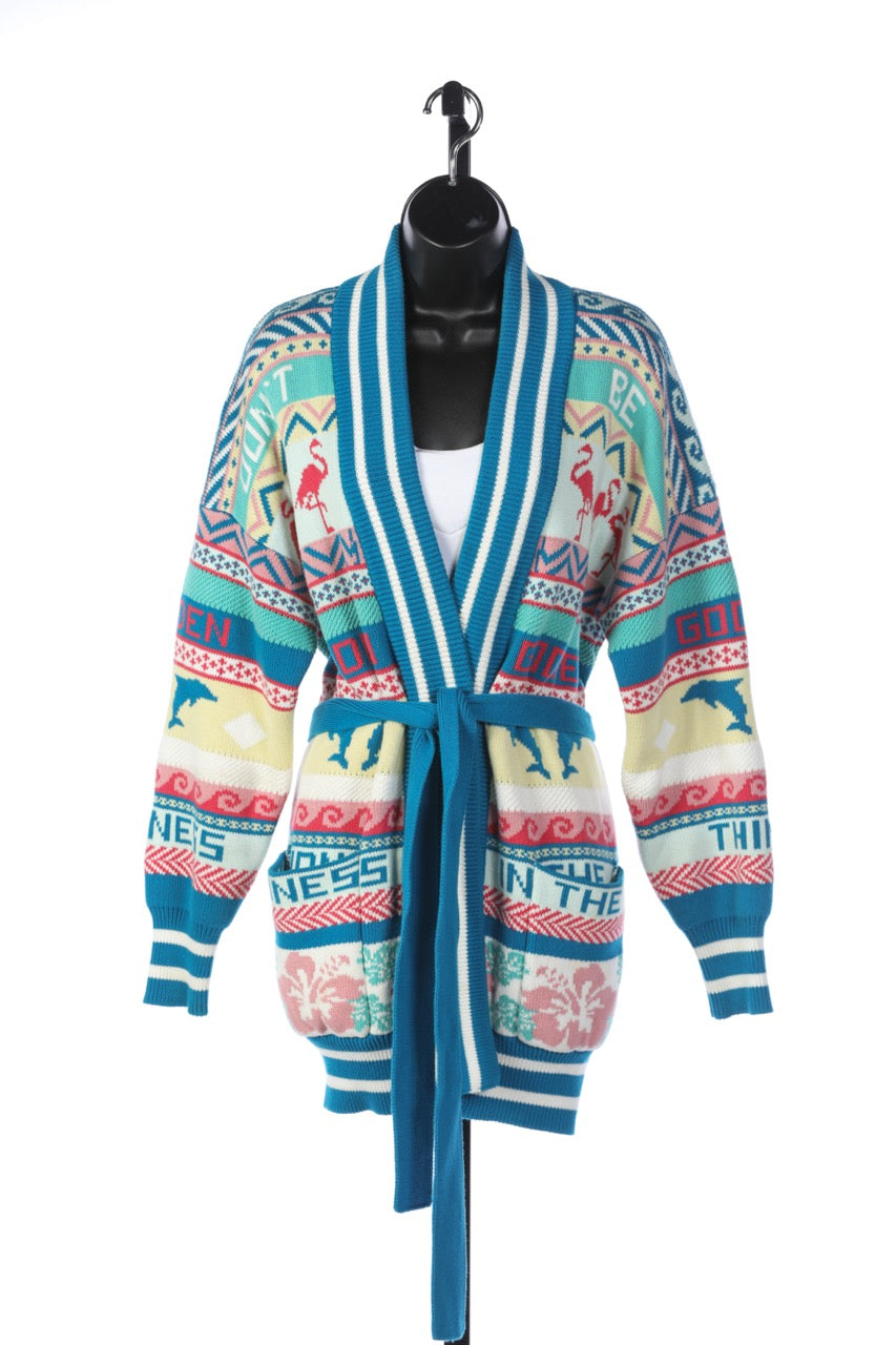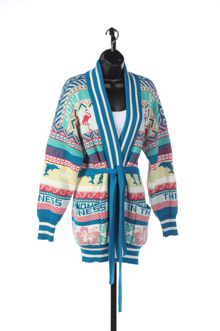 Golden Goose Abstract Intarsia-Knitted Belted Cardigan Sweater