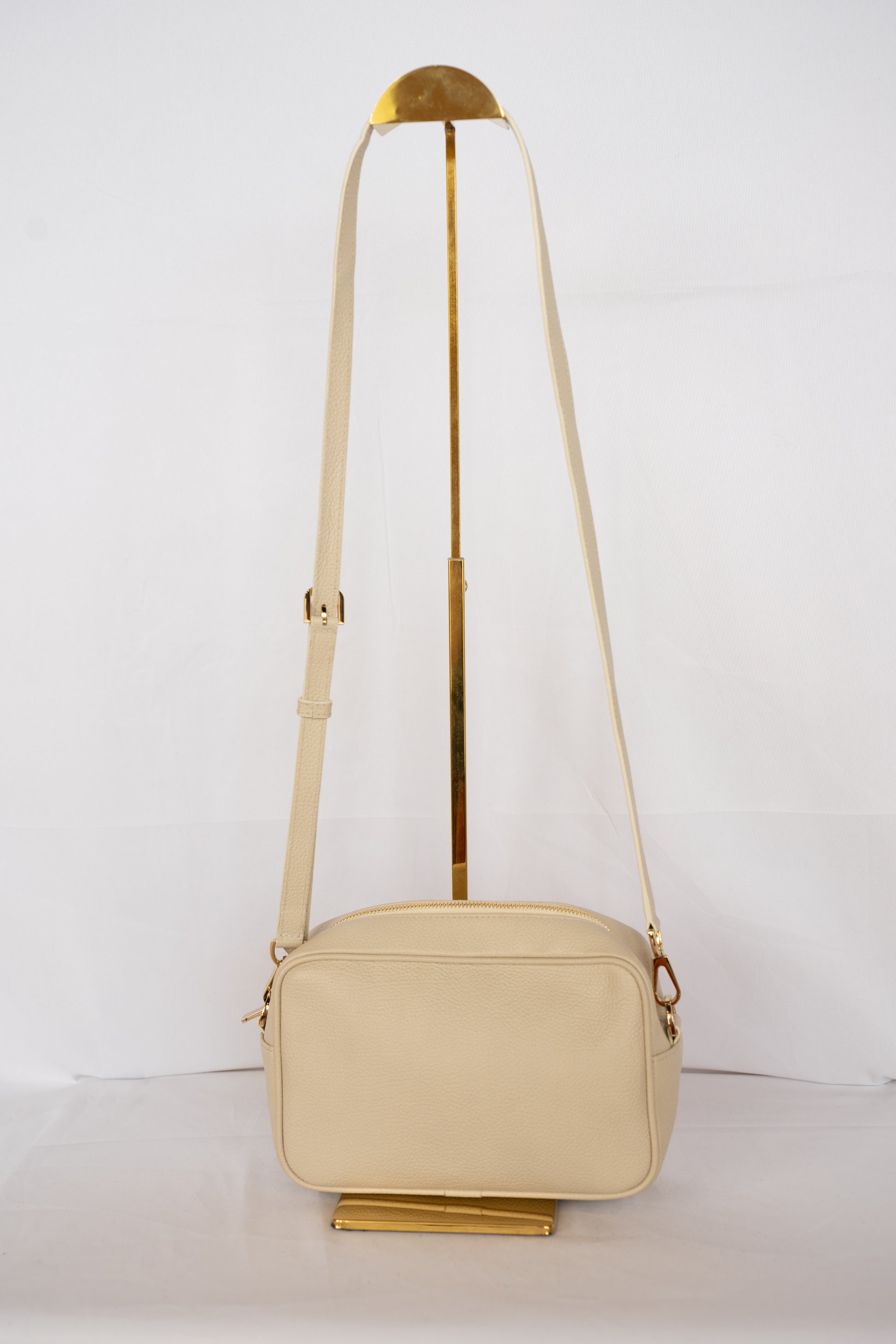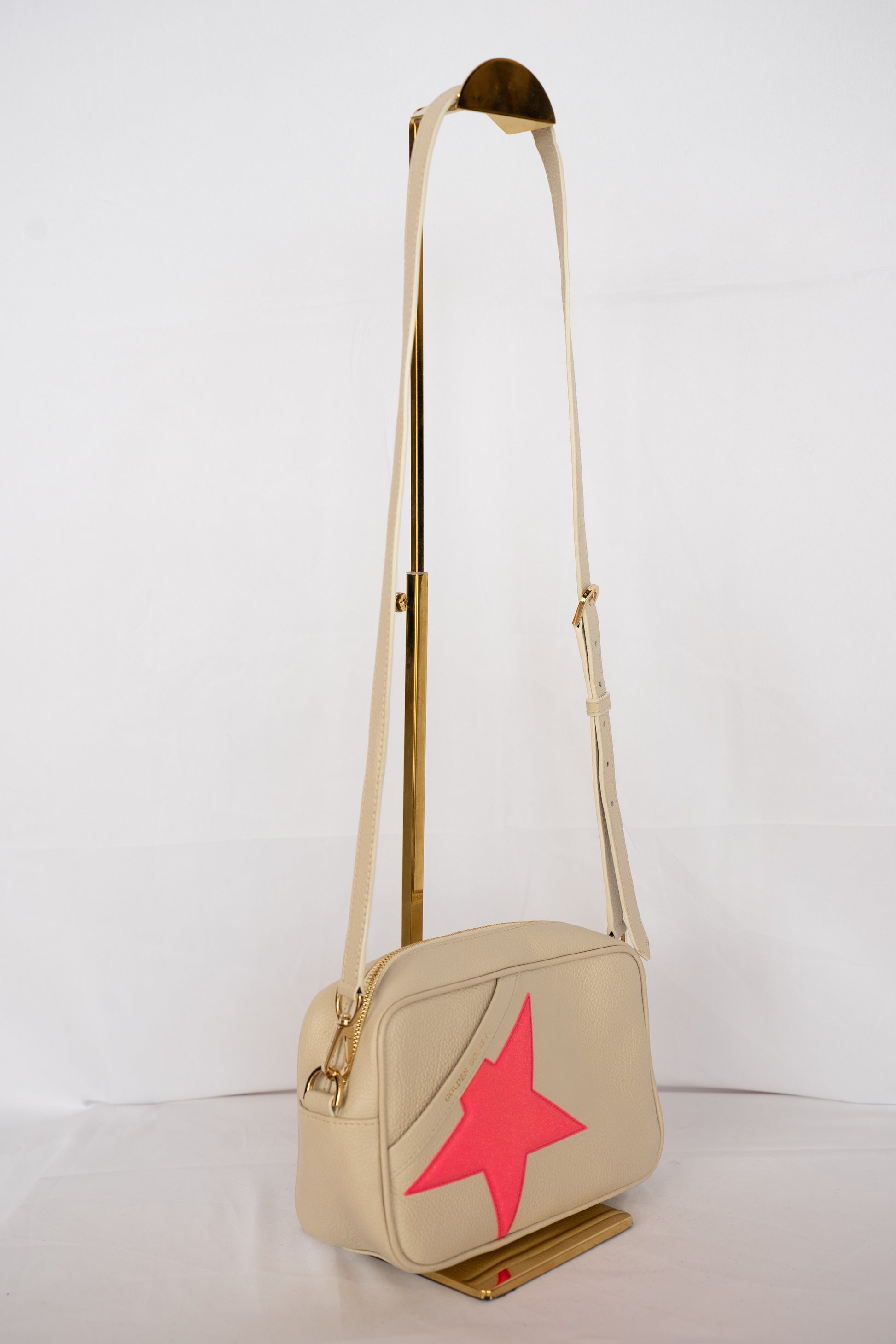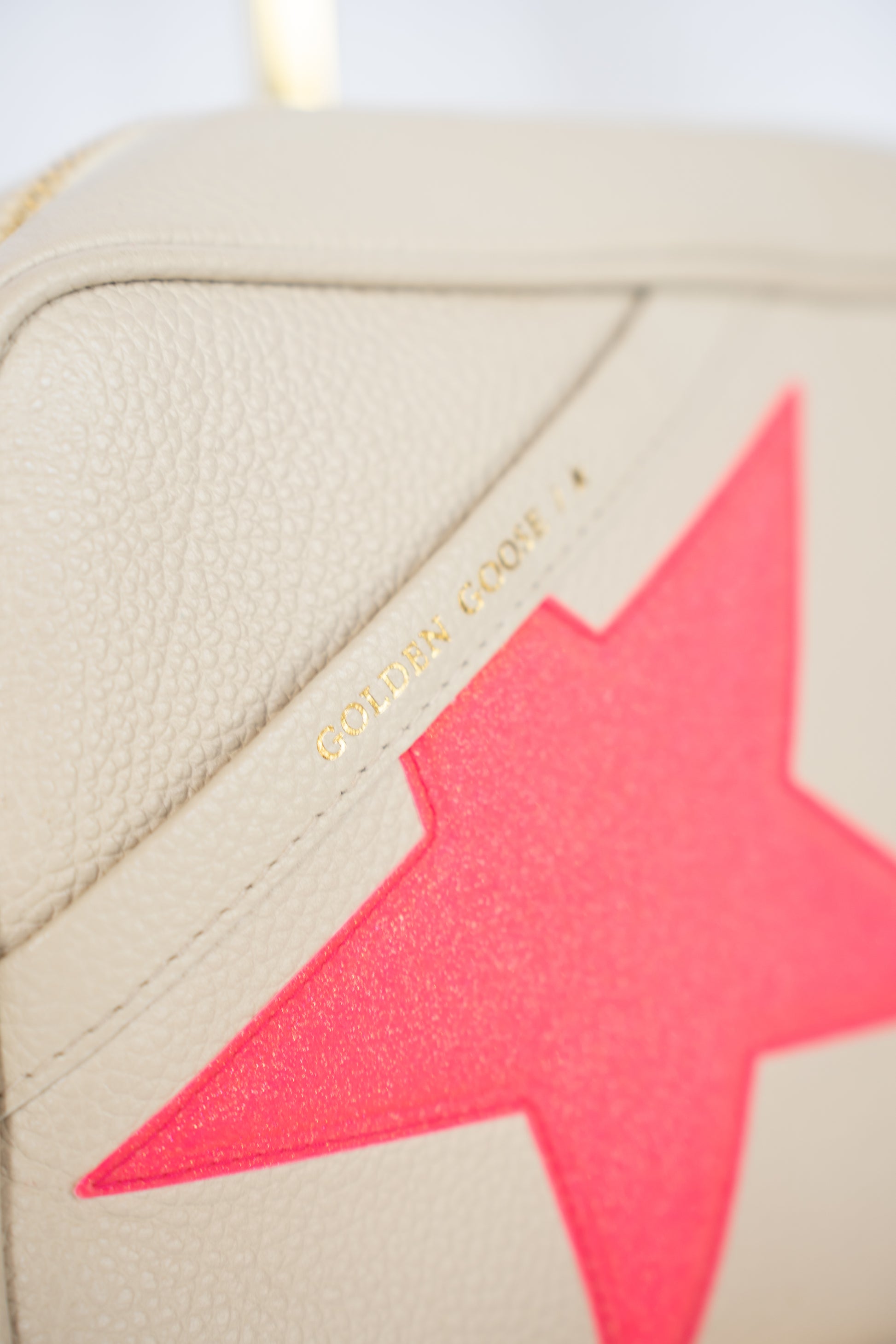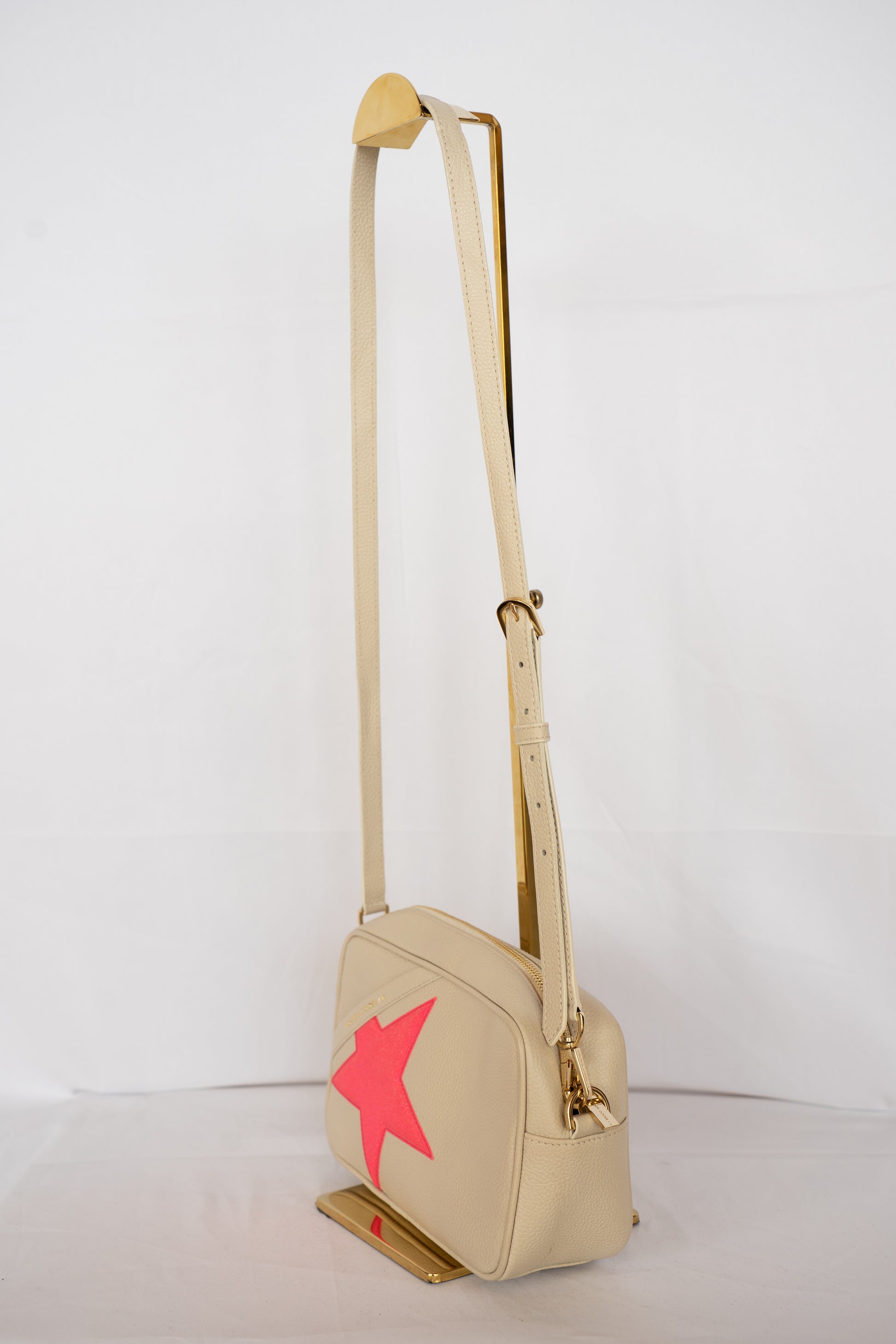 Golden Goose Beige Leather w Pink Sparkle Star Camera Crossbody Bag