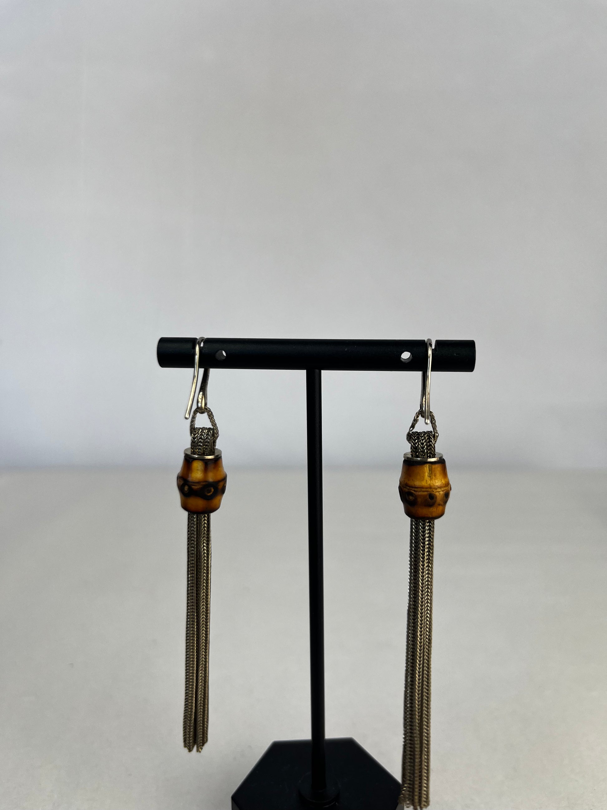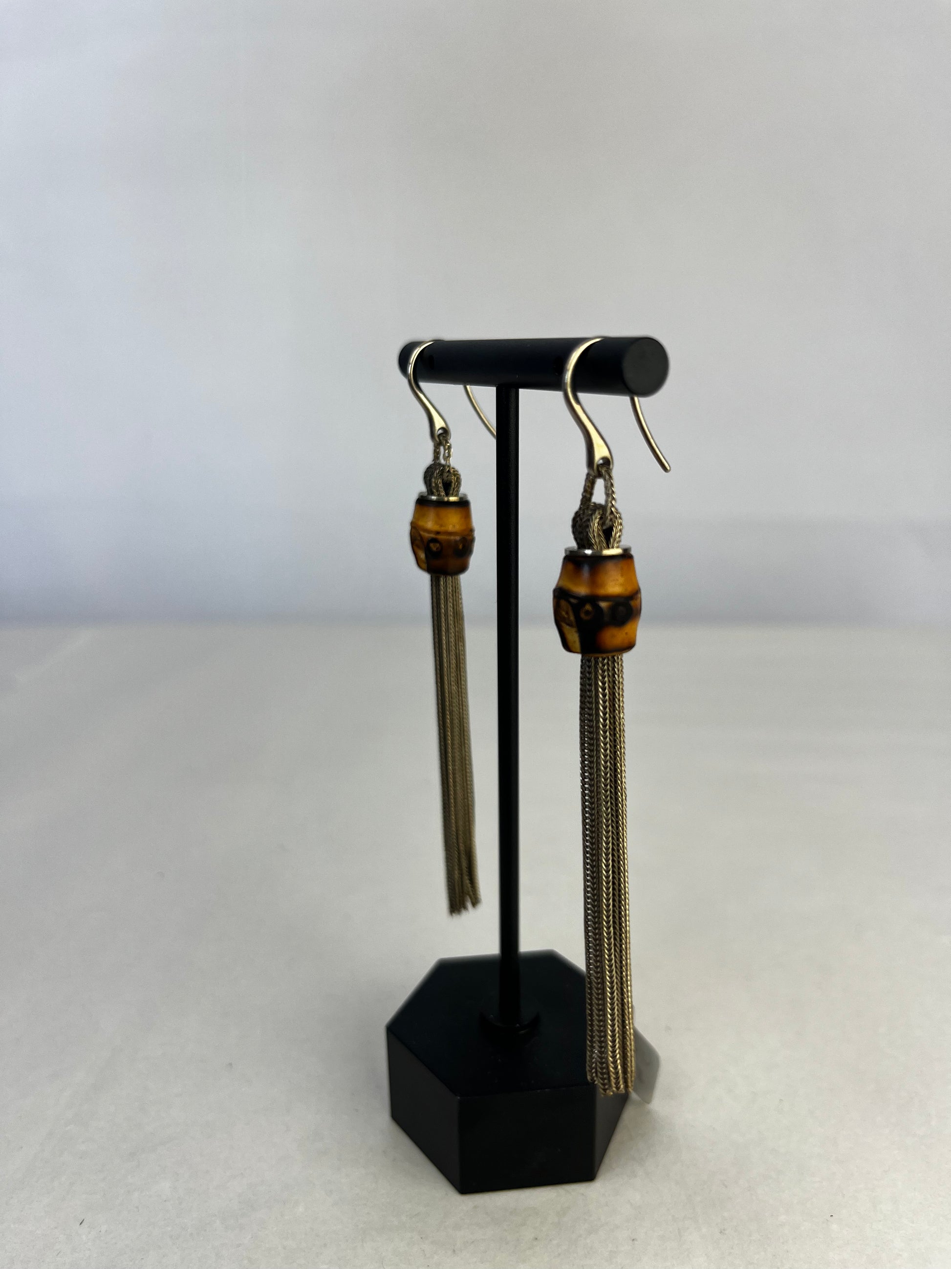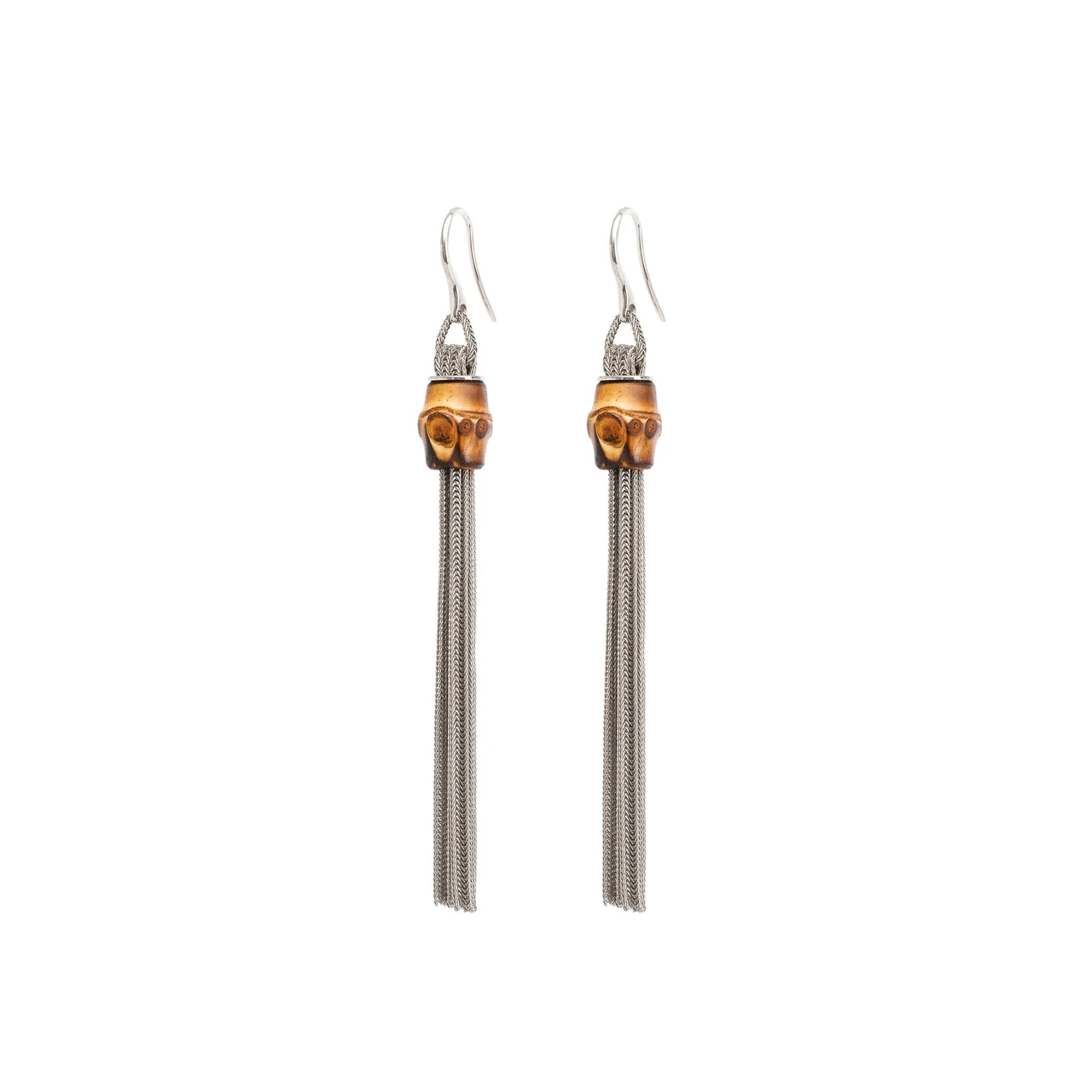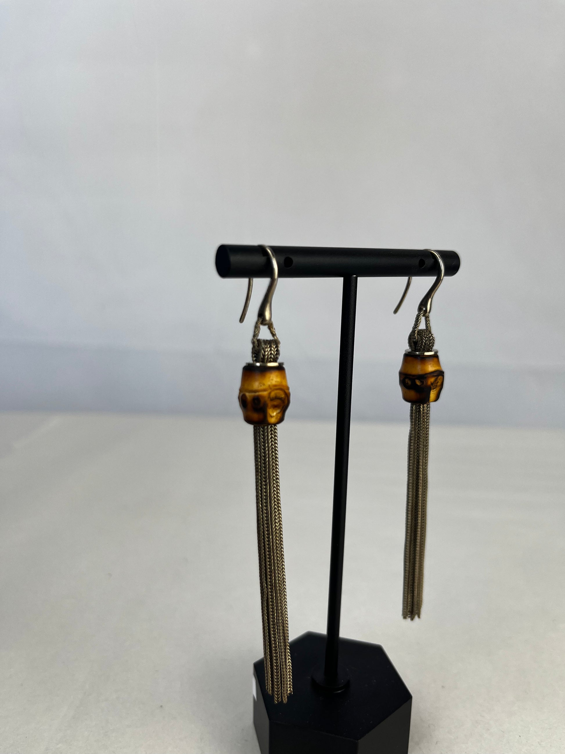 COMES WITH BOX - Gucci Silver Chain & Bamboo Bead Tassel Earrings