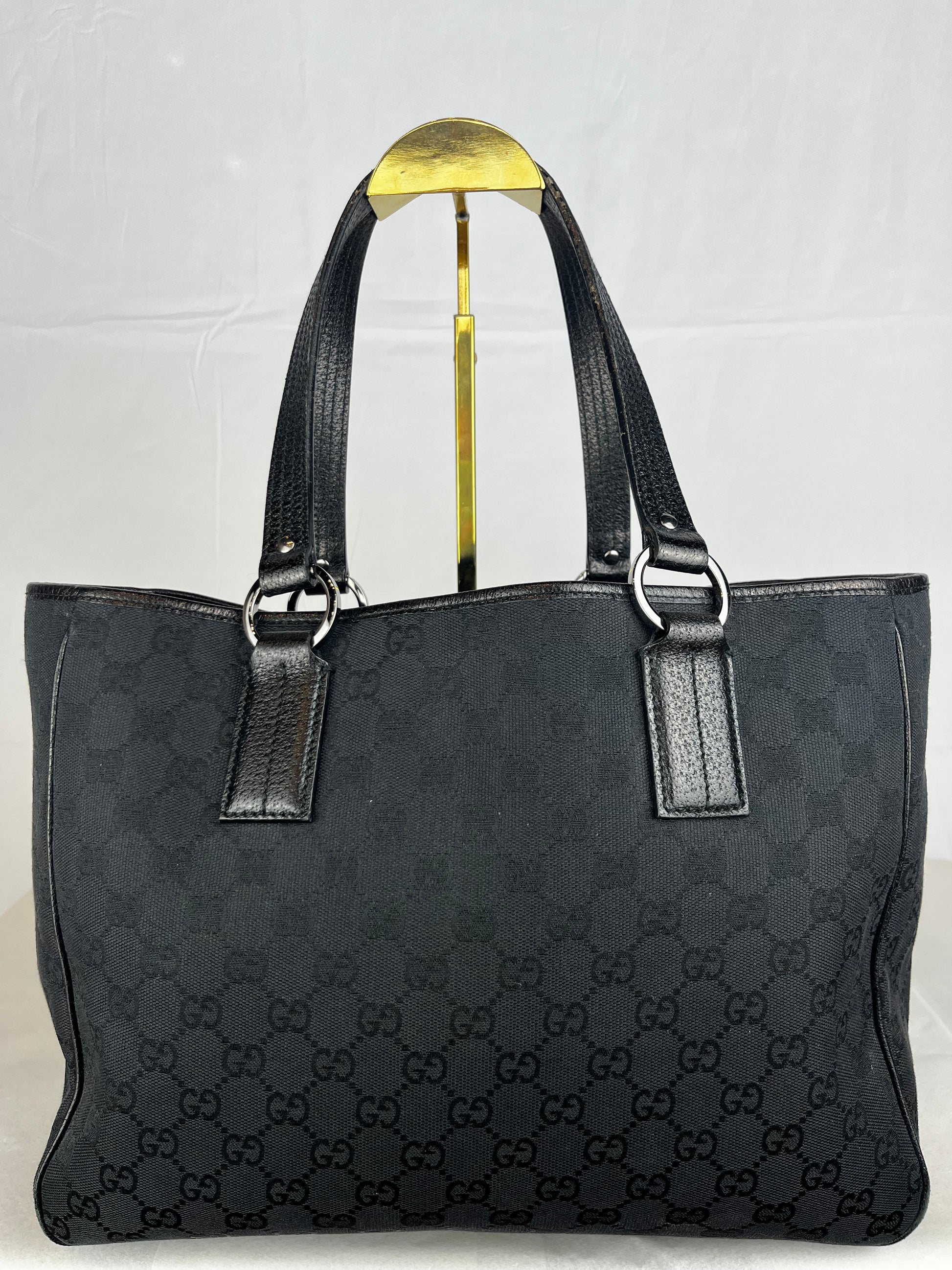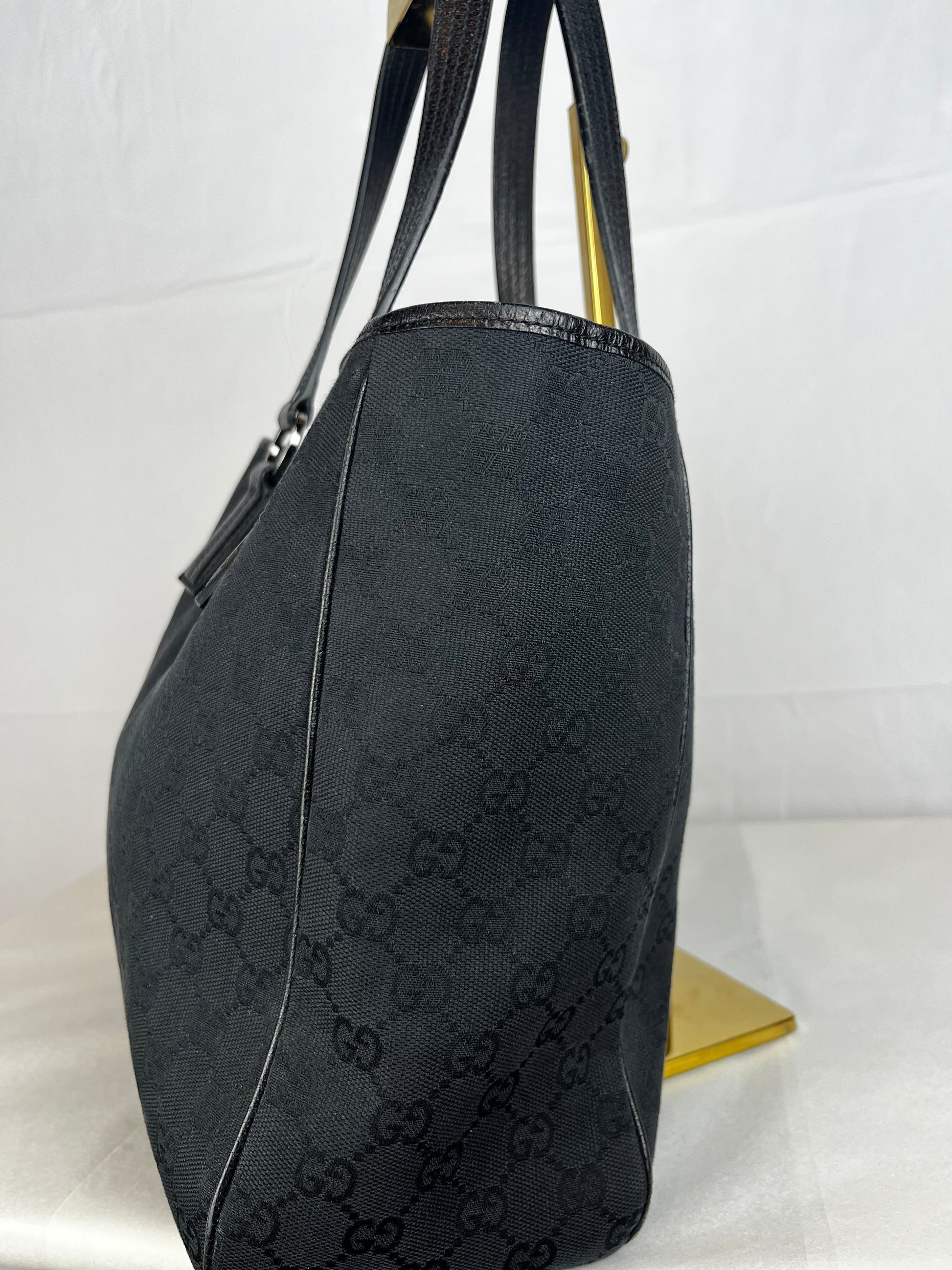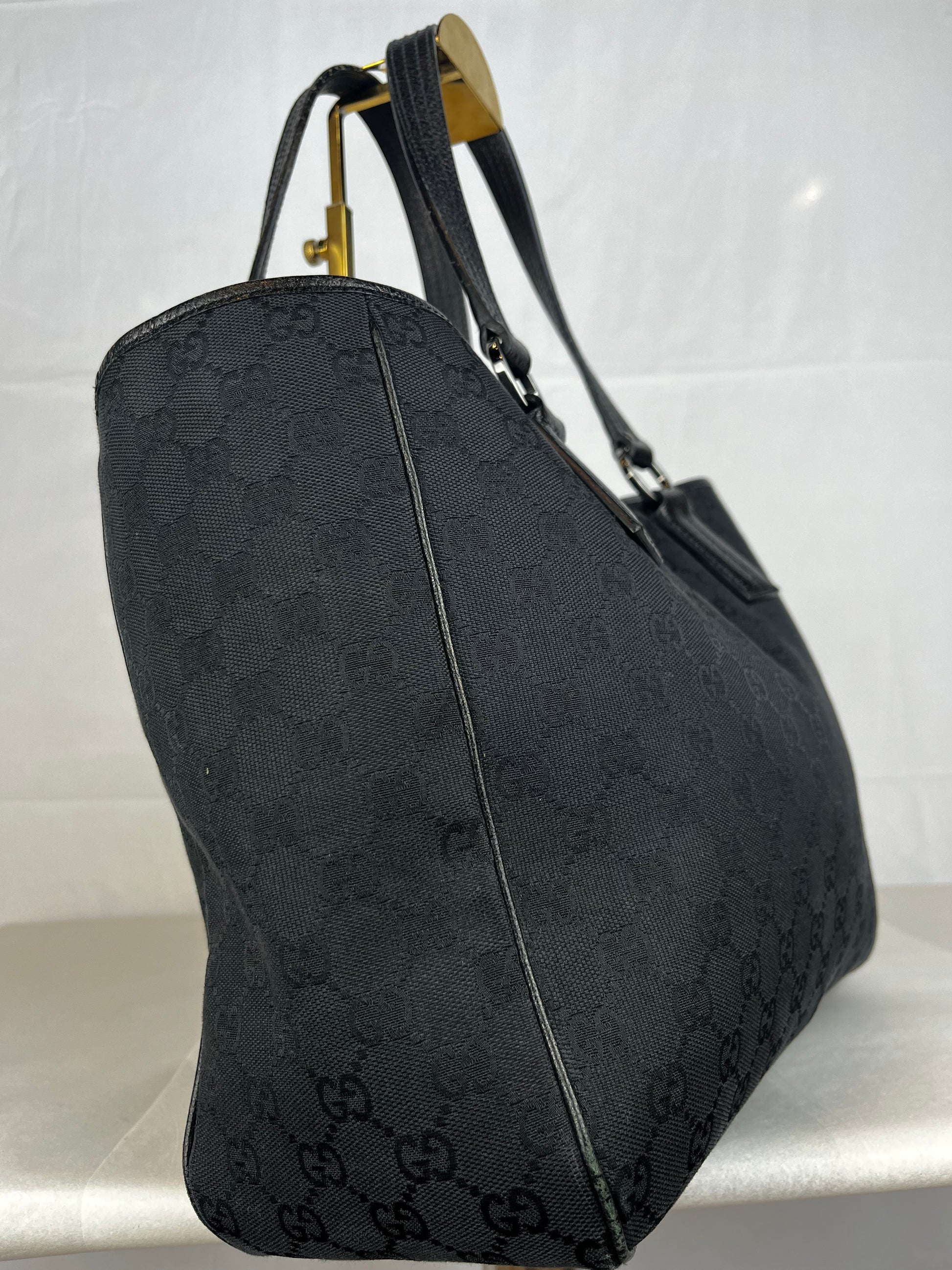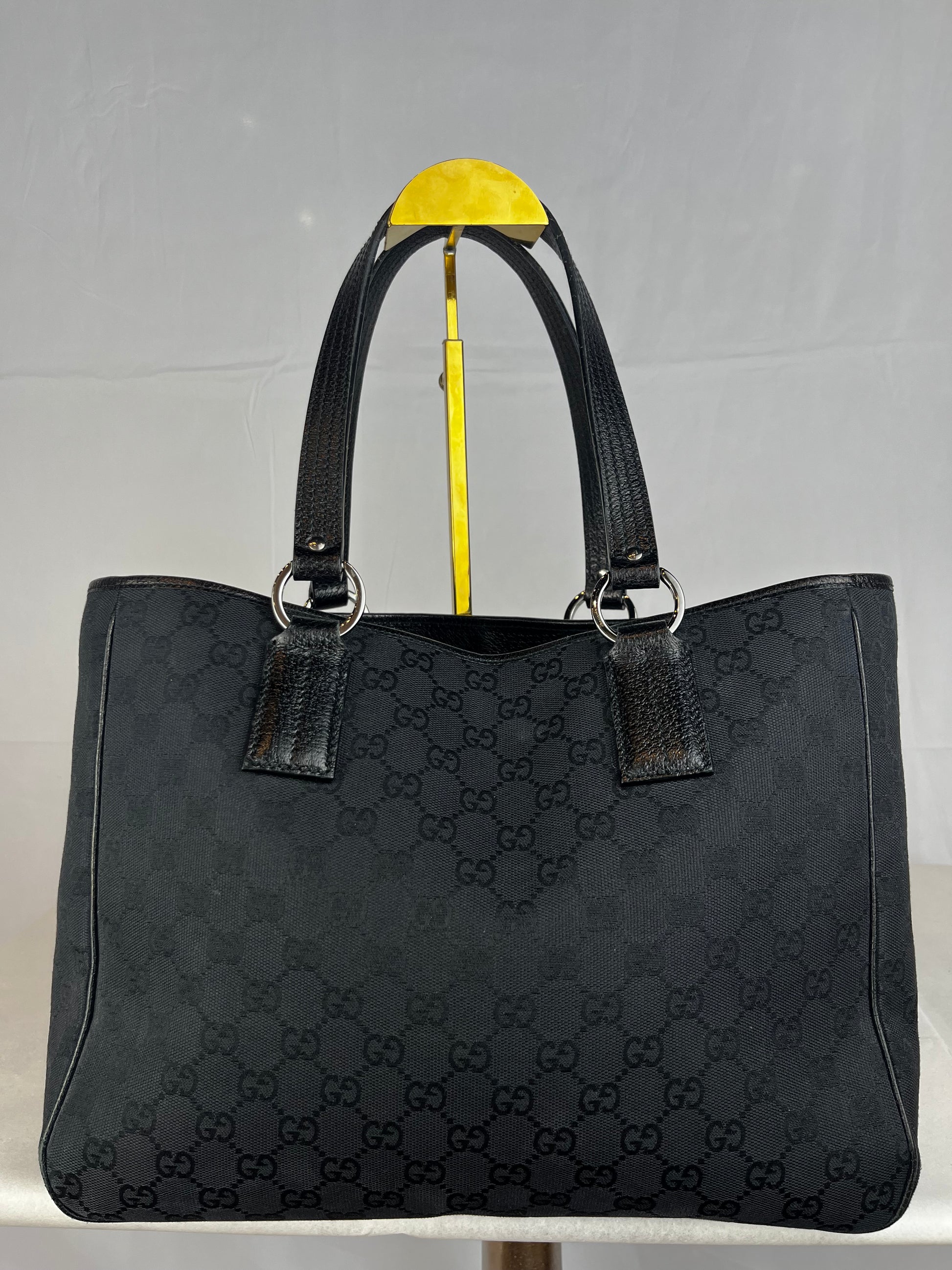 Gucci Black GG Monogram Leather Trim Tote Bag