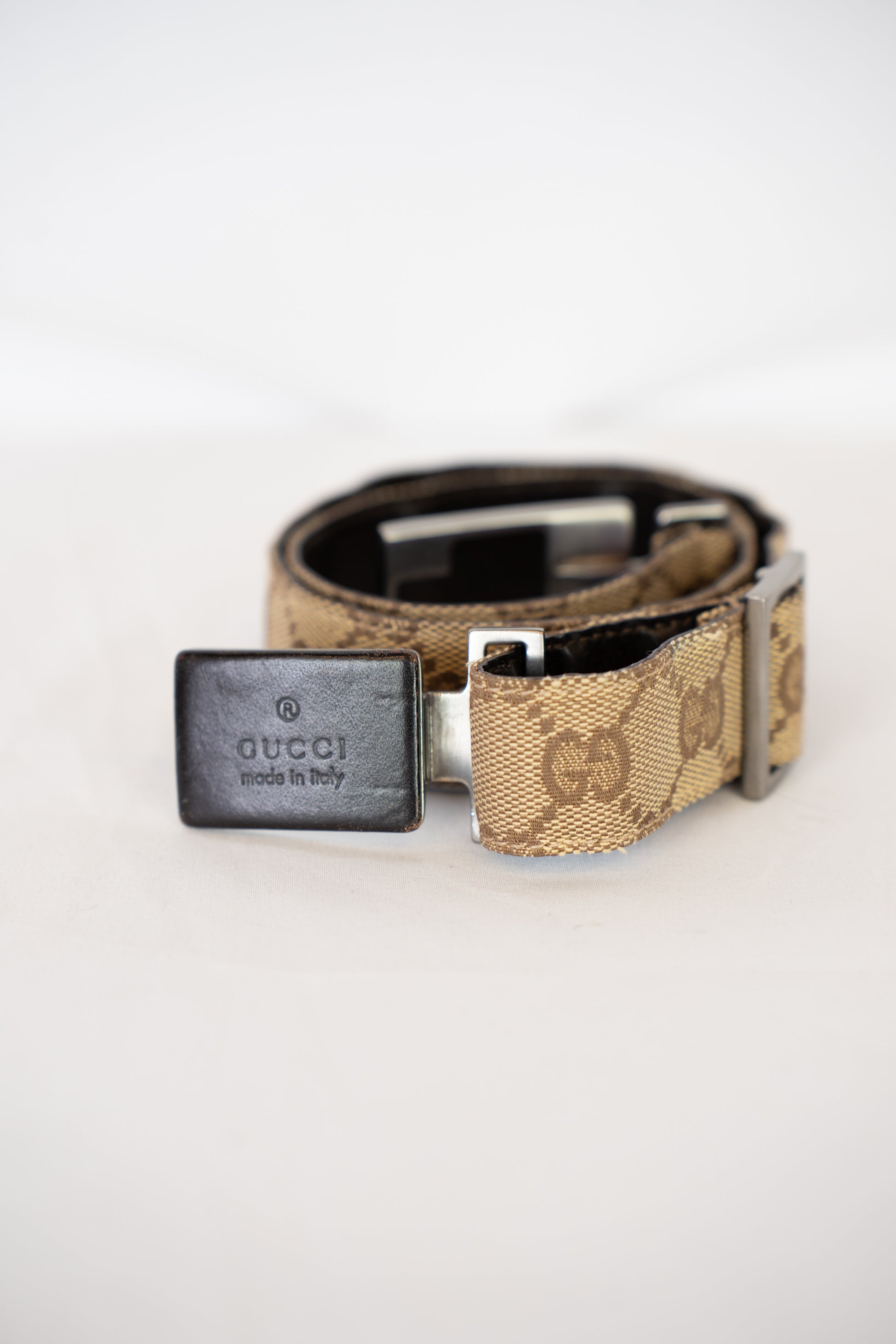 Gucci Brown Monogram Belt w/ Leather Buckle