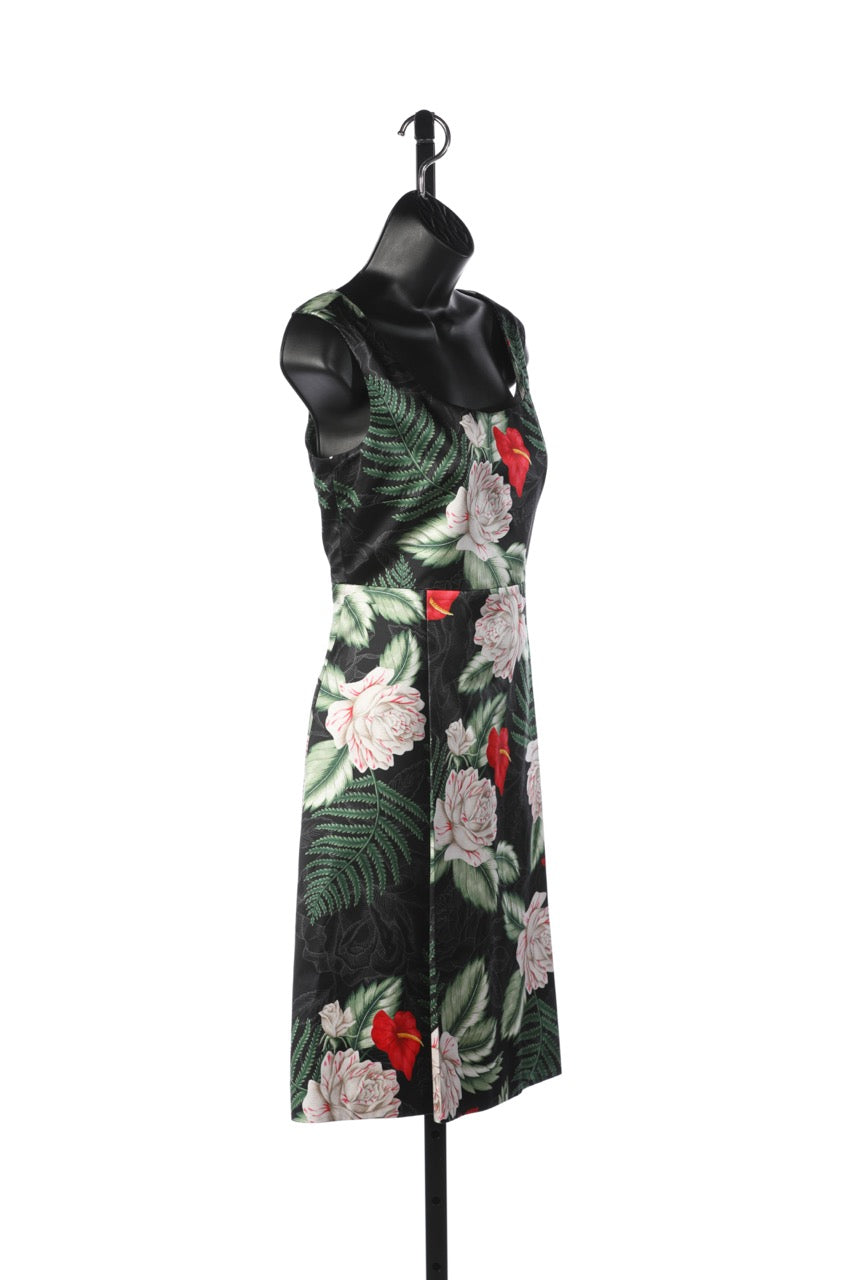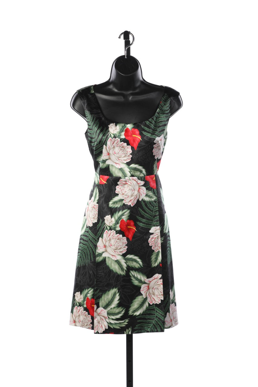 Gucci "Hawaiian Dream" Black w/ Red, White & Green Floral Pattern Dress NWT